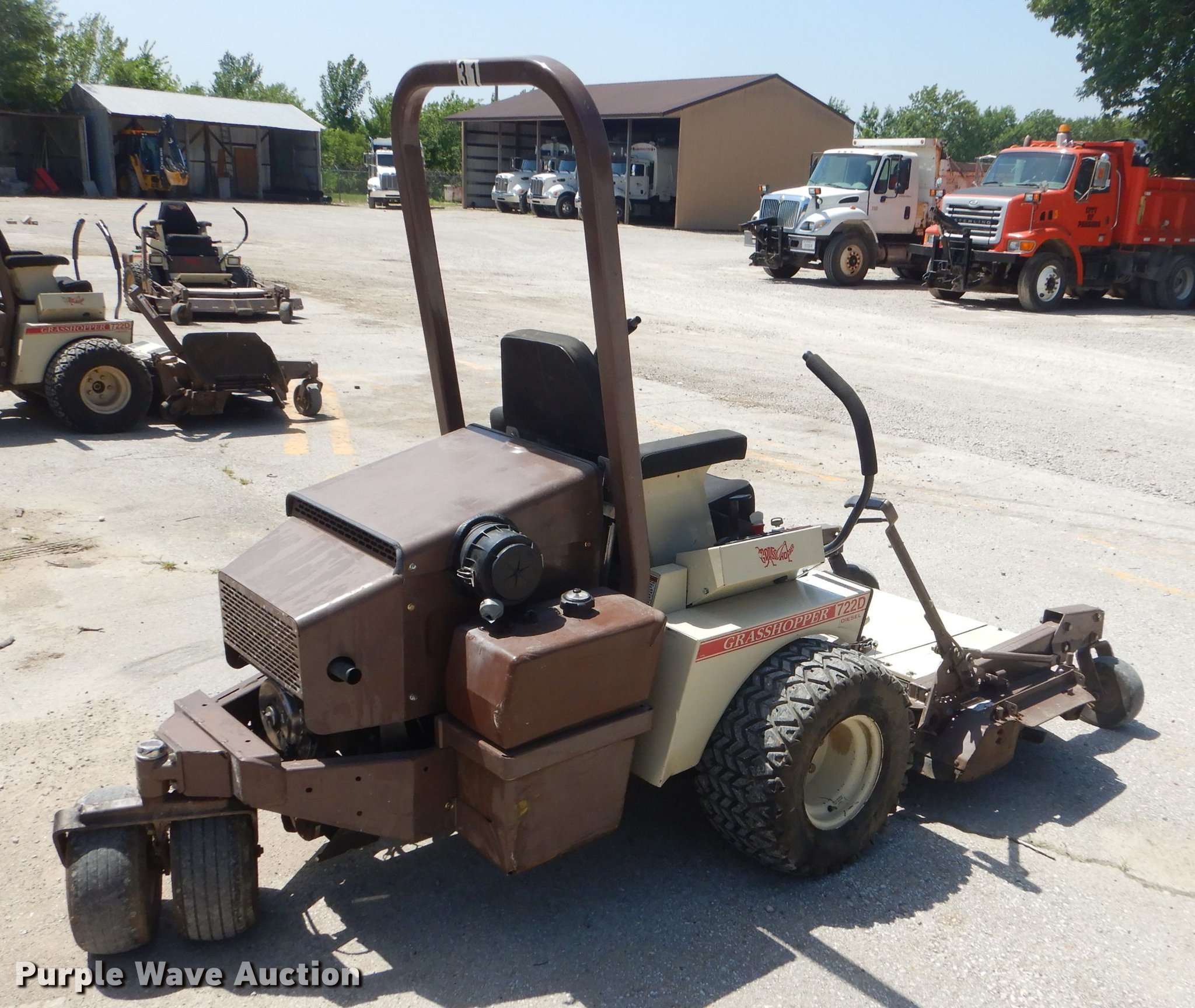 Purple Wave is selling a used Commercial Turf Mower in Kansas. This item is a Grasshopper 722D ZTR lawn mower with the following: 333 hours on meter, 60" cut, Kubota D902-ES02 three cylinder diesel engine, Hydrostatic transmission, OROPS, Flip up front deck, 22x11.00-10 front tires, 13x6.50-6 rear tires, Tires leak