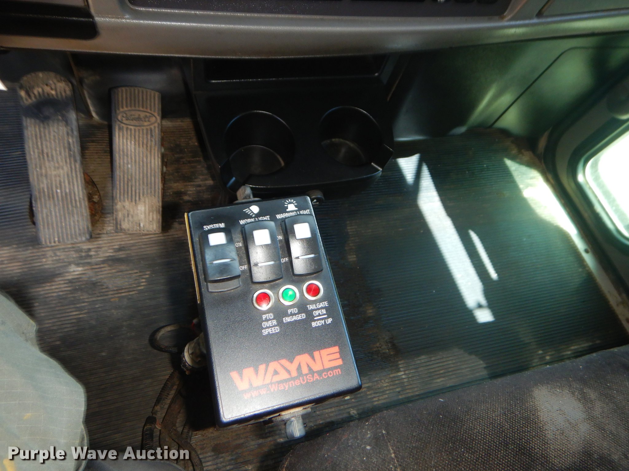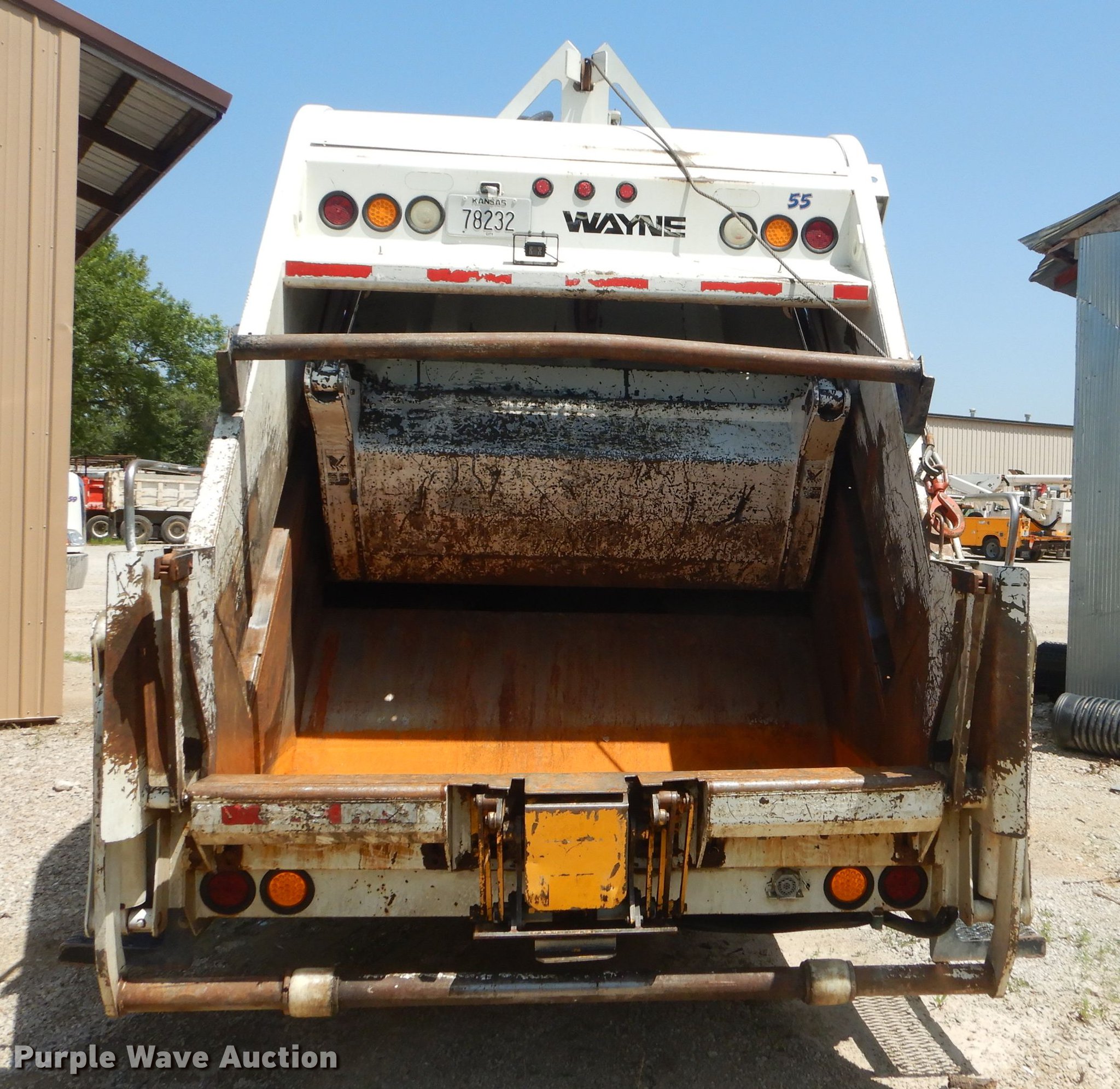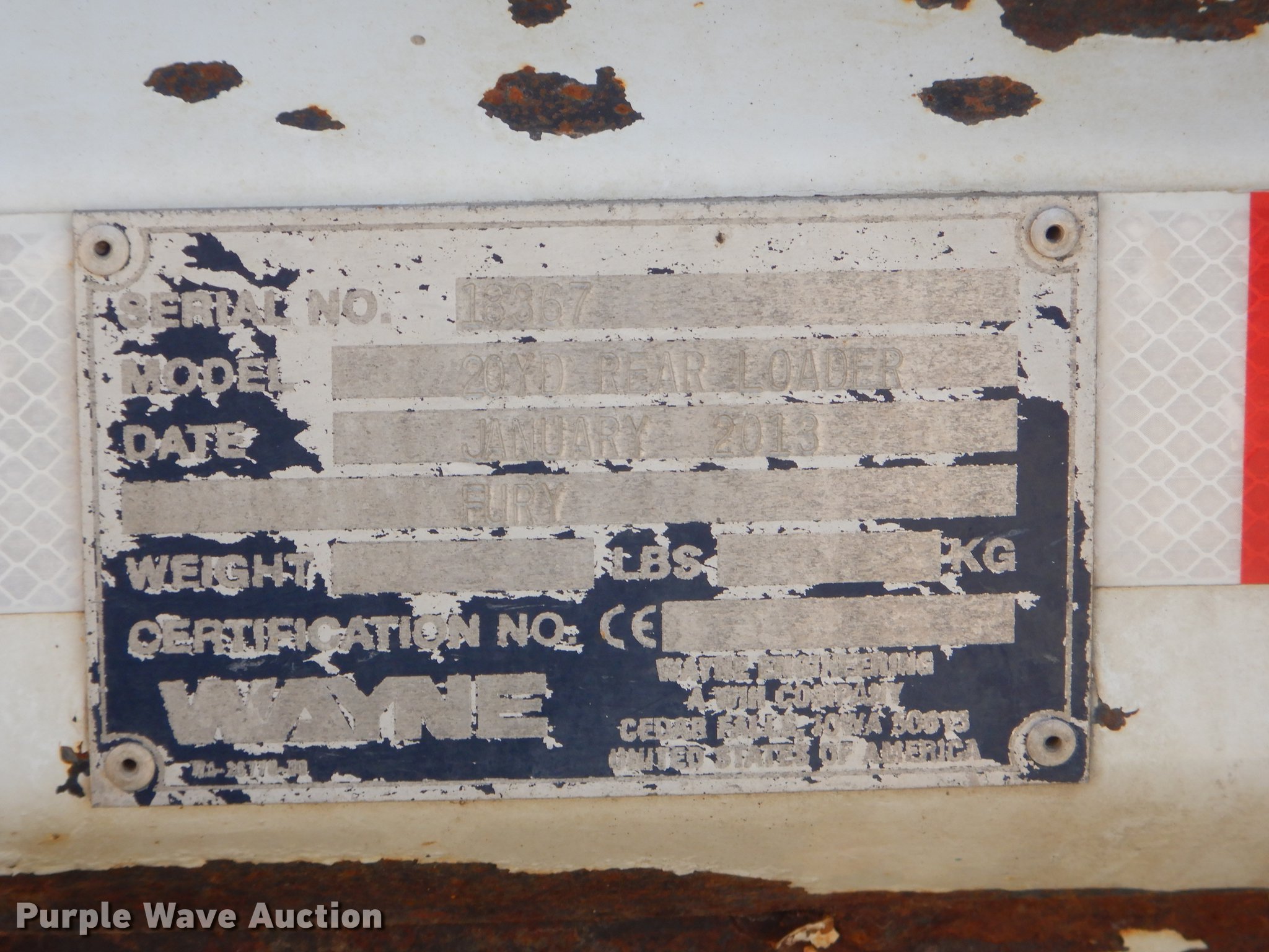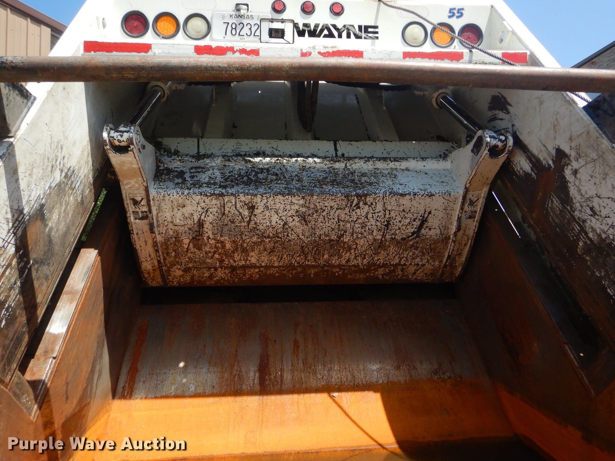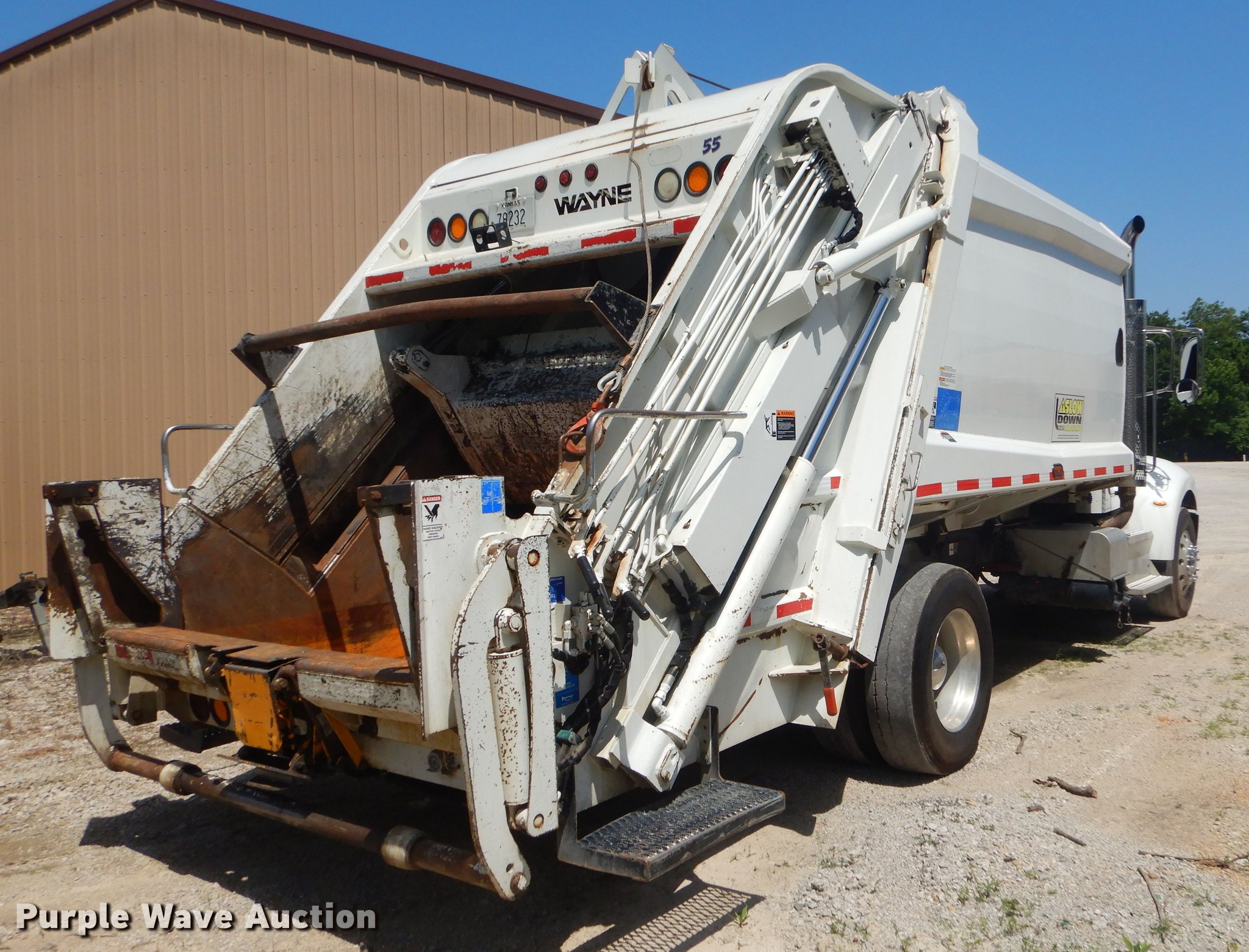 Purple Wave is selling a used Refuse Truck in Kansas. This item is a 2013 Peterbilt 337 refuse truck with the following: 39,348 miles on odometer, 10,522 hours on meter, Paccar PX-8 8.3L L6 diesel engine, Allison automatic transmission, Single axle, AC and heat, Cruise, Power windows, Heated mirrors, Backup camera, Wayne Fury refuse bed, 20 cu. yd. capacity, Rear load, Cart tipper, Winch, Spring suspension, Air brakes, 11R22.5 tires, GVWR 33,000 lbs, Unit# 55