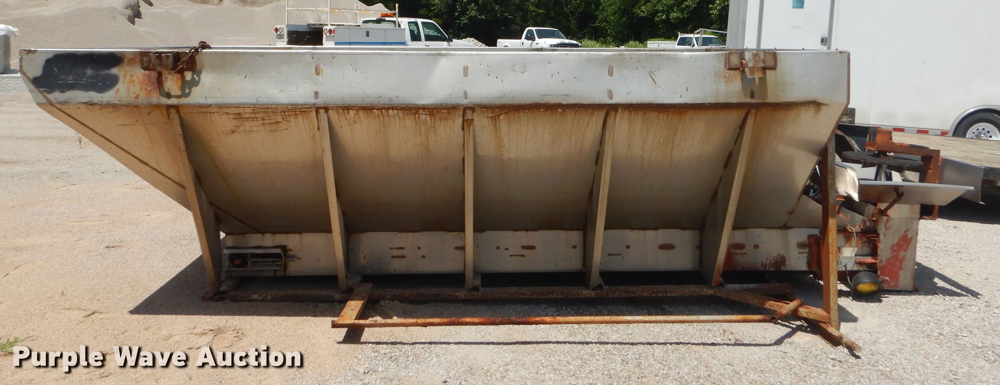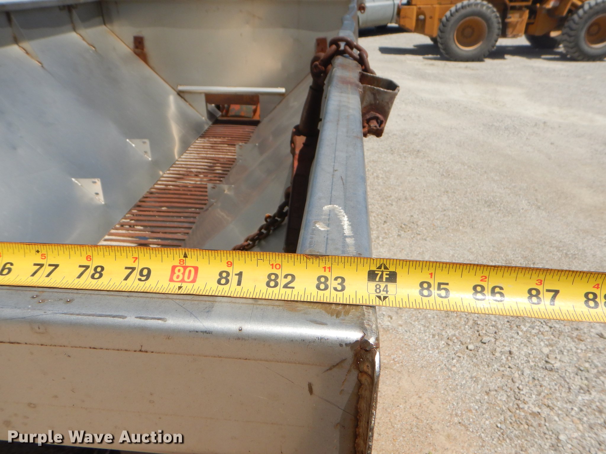 Purple Wave is selling a used Truck Part and Attach. in Kansas. This item is a Flink 8613KS stainless steel spreader with the following: 12'L x 84"W x 84"H, Chain floor, Hydraulic driven, Unknown operating condition, Serial 74484