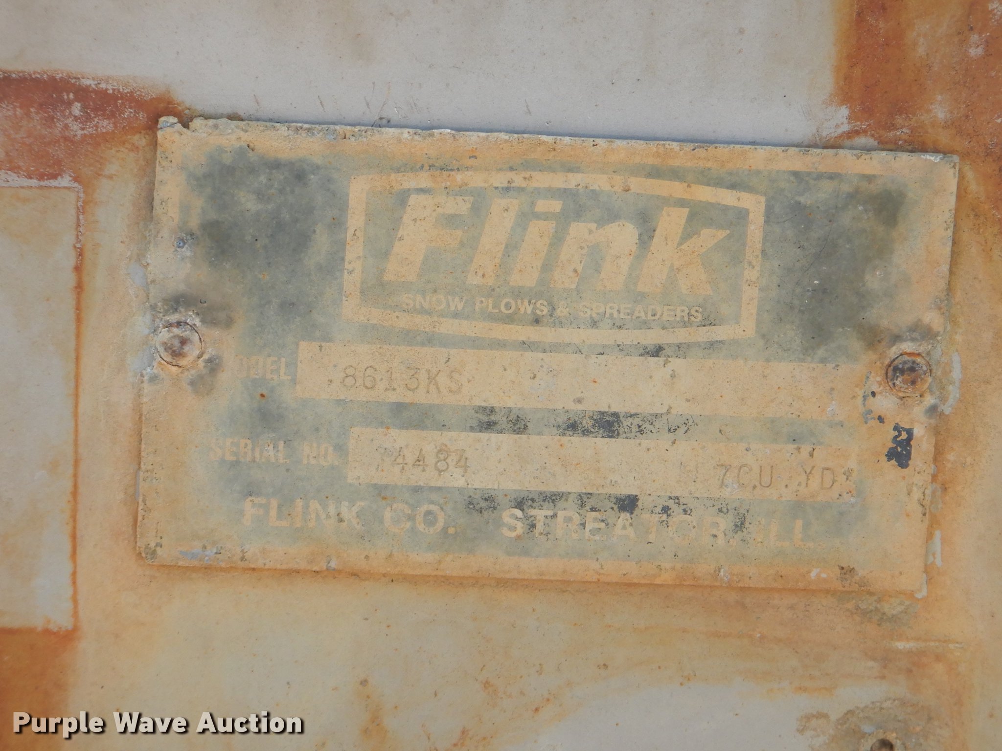 Take a look at this used Flink 8613KS stainless steel spreader being sold on July 23rd, 2019 in the SOLD! July 23 Government Auction made by Flink. Take a look at all of the item information below or take a look at similar auctions for Truck Parts and Acces..