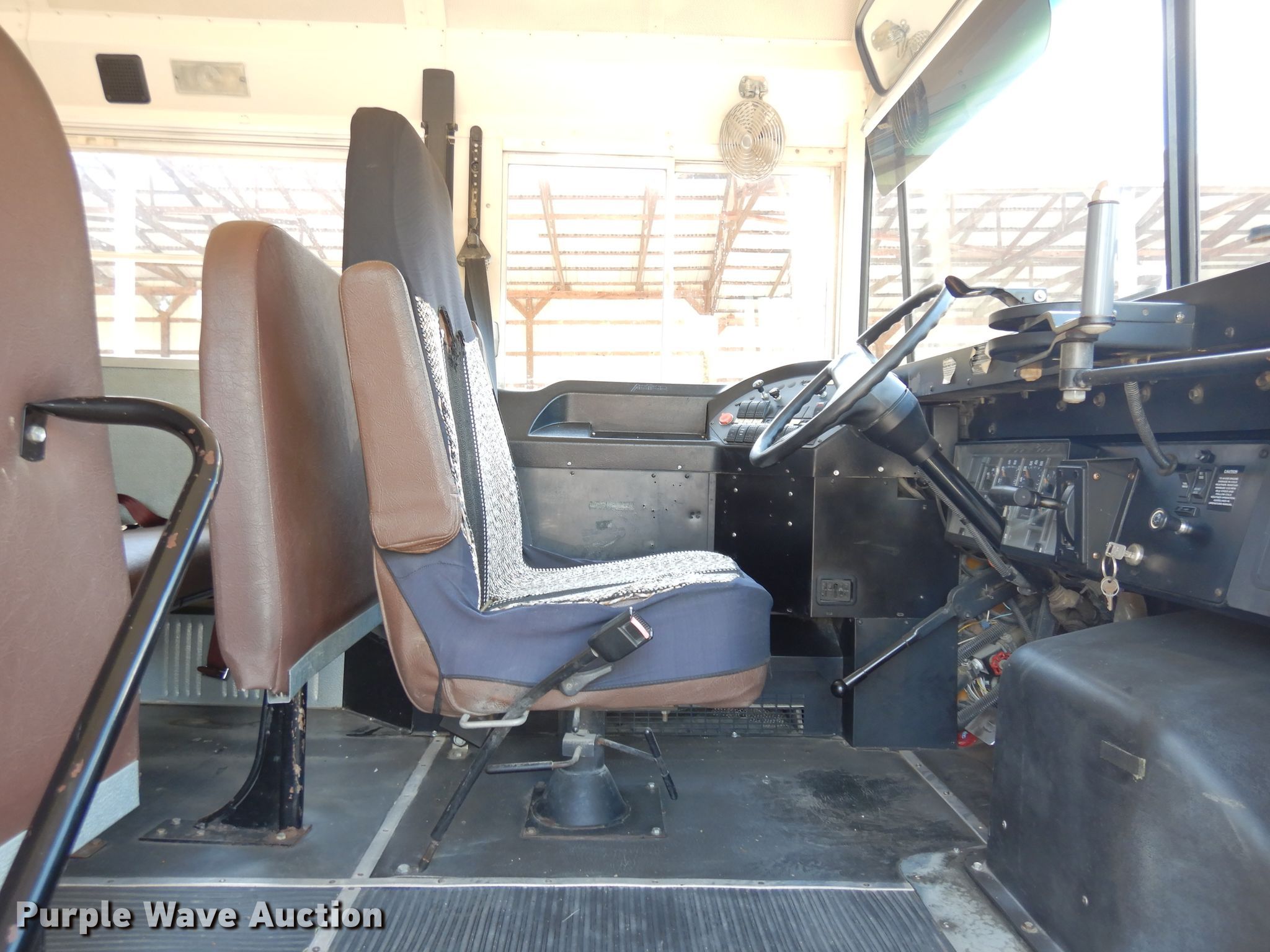Purple Wave is selling a used Bus in Kansas. This item is a 1999 International 3800 school bus with the following: 96,838 miles on odometer, 849 hours on meter, International DT466E 7.6L L6 diesel engine, Automatic transmission, Single axle, Heat, Heated mirrors, 48 passenger capacity, Spring suspension, Hydraulic brakes, 193" wheelbase, 10R22.5 tires, GVWR 27,500 lbs, Injector leak