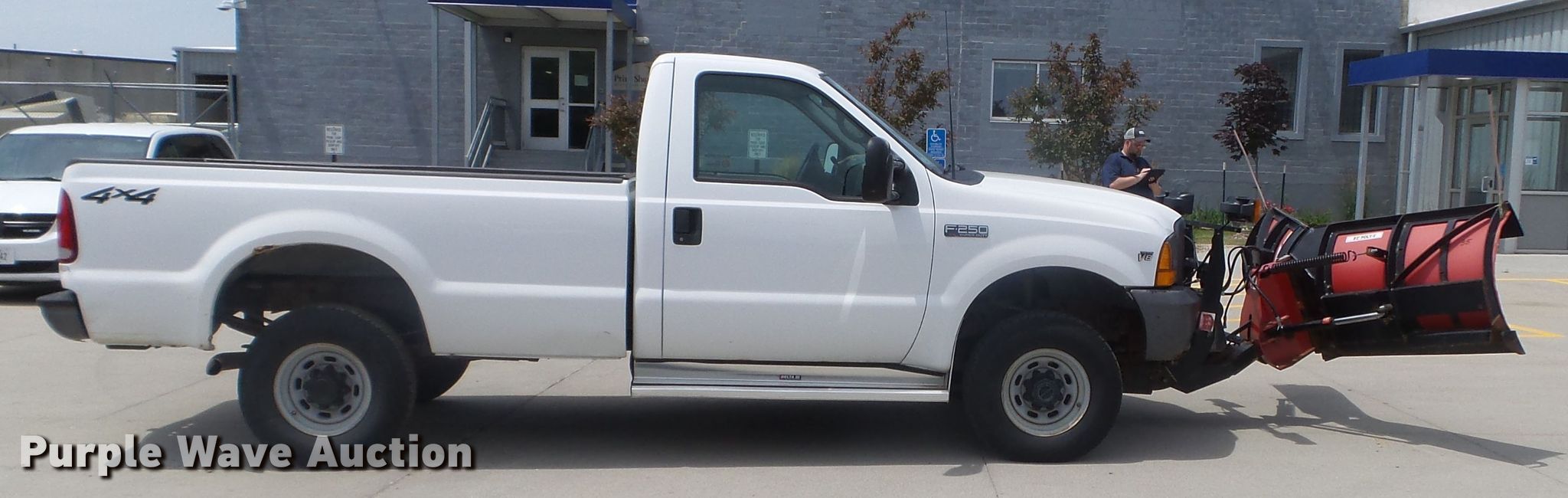 Purple Wave is selling a used 3/4 or 1 Ton Pickup or Van in Iowa. This item is a 2001 Ford F250 Super Duty XL pickup truck with the following: 56,533 miles on odometer, 5.4L V8 SOHC 16V gas engine, Automatic transmission, Four wheel drive, AC and heat, The Boss RT3 snow plow, 8'2"W, LT235/116R tires