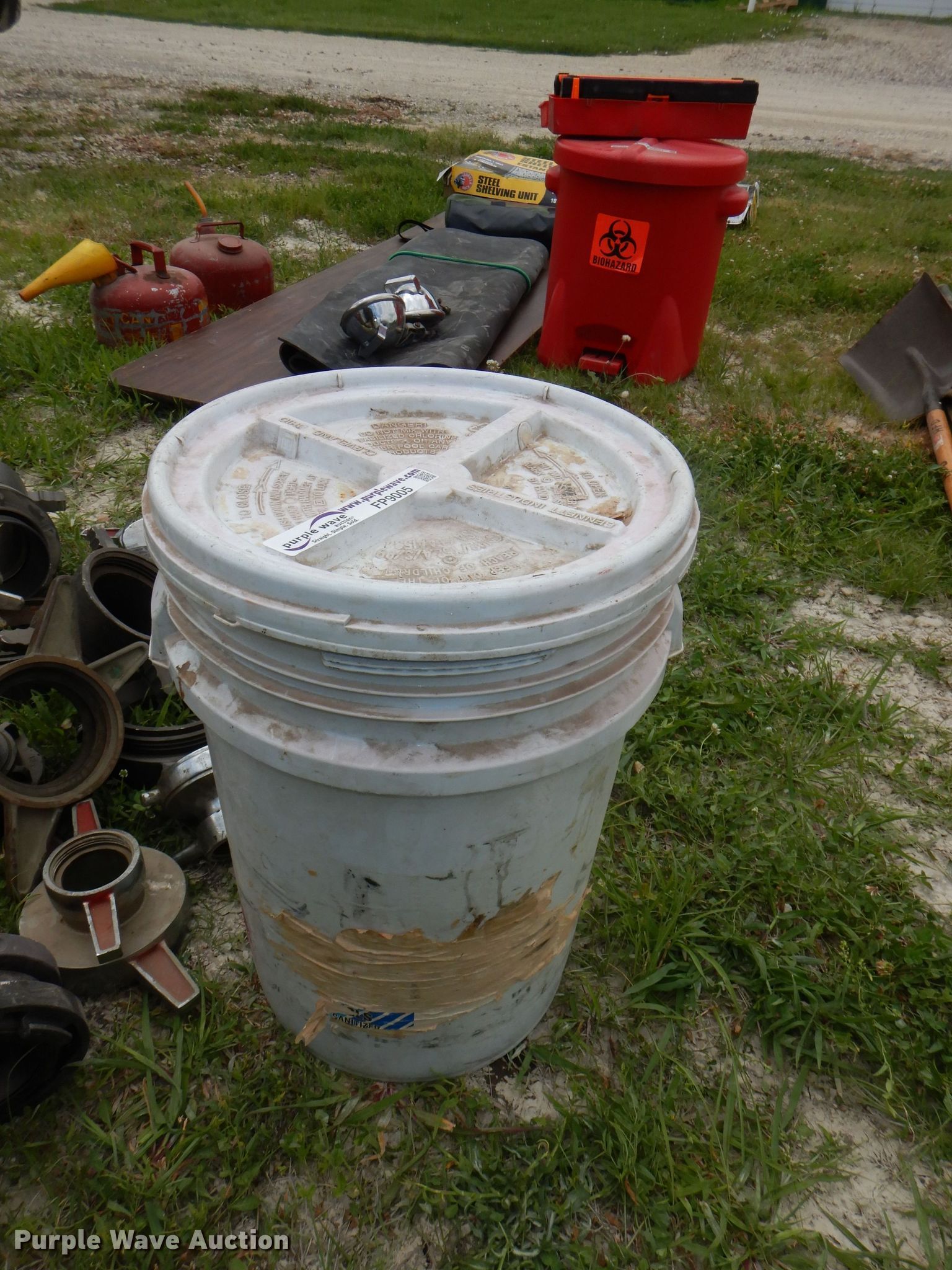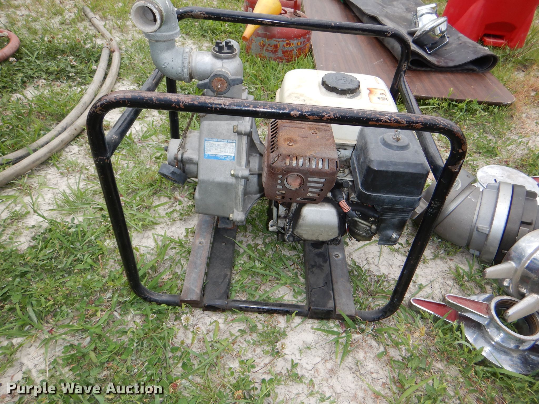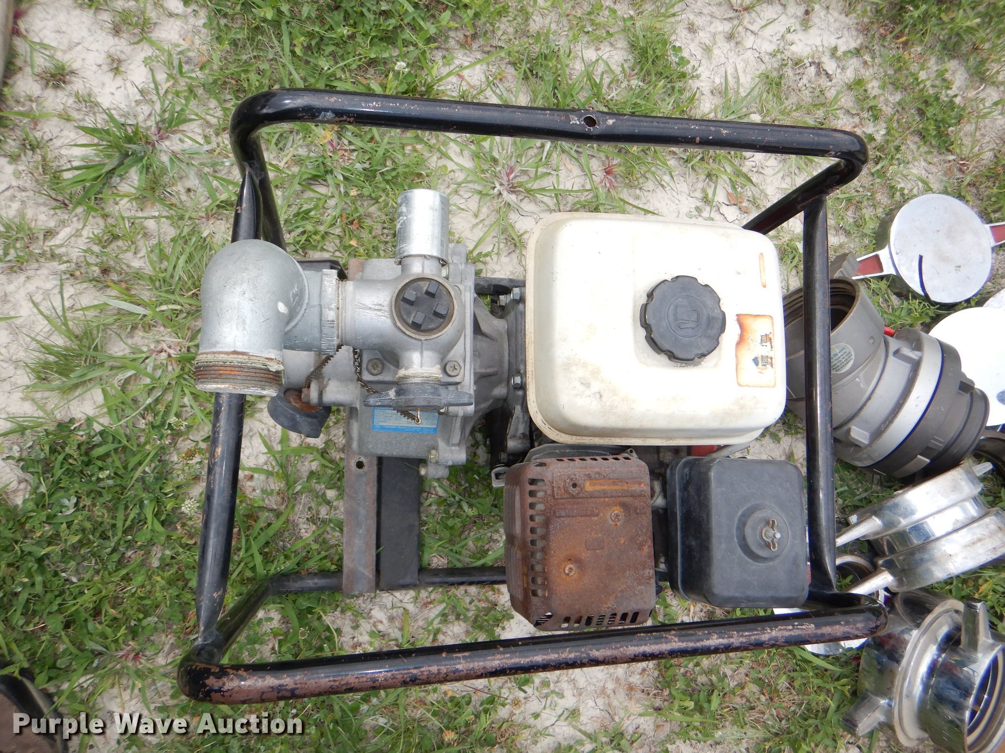 Purple Wave is selling a used Pump in Kansas. This item is a Water pump, hose, and connectors with the following: Honda gas engine, 5.5 HP, (4) caps, (14) connectors, (2) hose, Bucket of connectors