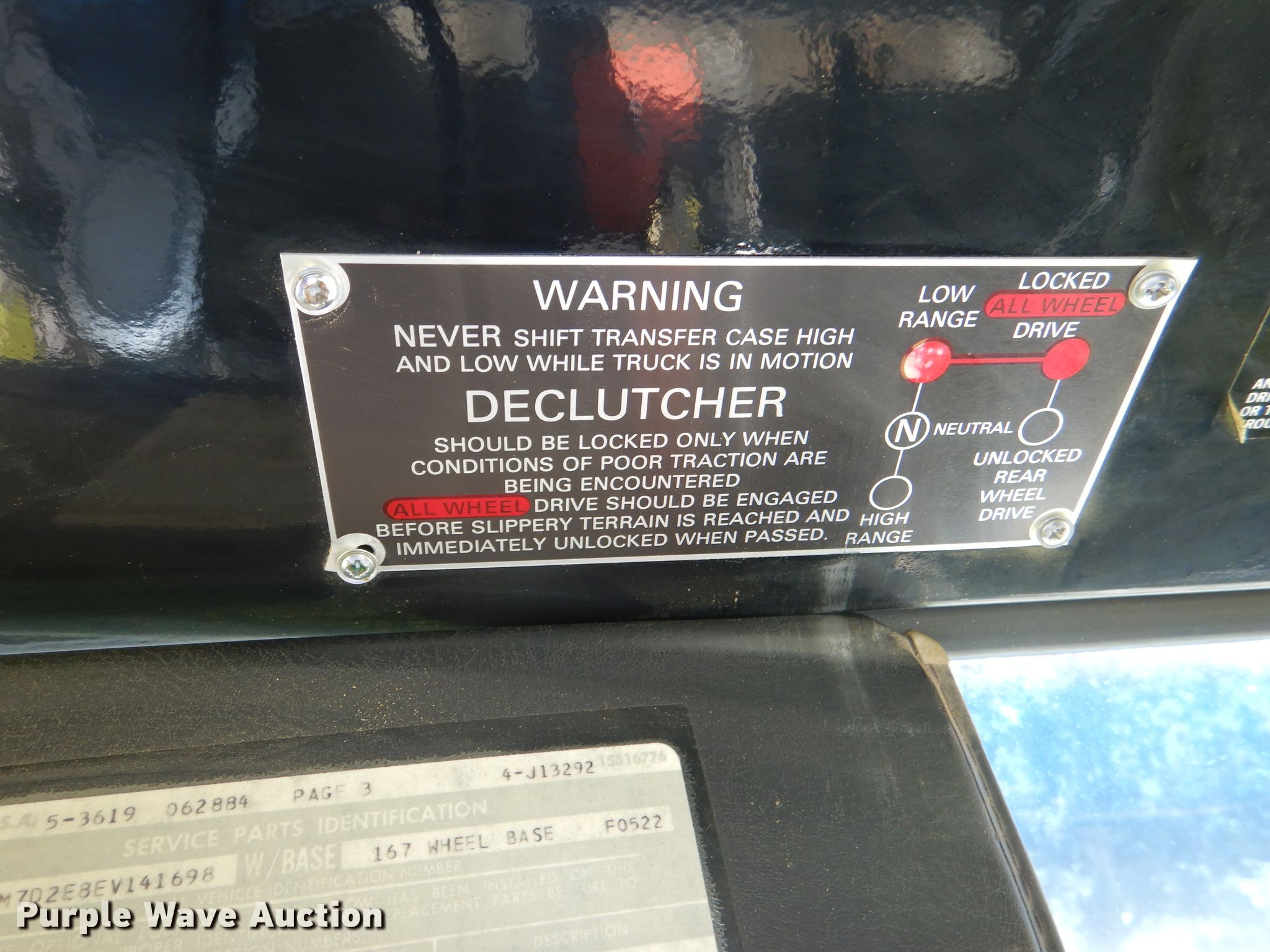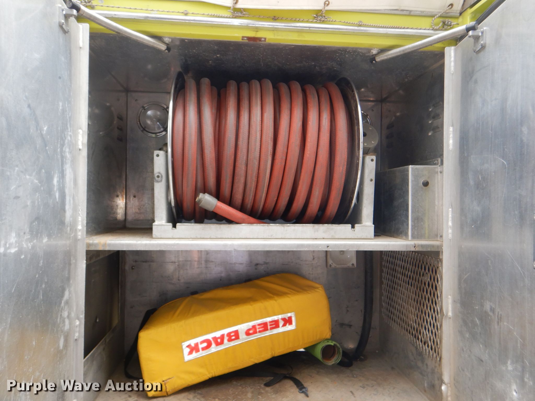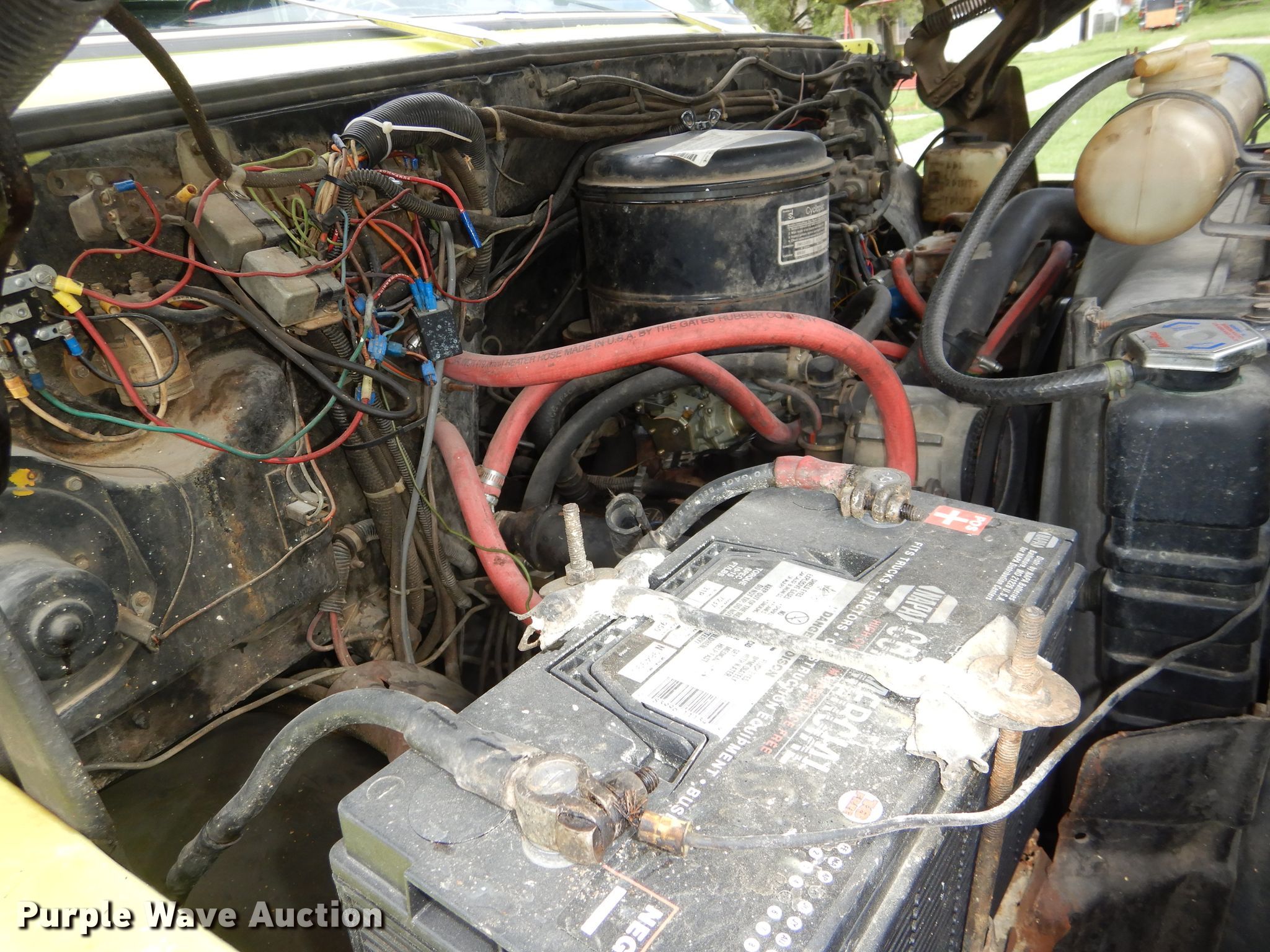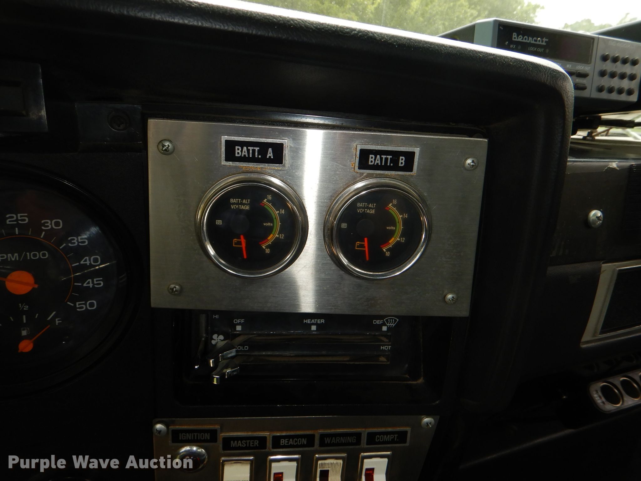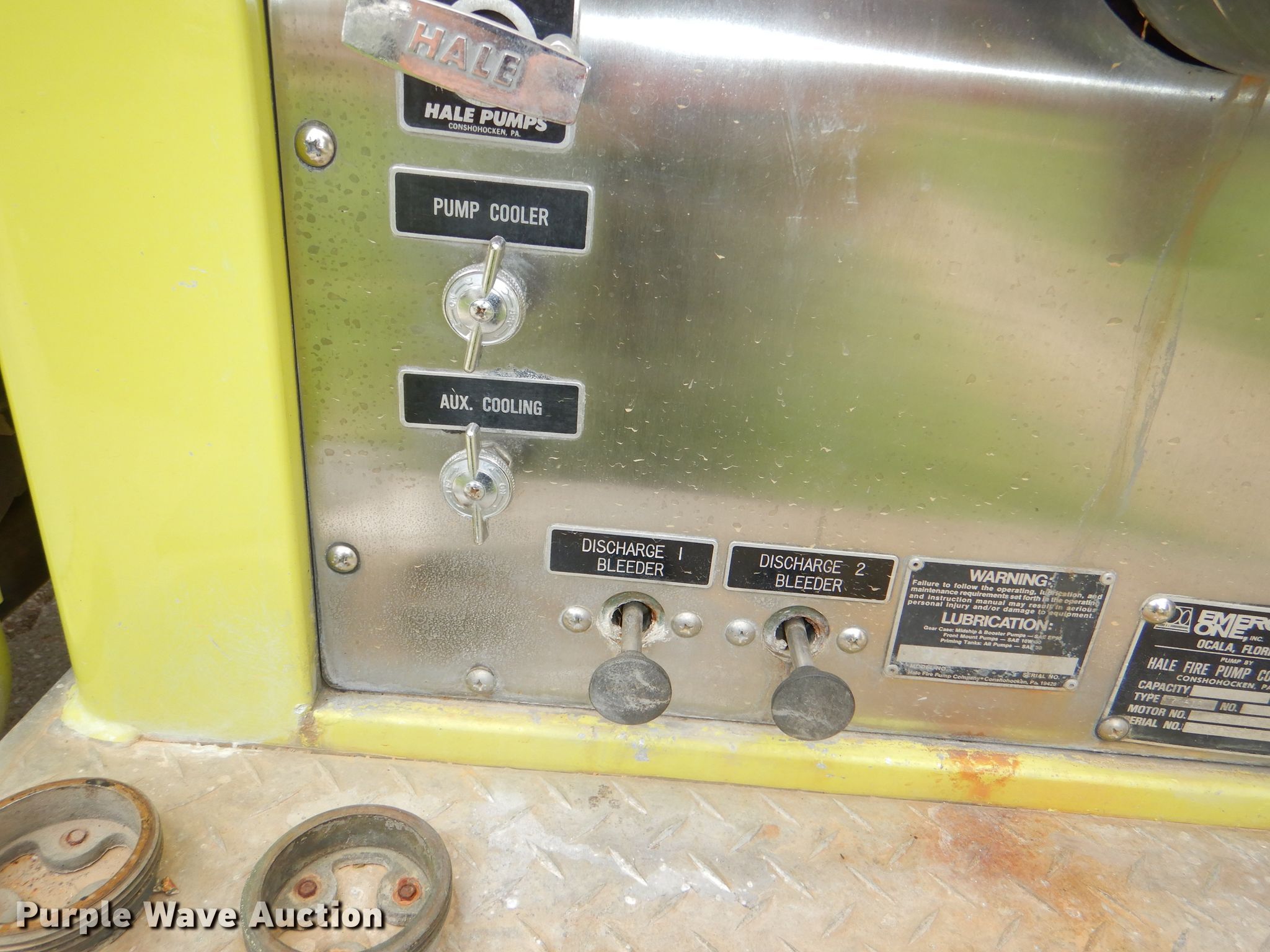 Purple Wave is selling a used Fire Truck or Emergency Vehicle in Kansas. This item is a 1984 Chevrolet C70 fire truck with the following: 27,820 miles on odometer, GM 427 C.I.D. gas engine, Automatic transmission, Four wheel drive, Single axle, Heat, Winch, 12,000 lbs capacity, Hale water pump, Gas engine, 750 gallon water tank, 10 gallon foam tank, Electric hose reel, 200' hose, SCBA cylinder capable, 168" wheelbase, Spring suspension, Air brakes, Goodyear 9.00-20 tires, GVWR 27,080 lbs, Unit# 5