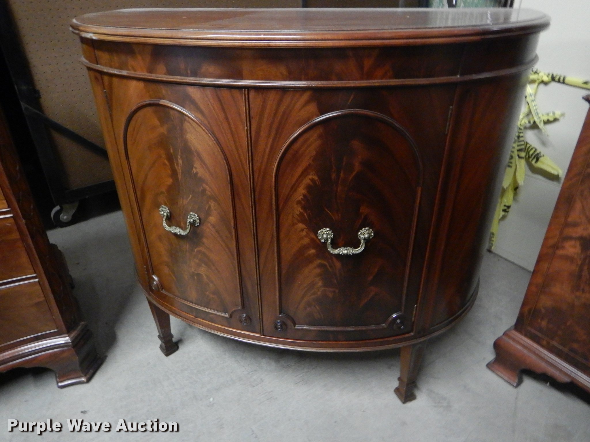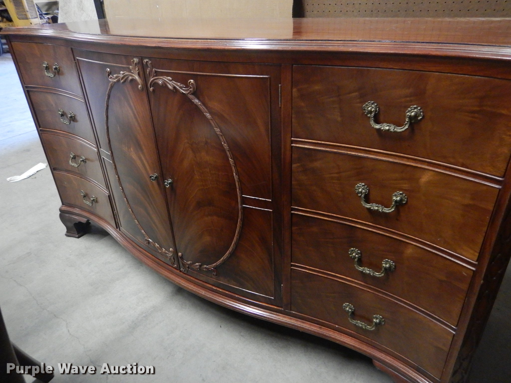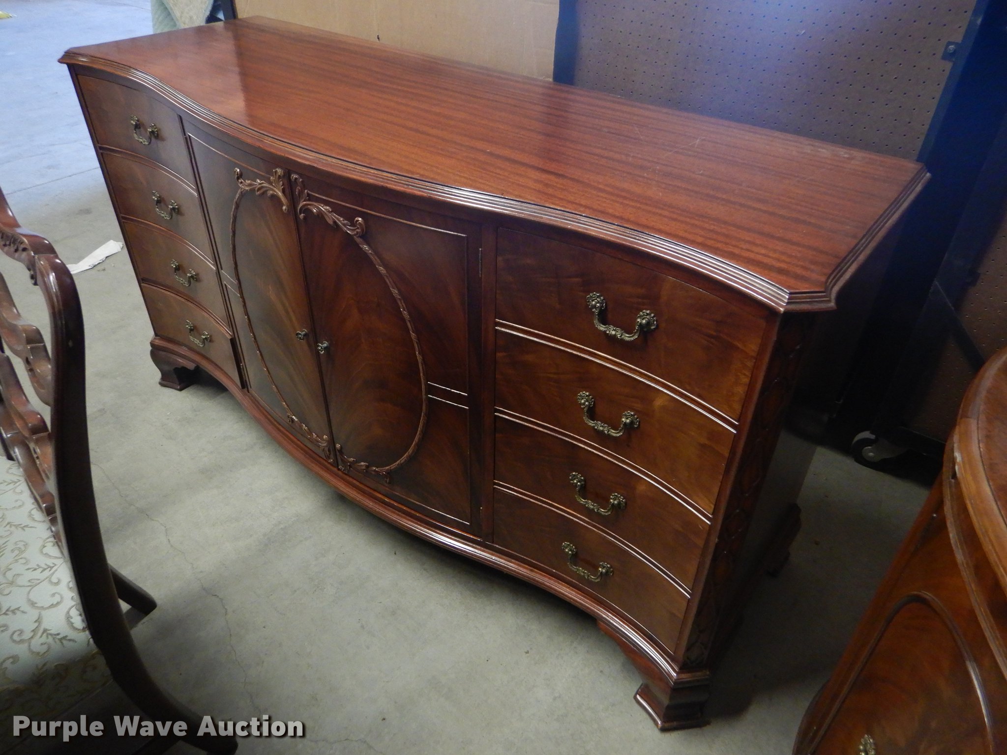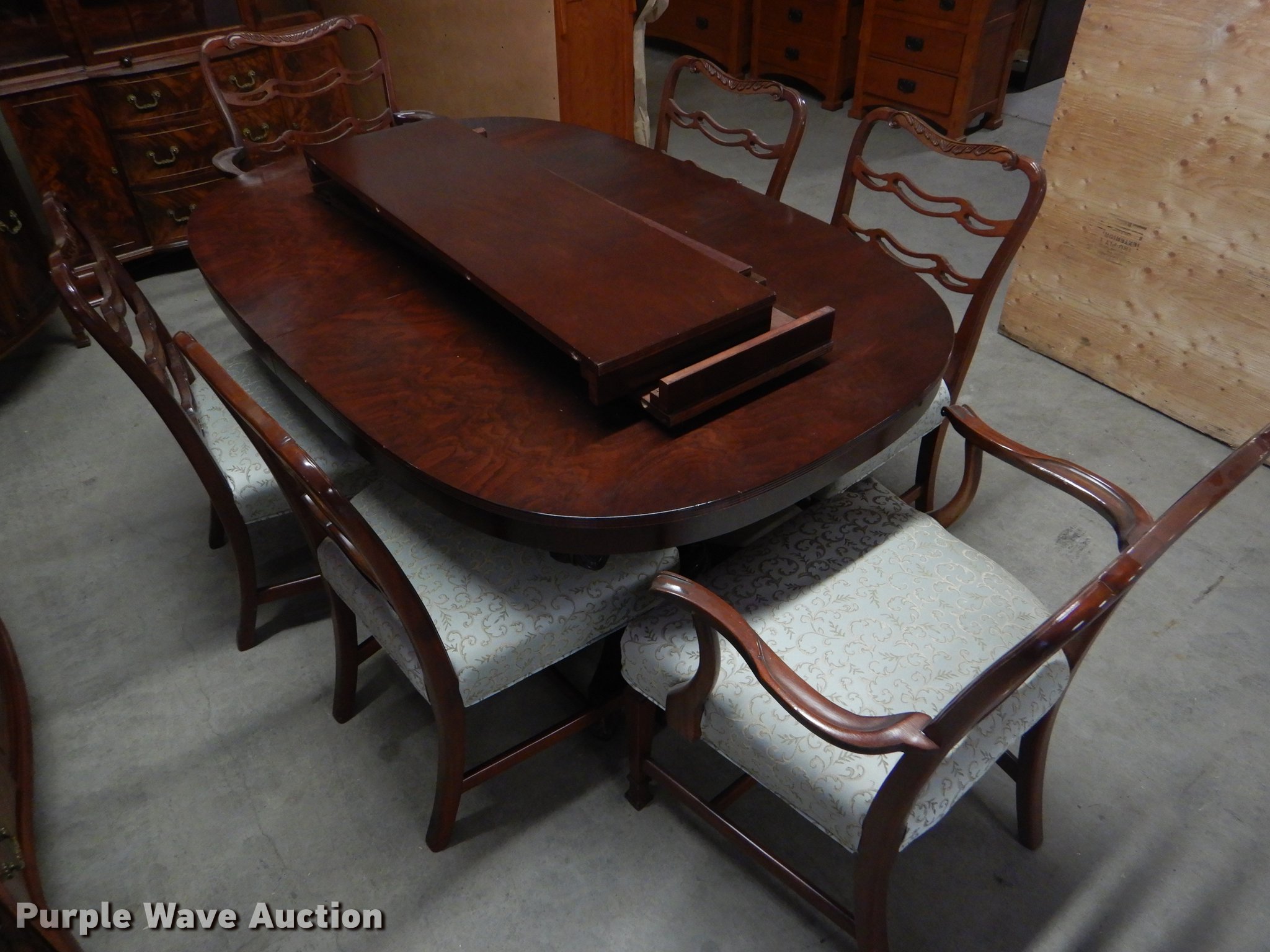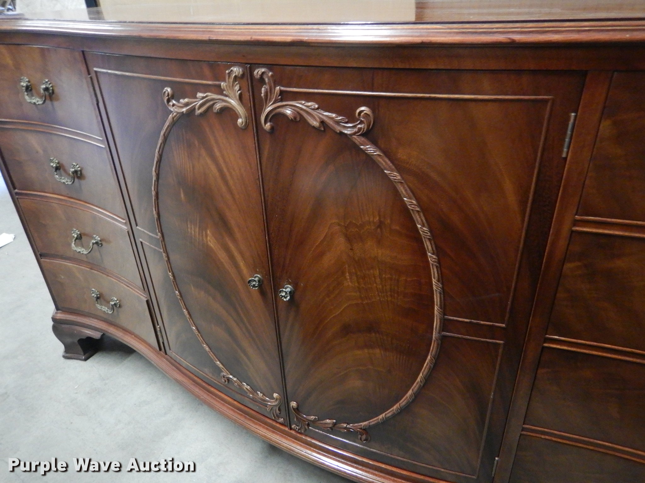 Purple Wave is selling a used Furniture in Kansas. This item is a Dining room set with the following: Dining table, (2) leaves, Table cover, (6) chairs, China hutch, Buffet, Side board