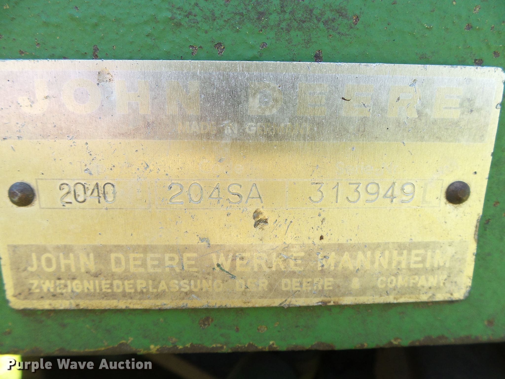 Purple Wave is selling a used Tractor in Kansas. This item is a John Deere 2040 tractor with the following: 1,183 hours on meter, John Deere three cylinder diesel engine, Manual transmission, Three point, 540 PTO, Single rear hydraulic remote, 7.50-16 front tires, 14.9-28 rear tires, Non-operational engine, Engine blown, Second gear selector removed, Low end gears only, Serial 313949L