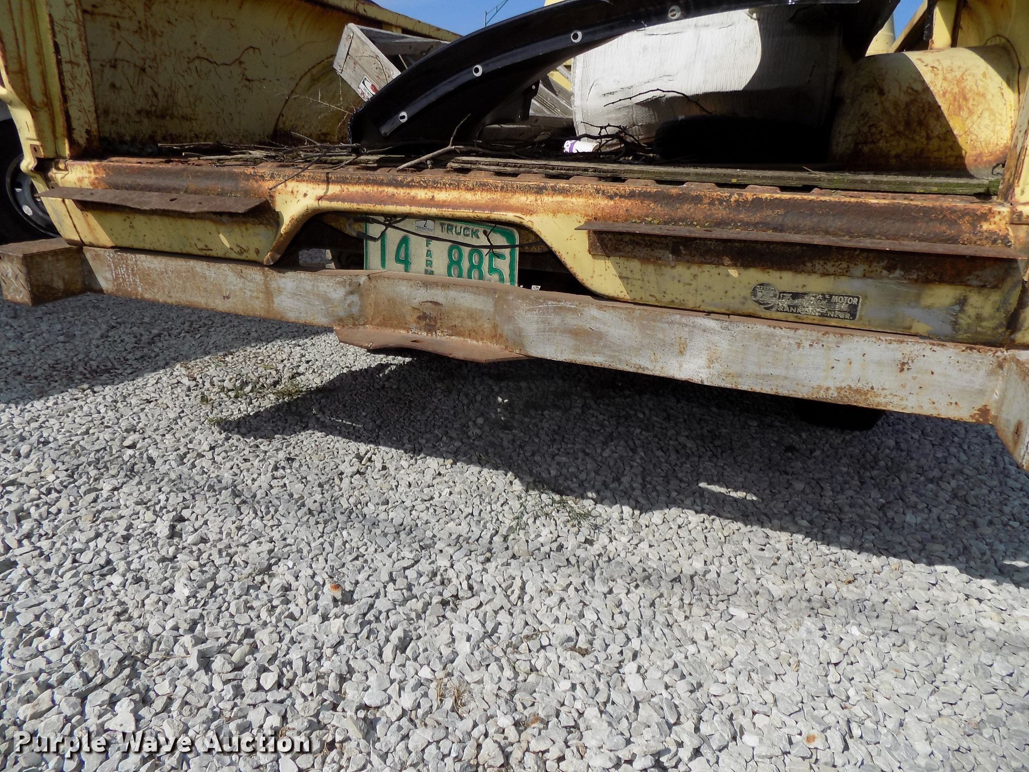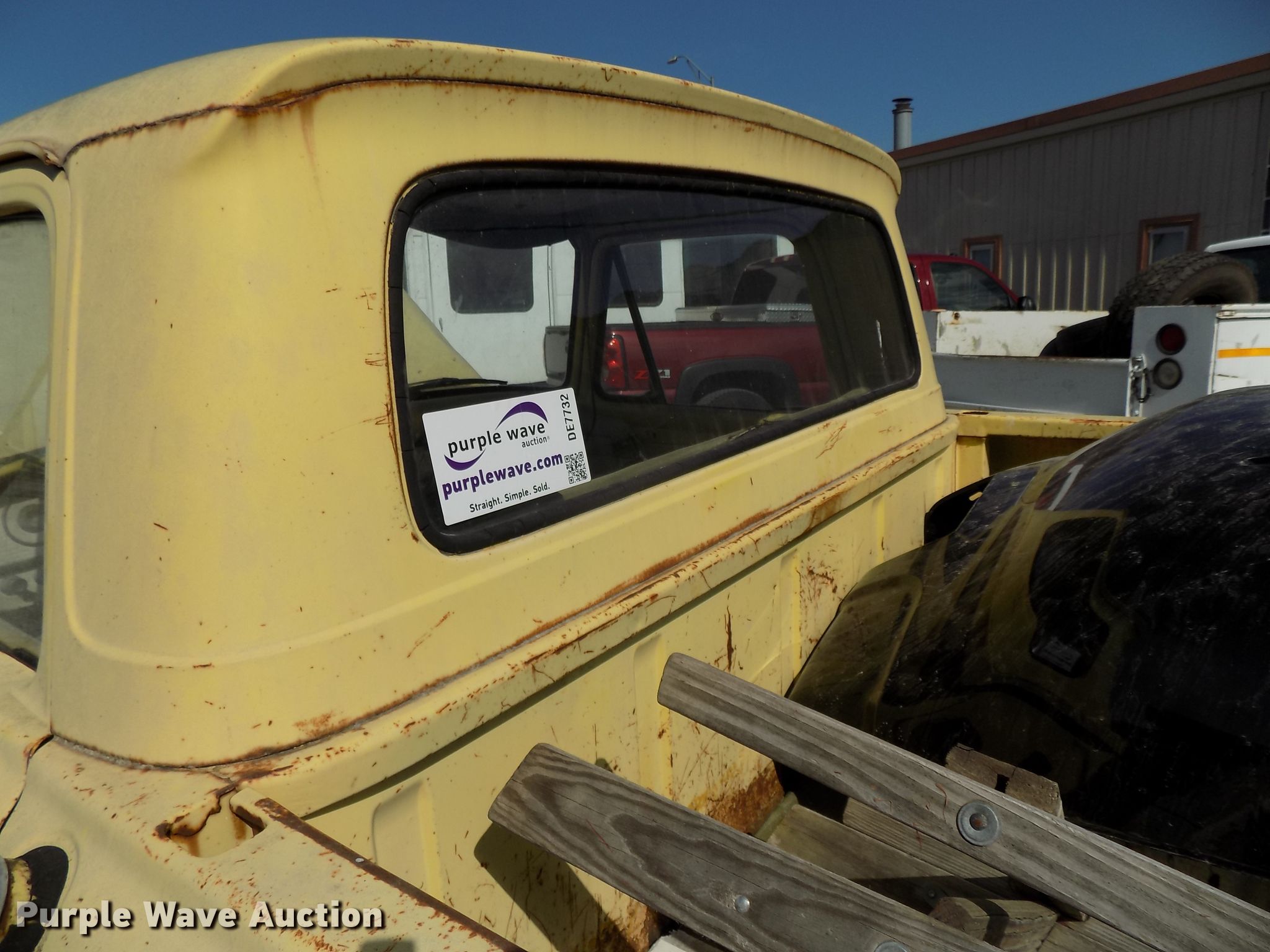 1961 Ford F250 Custom Cab pickup truck. 14,073 miles on odometer, Six cylinder gas engine, Four speed manual transmission, LT235/85R16 front tires, LT245/75R16 rear tires, Tailgate missing, Rear drivers side tire needs to be replaced, Original wheels included, Contents not included, Non-operational unit. Nebraska title. F25JK150849. Jim Deveny Motors Inc.. 1013 S Burlington Ave. Hastings, NE 68901