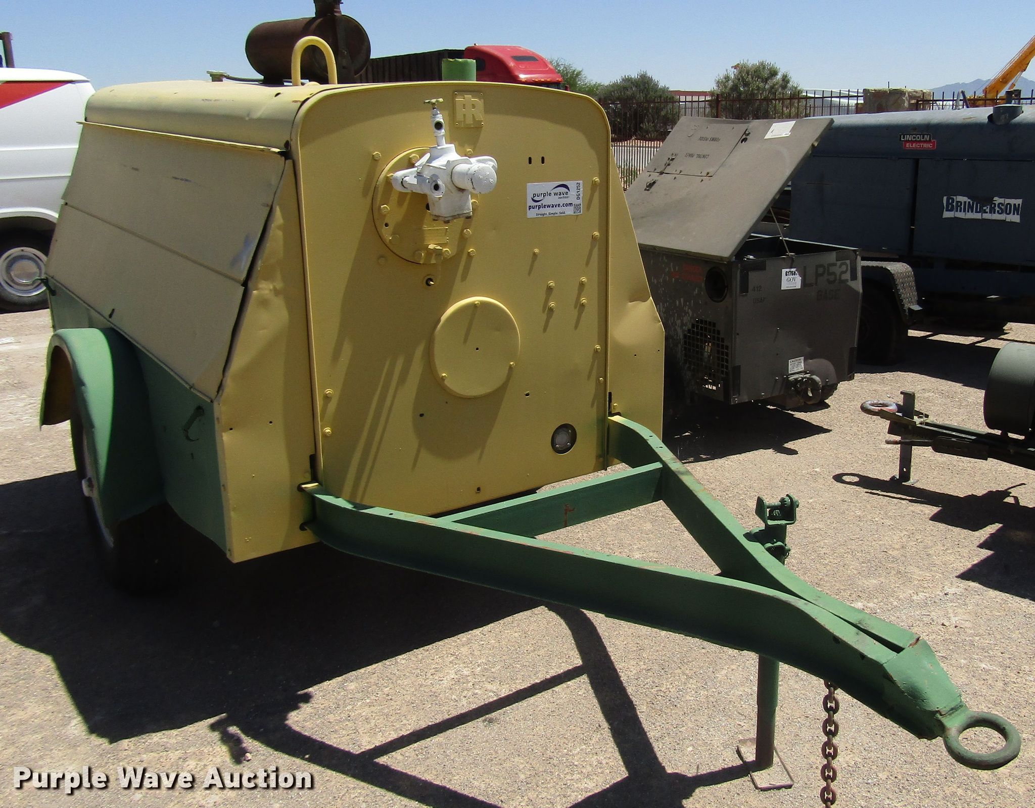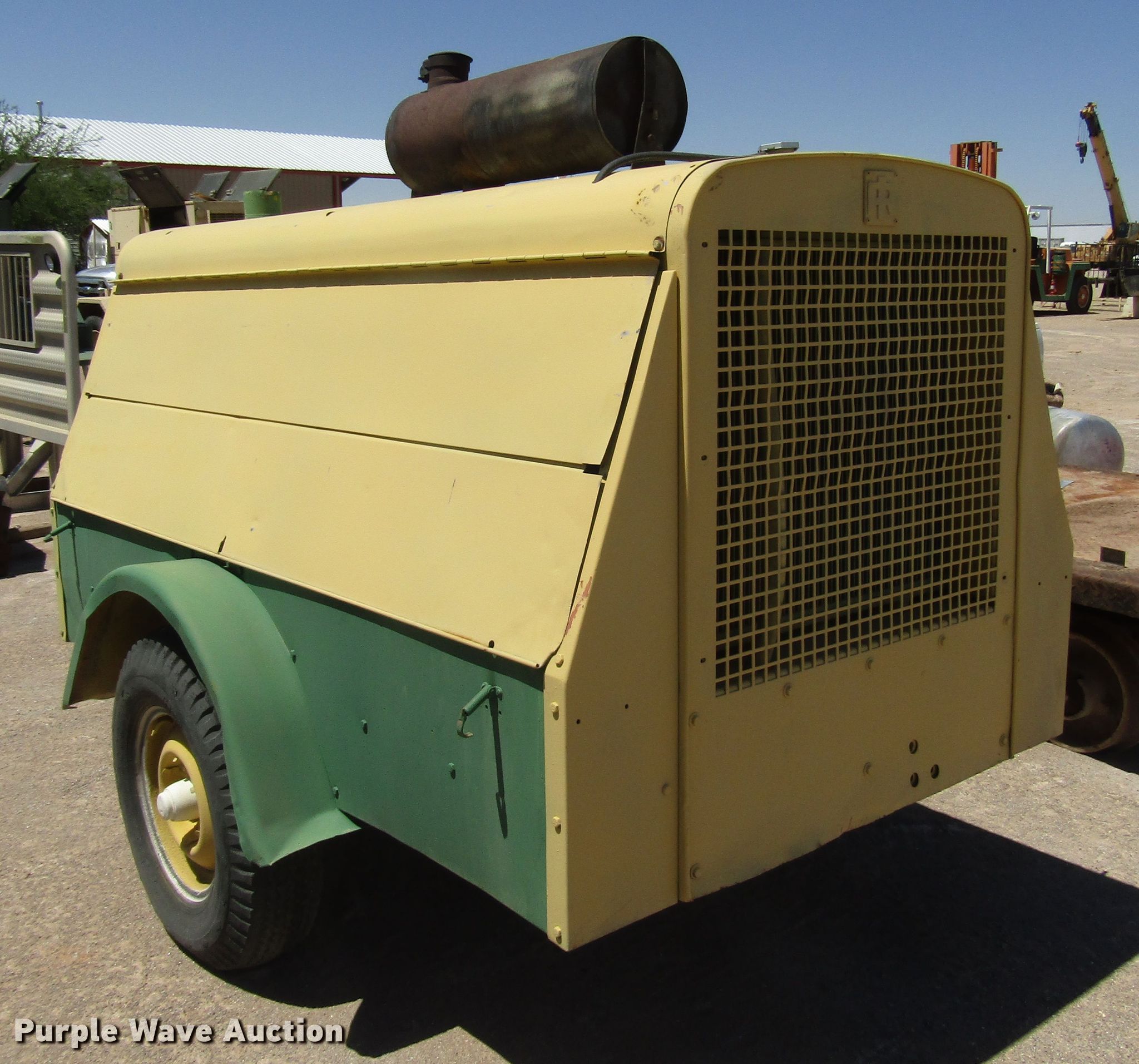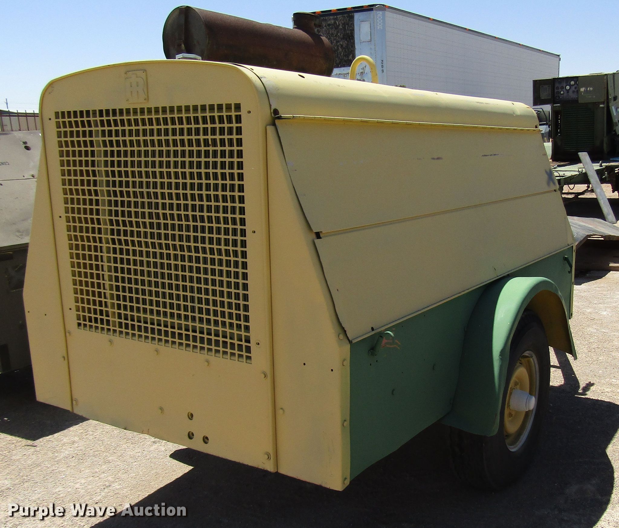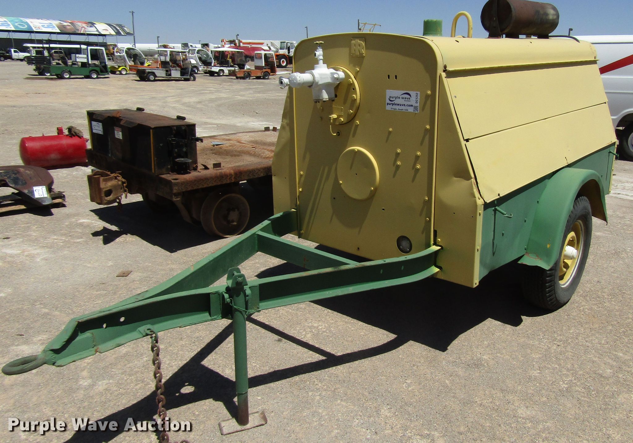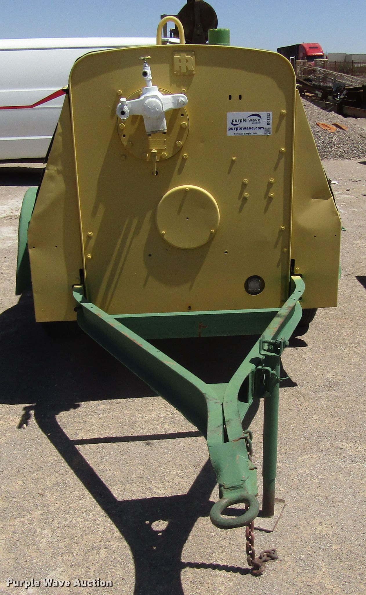 Purple Wave is selling a used Air Compressor in New Mexico. This item is a Ingersoll Rand DR-250 air compressor with the following: 3,353 hours on meter, Detroit Diesel four cylinder diesel engine, 100 psi, 13'L x 4'8"W trailer, 7.50-16 tires, Unknown operating condition, Serial 72200U73352