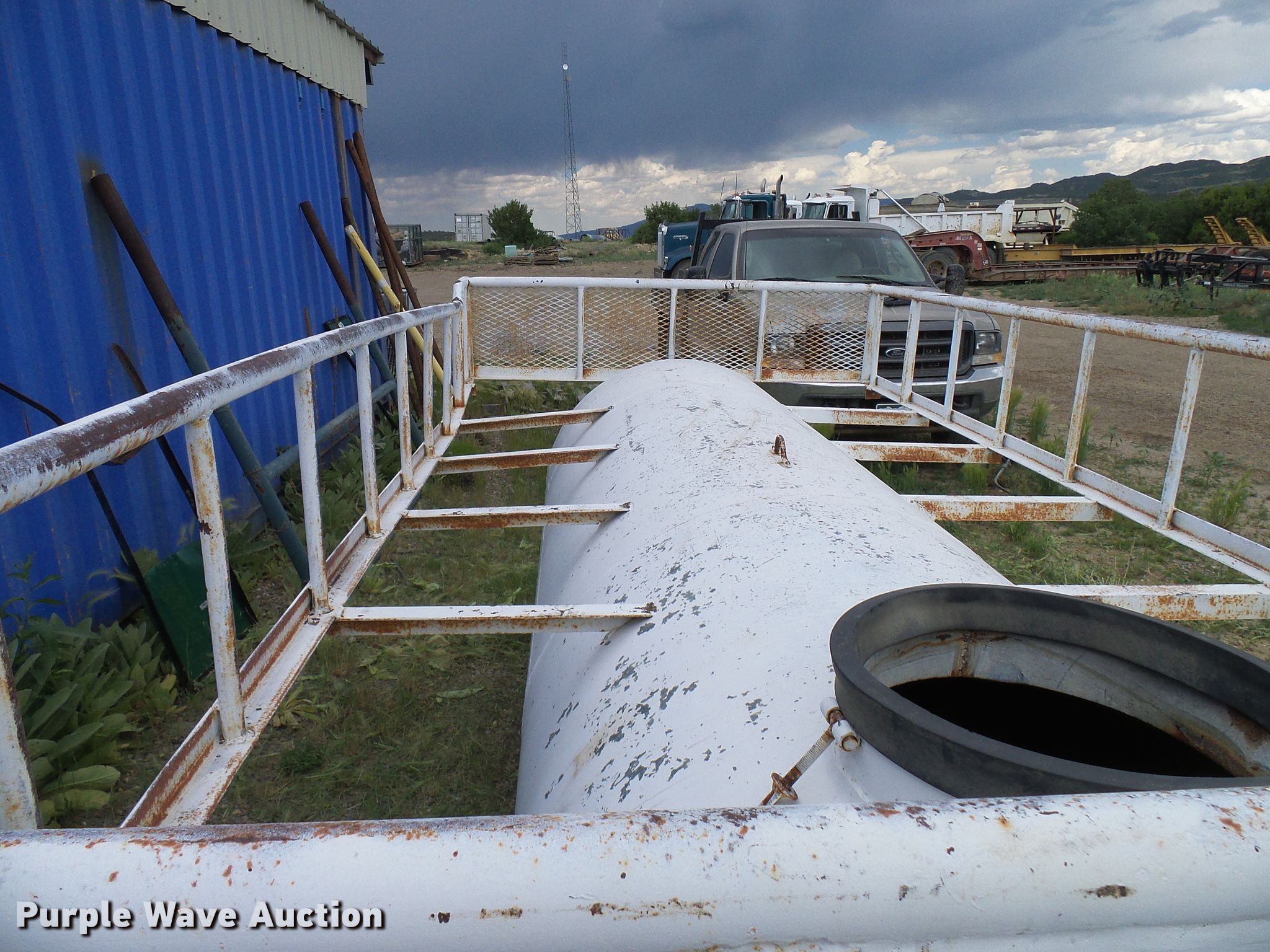 Purple Wave is selling a used Tanks in Colorado. This item is a Kohlhaas tank with the following: 1,000 gallon capacity, 150" x 73" work platform, 18" manhole, 3" drain, Lifting eye, Previously used for water