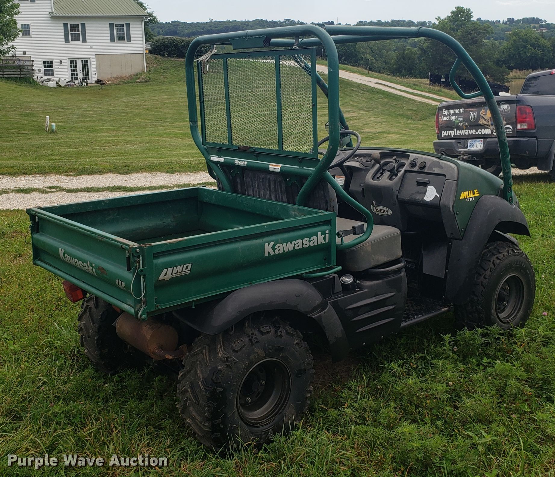 Purple Wave is selling a used Utility Vehicle in Missouri. This item is a 2007 Kawasaki Mule 610 utility vehicle with the following: 1,223 hours on meter, One cylinder gas engine, Automatic transmission, Four wheel drive, OROPS, 36"L x 42"W dump bed, Manual dump, Receiver hitch, 24x9x10 front tires, 24x11x10 rear tires