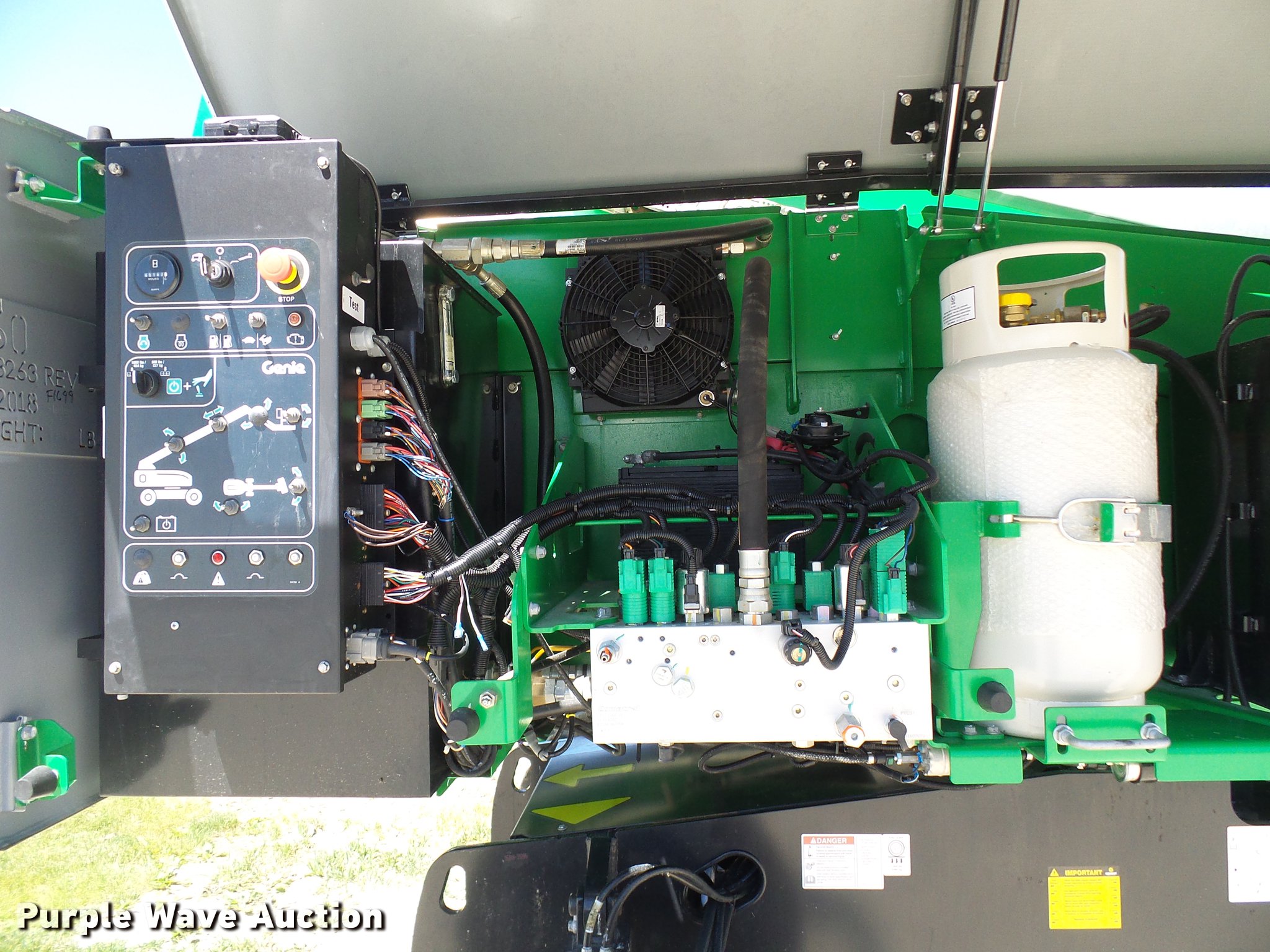 Purple Wave is selling a used Boom Lift in Missouri. This item is a 2018 Genie S-60X boom lift with the following: 107 hours on meter, Ford MSG-425 6.4L four cylinder dual fuel engine, Four wheel drive, 1,000 lbs maximum lift capacity, 60' maximum lift height, 8'L x 3'W platform, Platform and ground controls, AC power outlet, Hydraulic platform rotation, Welder ready package, Safety alarm, 355/55D625NHS, Serial S60XH39206