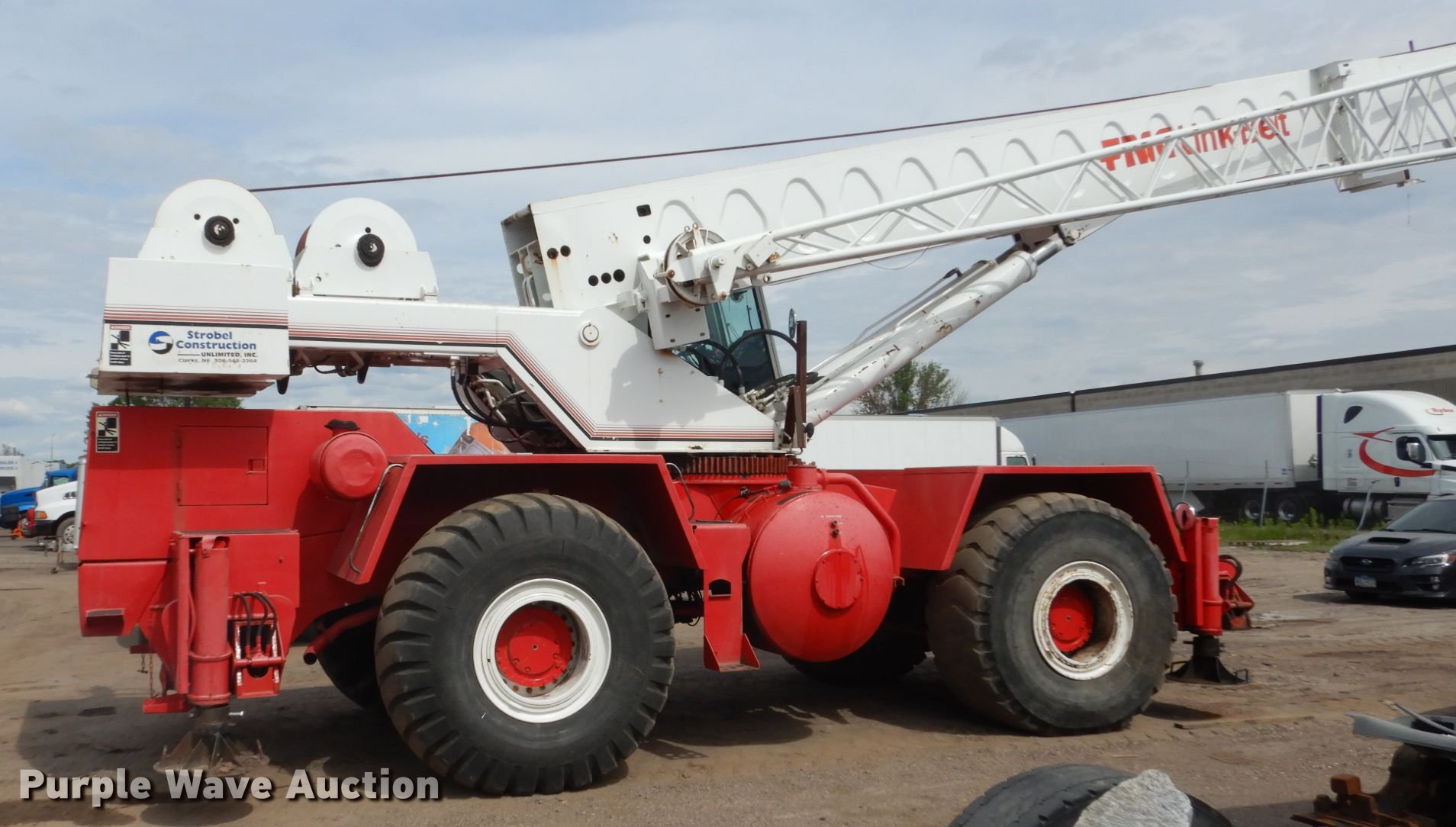 Purple Wave is selling a used Rough or All Terrain Crane in Minnesota. This item is a 1981 Link Belt HSP-8040 crane with the following: 6,401 hours on meter, Deteroit Diesel six cylinder diesel engine, Automatic transmission, Stick crane controls, Load monitor, Three section telescopic boom, 35 to 85' boom length, 80,000 lbs maximum lift capacity, 110' maximum lift height, 33' jib, In-cab boom controls, (2) winches, (2) four sheave crane blocks, Crane ball and hook, (4) outriggers, Hydrualic suspension, Air brakes, 26.5R25 tires, Serial 46H1958