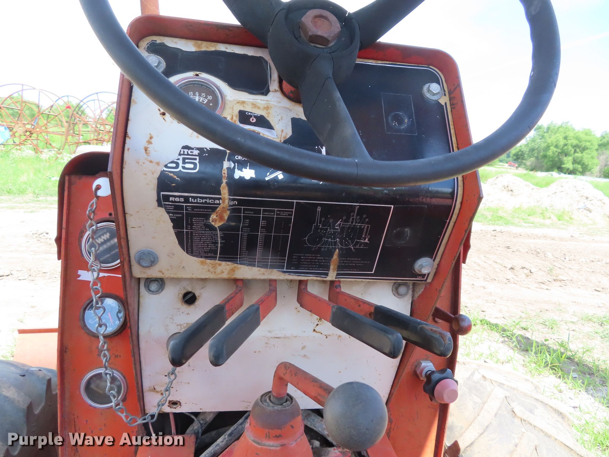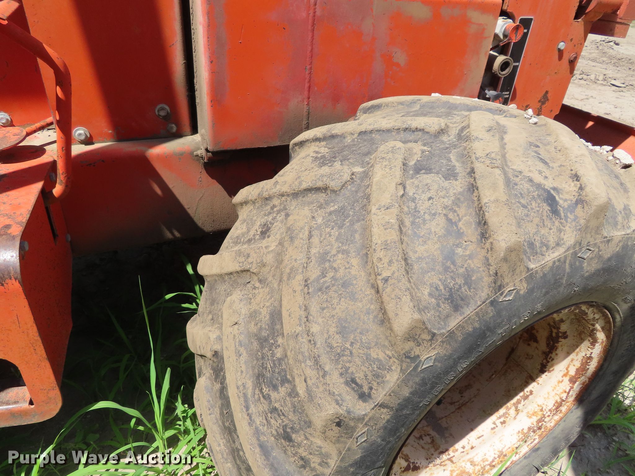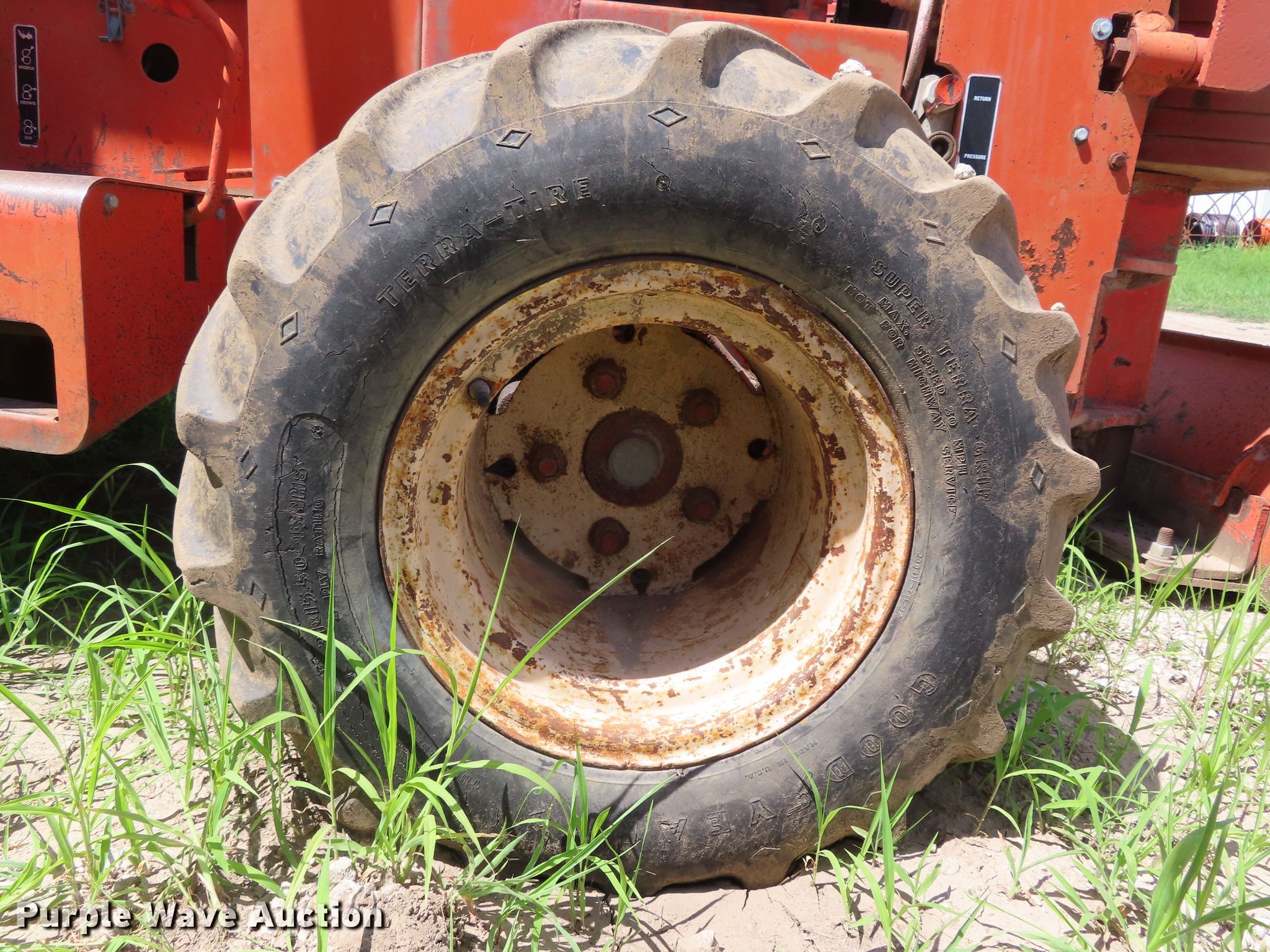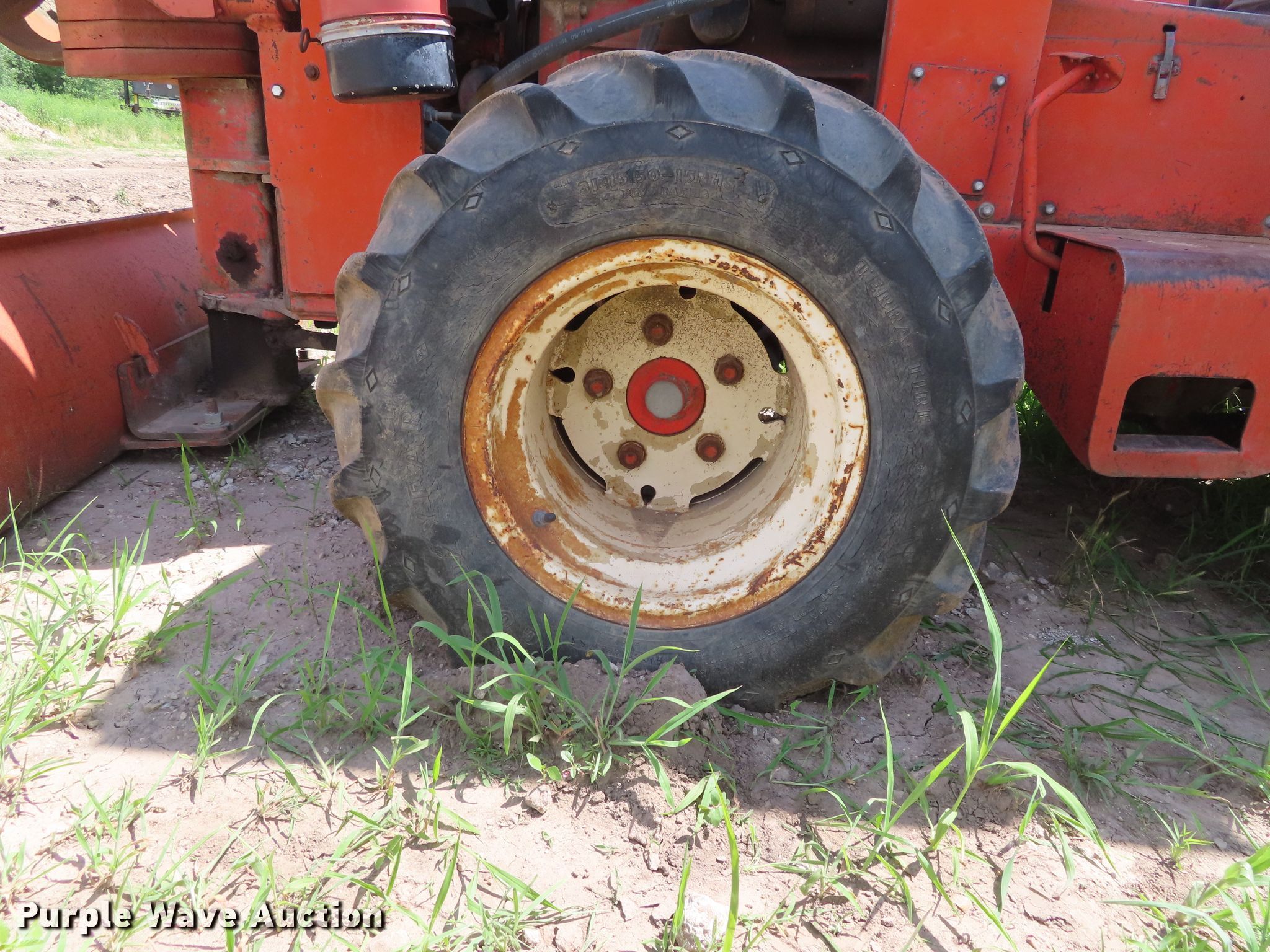 Purple Wave is selling a used Trencher or Rock Saw in Kansas. This item is a 1979 Ditch Witch R65 rock saw with the following: 572 hours on meter, Ford four cylinder gas engine, Manual transmission, 4F-1R gears, Four wheel drive, Canopy, Four-way backfill blade, Model R65ES24 rock saw, 3" cutting width, 64" diameter wheel, Rock teeth, 31x15.50-15 tires, Dead battery, Serial 651099