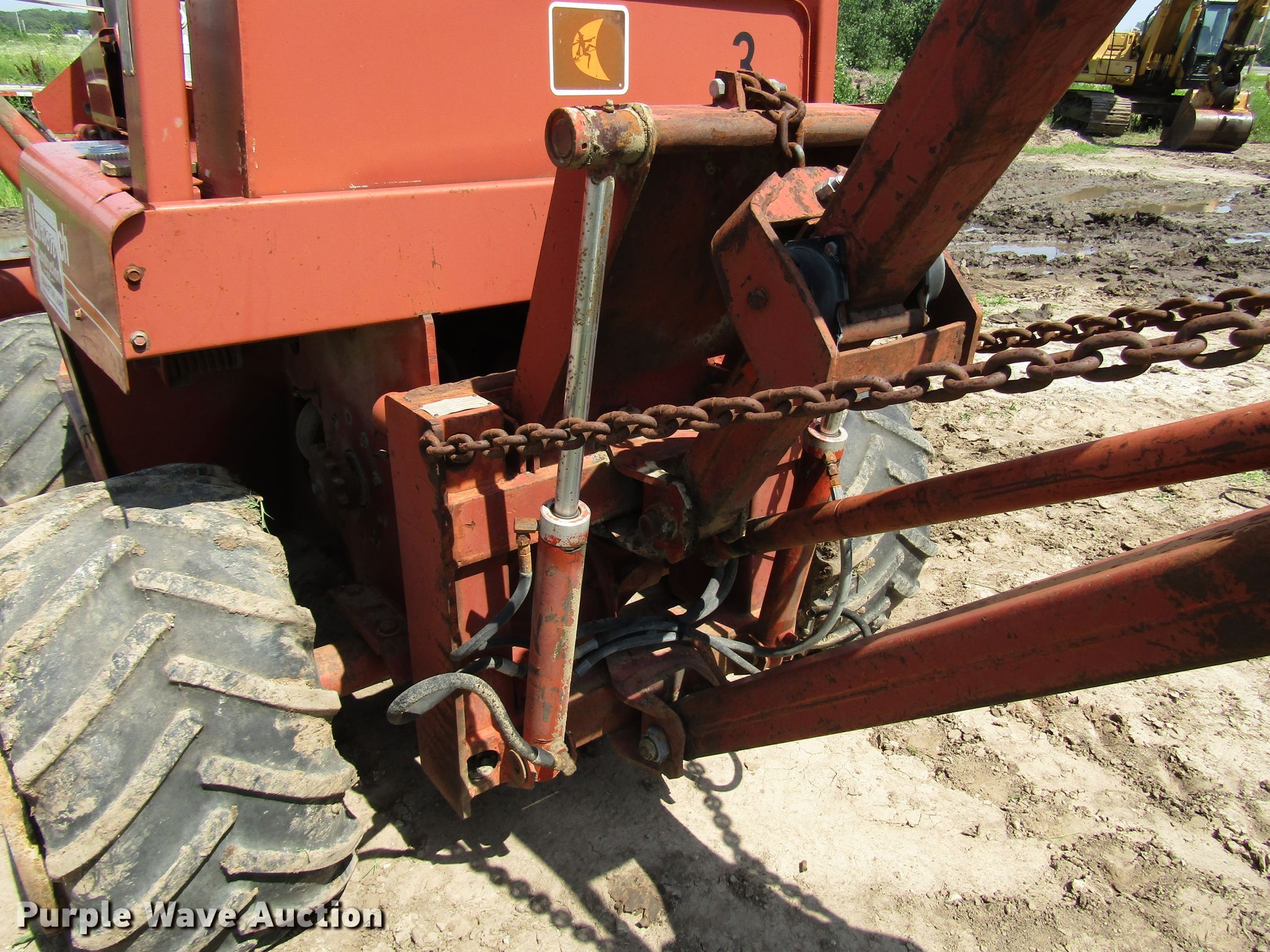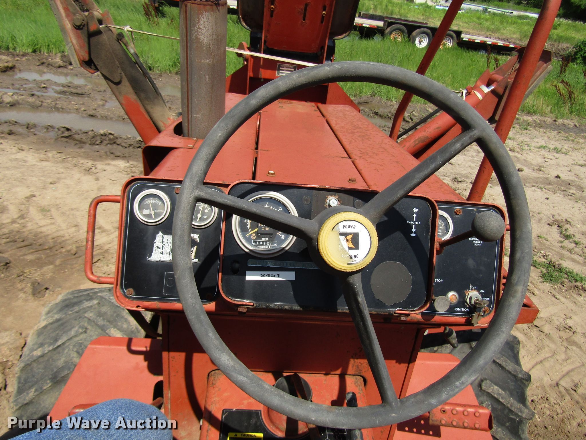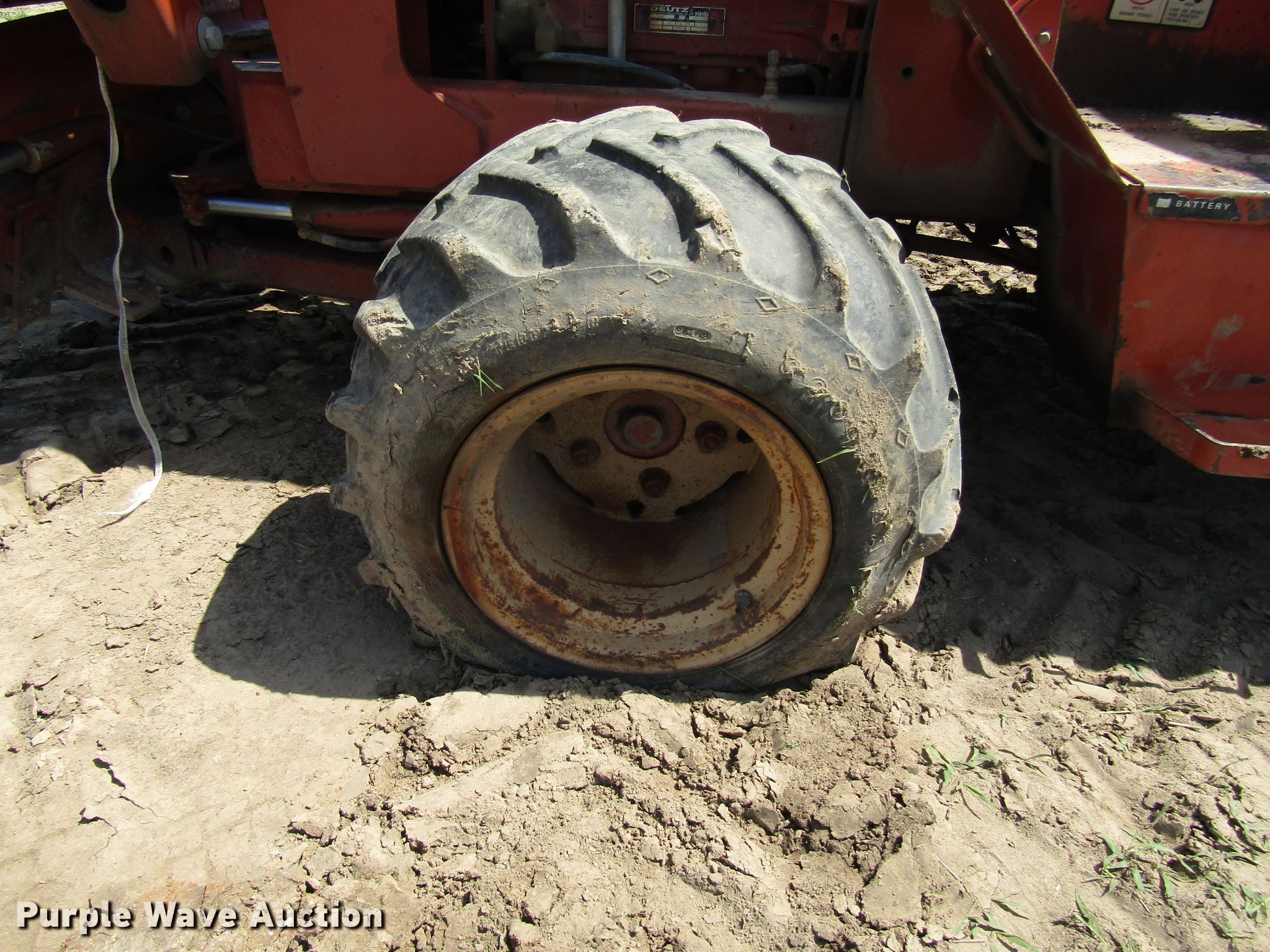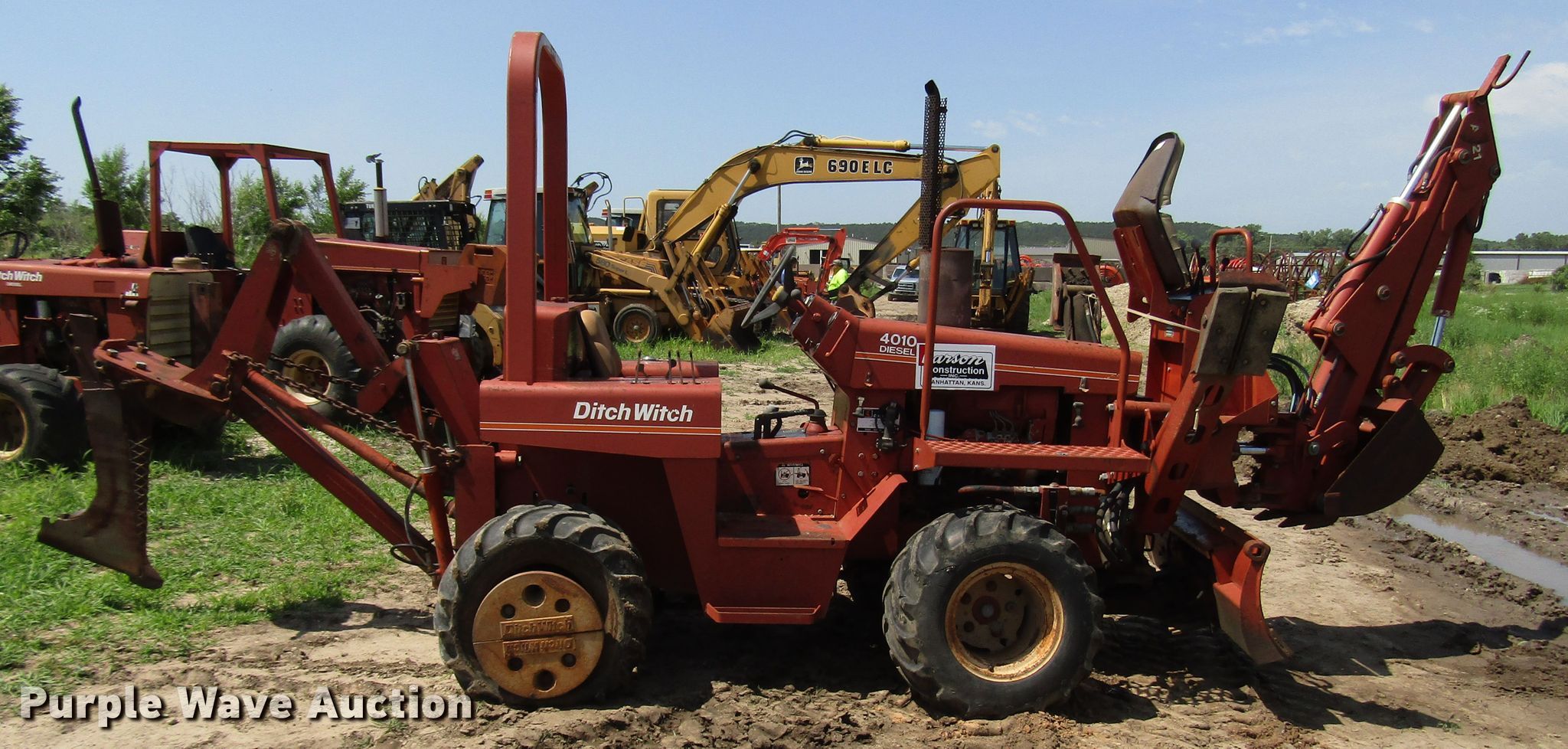 Purple Wave is selling a used Cable Plow in Kansas. This item is a 1981 Ditch Witch 4010DD cable plow with the following: 2,201 hours on meter, Deutz three cylinder diesel engine, 49 HP, Manual transmission, 4F-1R gears, Four wheel drive, Six-way backfill blade, Model VP40 cable plow, 24" depth, Serial 2774, A321 backhoe, 18"W bucket, Serial 1E0442, 31x15.50-15 tires, No battery, Serial 408842