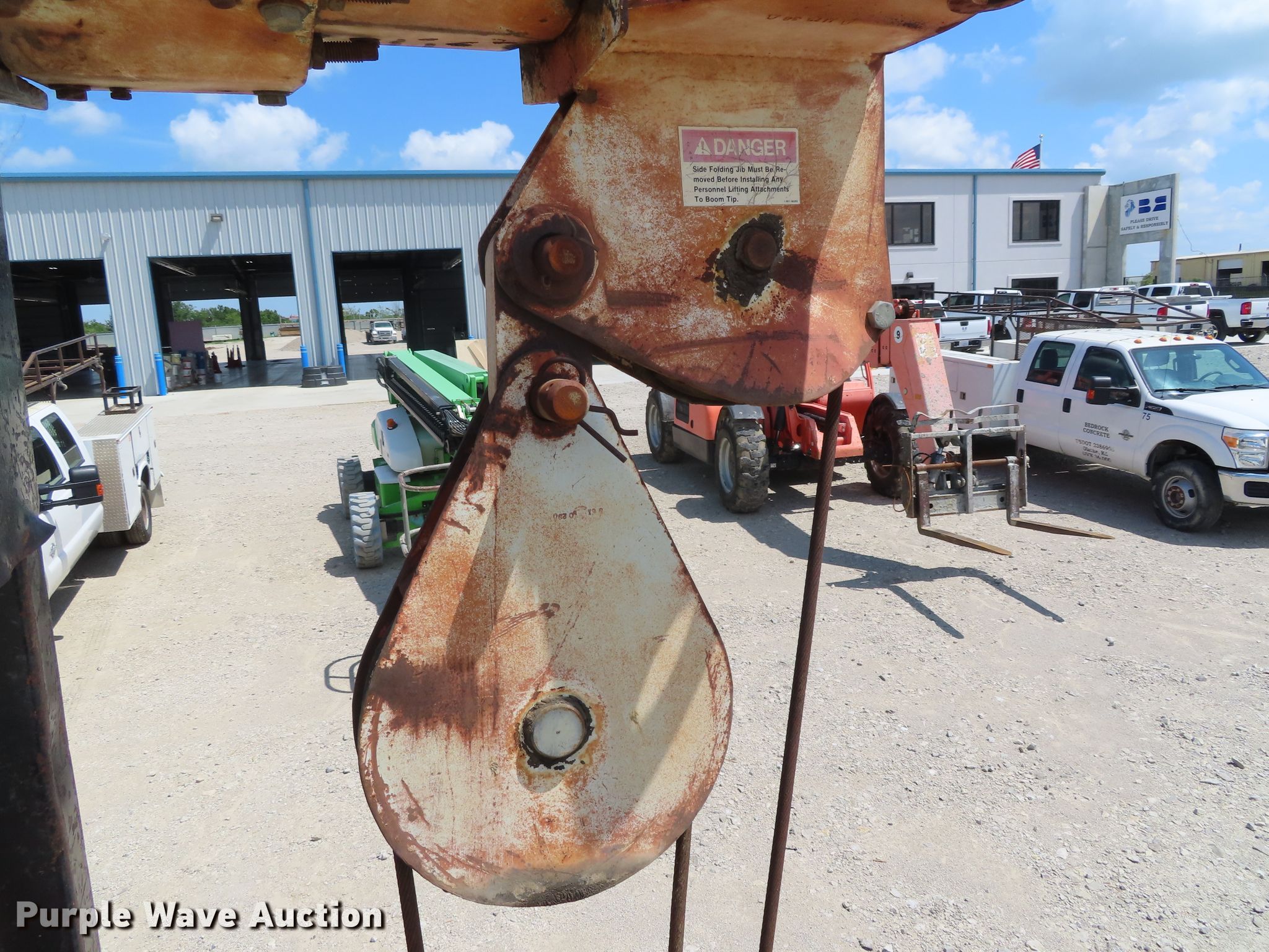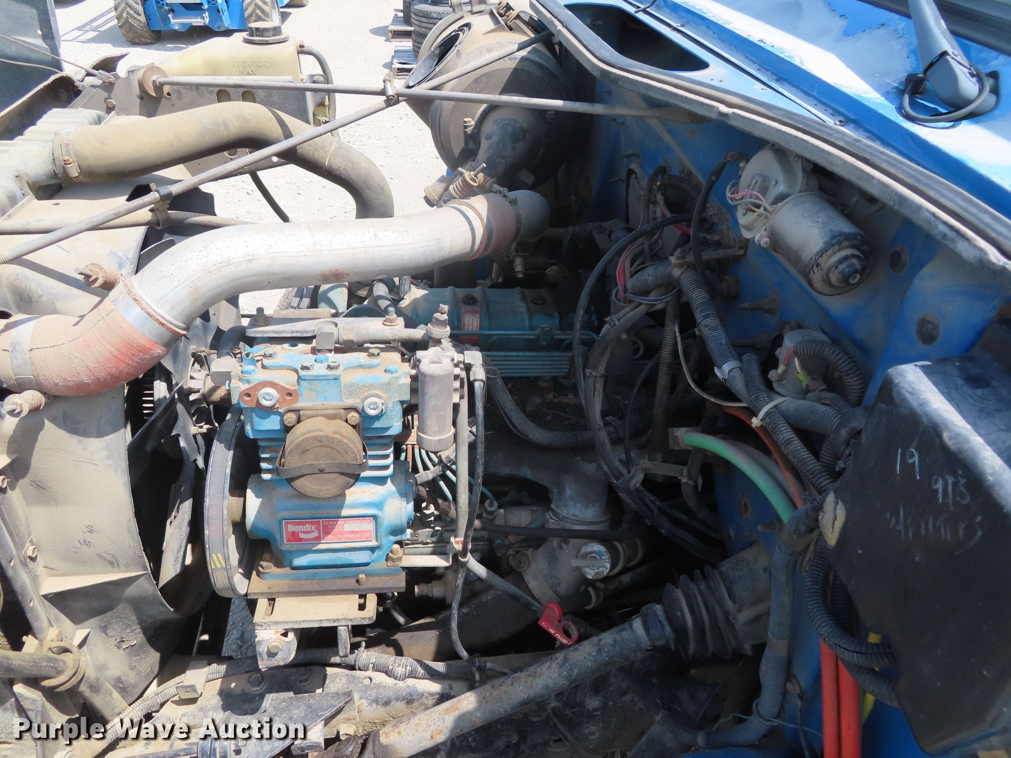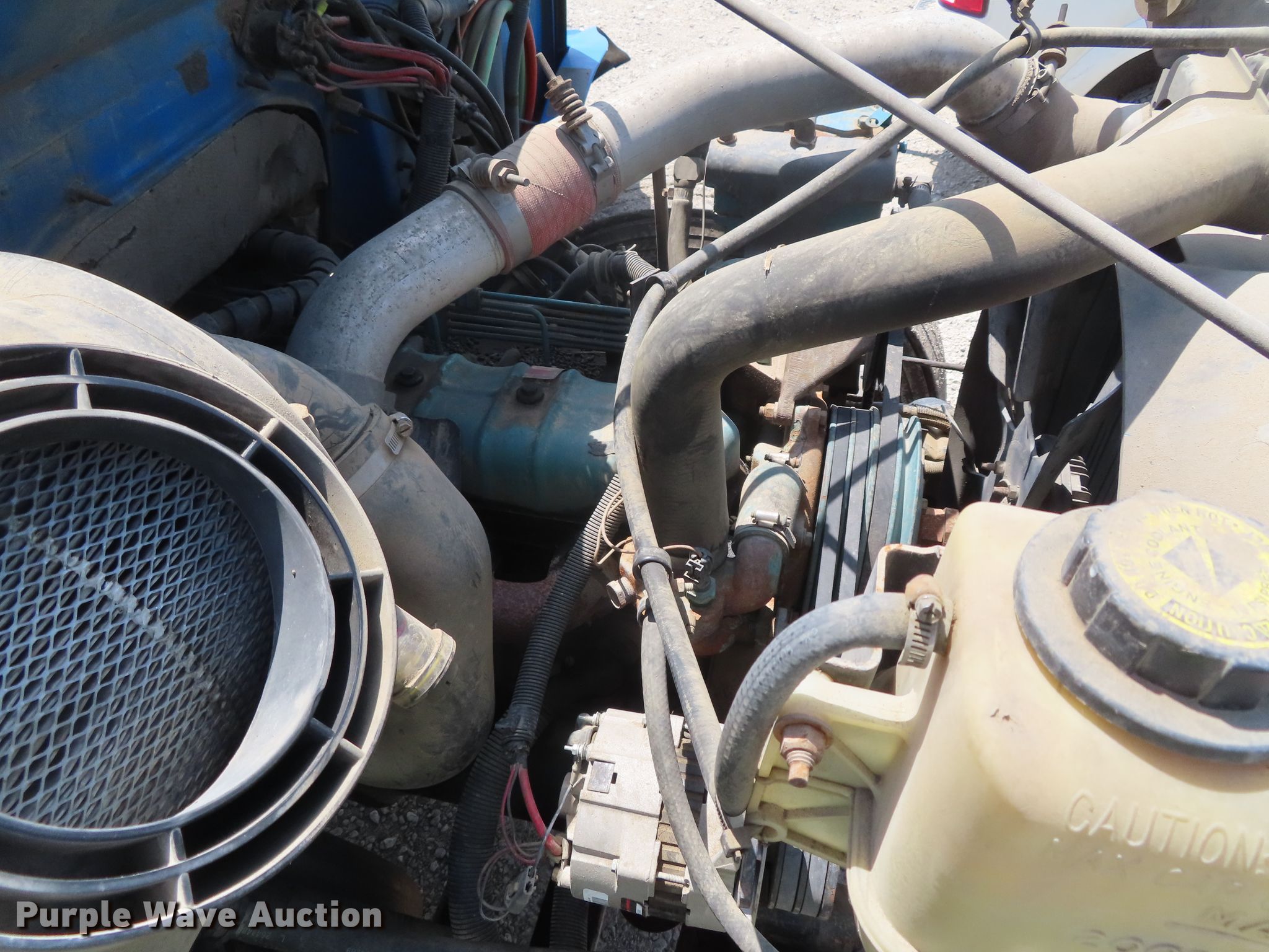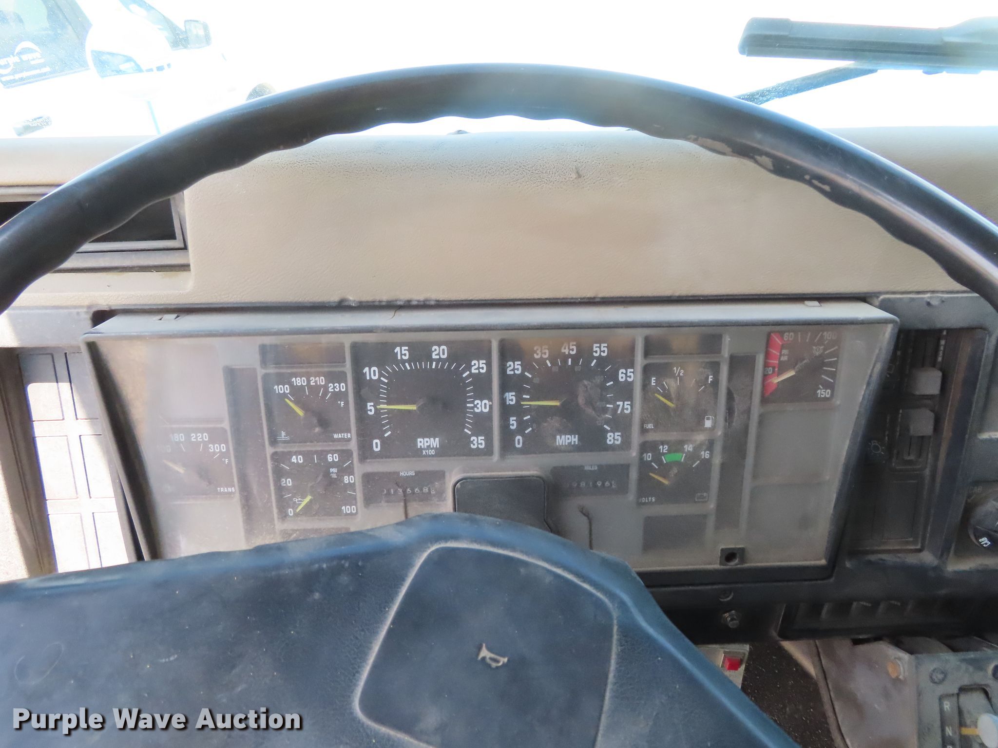 Purple Wave is selling a used Crane Truck in Kansas. This item is a 1993 International 4700 crane truck with the following: 98,197 miles on odometer, 13,669 hours on meter, International DT530 5.9L L6 diesel engine, Serial 1820808C2, Automatic transmission, Four wheel drive, Single axle, AC and heat, PTO, 15'L flatbed, Simon-Ro TC1647N crane, 47' boom length, Three boom sections, 16,000 lbs maximum lift capacity, 57' maximum lift height, Ground boom controls, 10 ton single sheave crane block, Lift chart, Air suspension, Air brakes, 11R22.5 tires, Boom cylinder leak