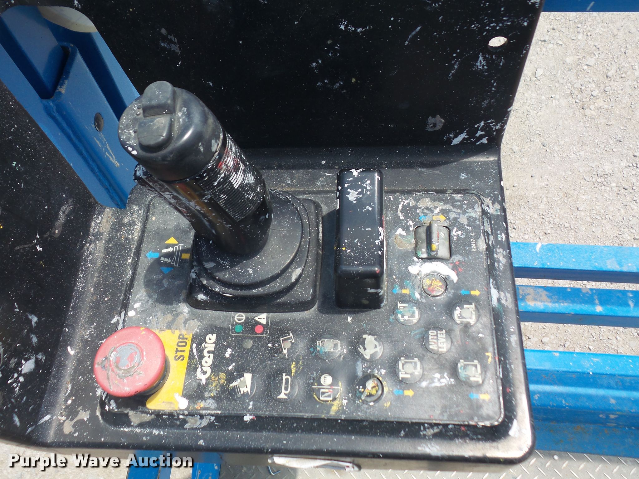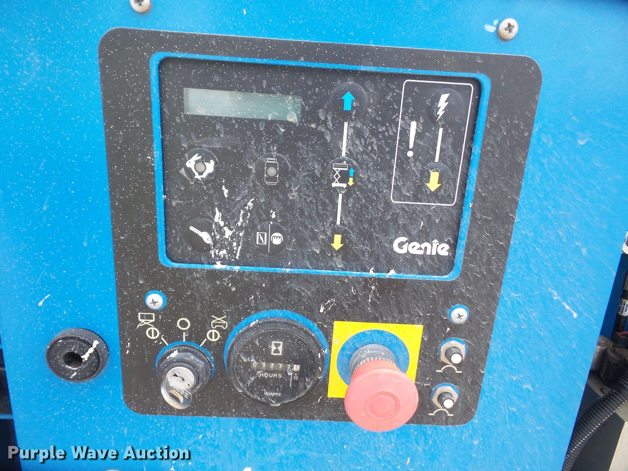 Purple Wave is selling a used Scissor or Vertical Lift in Kansas. This item is a 2012 Genie GS2669 scissor lift with the following: 1,377 hours on meter, Kubota WG972-GL-ET three cylinder dual fuel engine, Gas and propane capable, 1,500 lbs maximum lift capacity, 26' maximum lift height, 9'L x 5'W platform, AC power outlet, Manual platform extensions, Platform and ground controls, Hydraulic leveling, 3.5 mph travel speed, Safety alarm, 26 x 12D380 foam filled tires, Serial GS6912-884