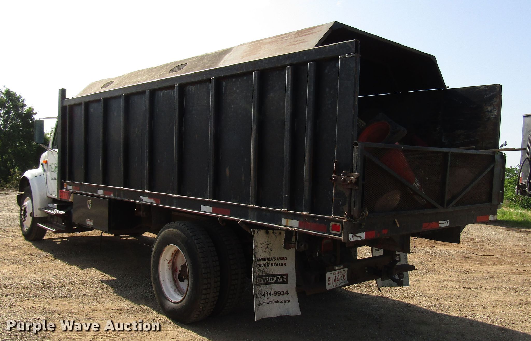 Purple Wave is selling a used Construction Dump Truck in Kansas. This item is a 2000 International 4900 chipper truck with the following: 96,766 miles on odometer, International DT466 7.6L L6 diesel engine, Six speed manual transmission, Single axle, Heat, PTO, 18.5'L x 96"W steel dump bed, 48" side height, Single ram hoist, Manual operated end gate, Spring suspension, Air brakes, 11R22.5 tires, Possible third gear issue, Unit# 179
