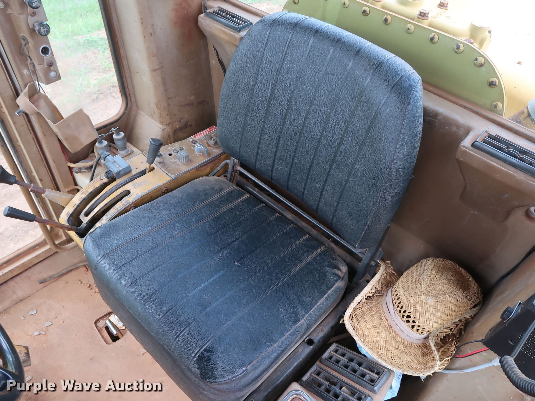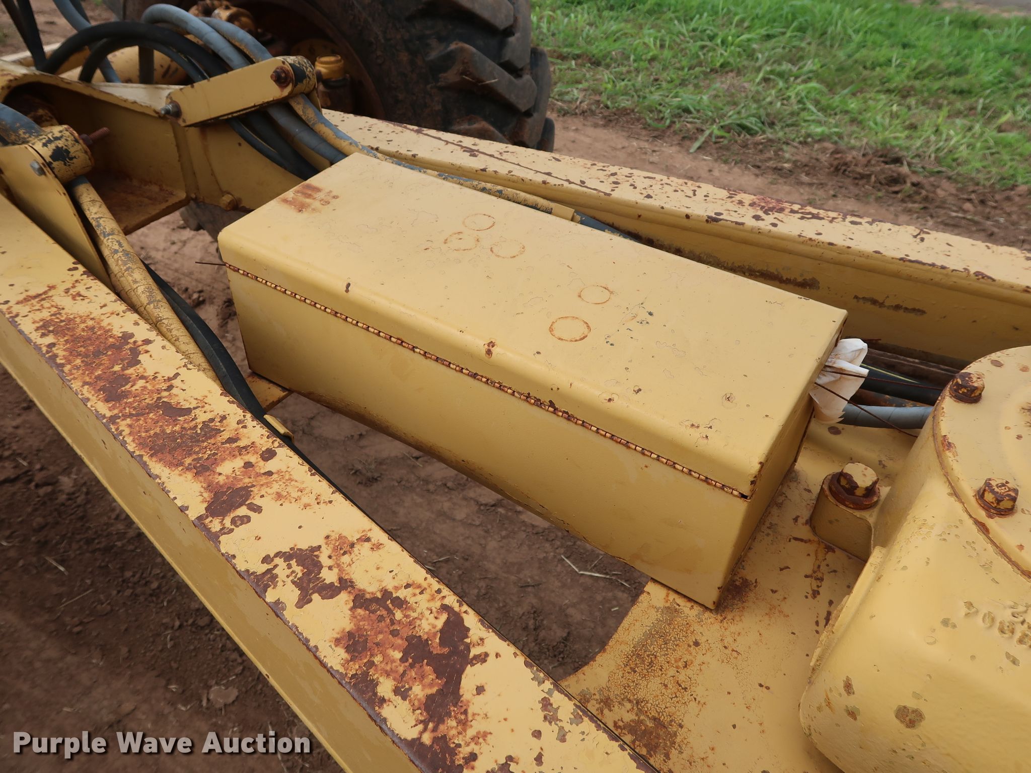 Purple Wave is selling a used Motor Grader in Oklahoma. This item is a 1982 Caterpillar 12G motor grader with the following: 2,020 hours on meter, Caterpillar 3306 six cylinder diesel engine, Serial 8712976, Powershift transmission, 6F-6R gears, Differential lock, EROPS, AC and heat, AM/FM, Eight control valves, 14'W moldboard, Tip control, Side shift, Blade accumulators, 14.00-24 tires, Serial 61M09745