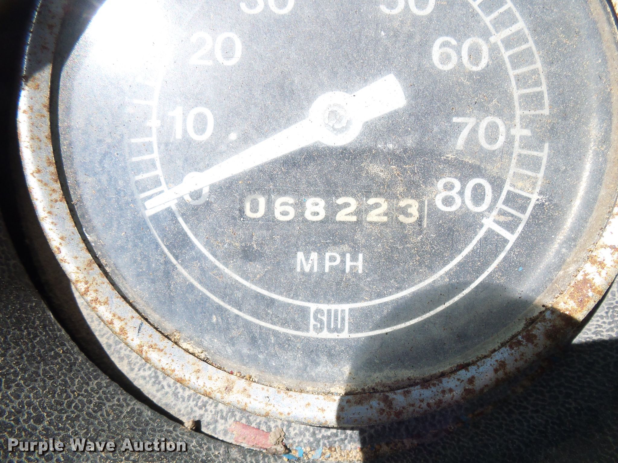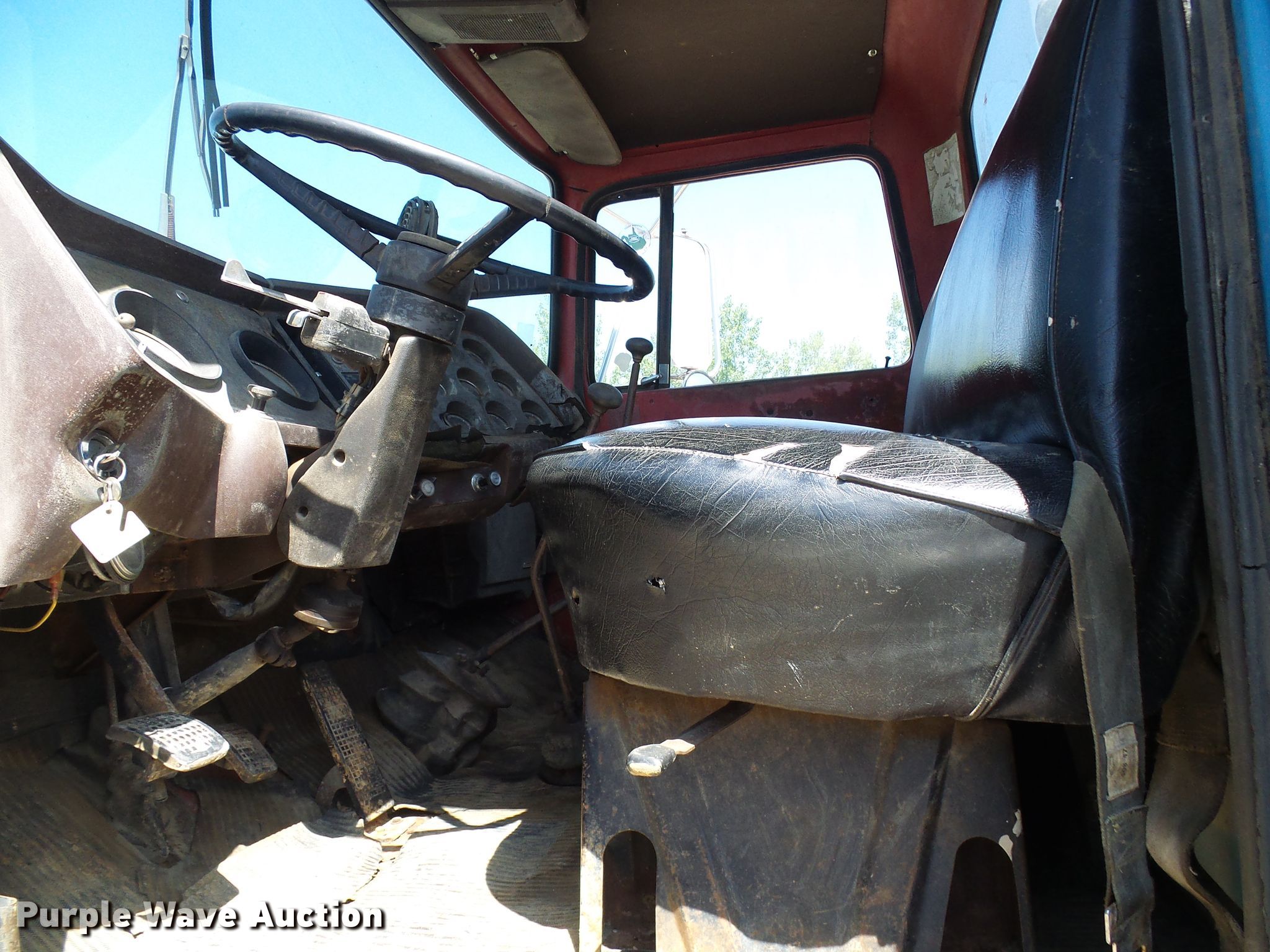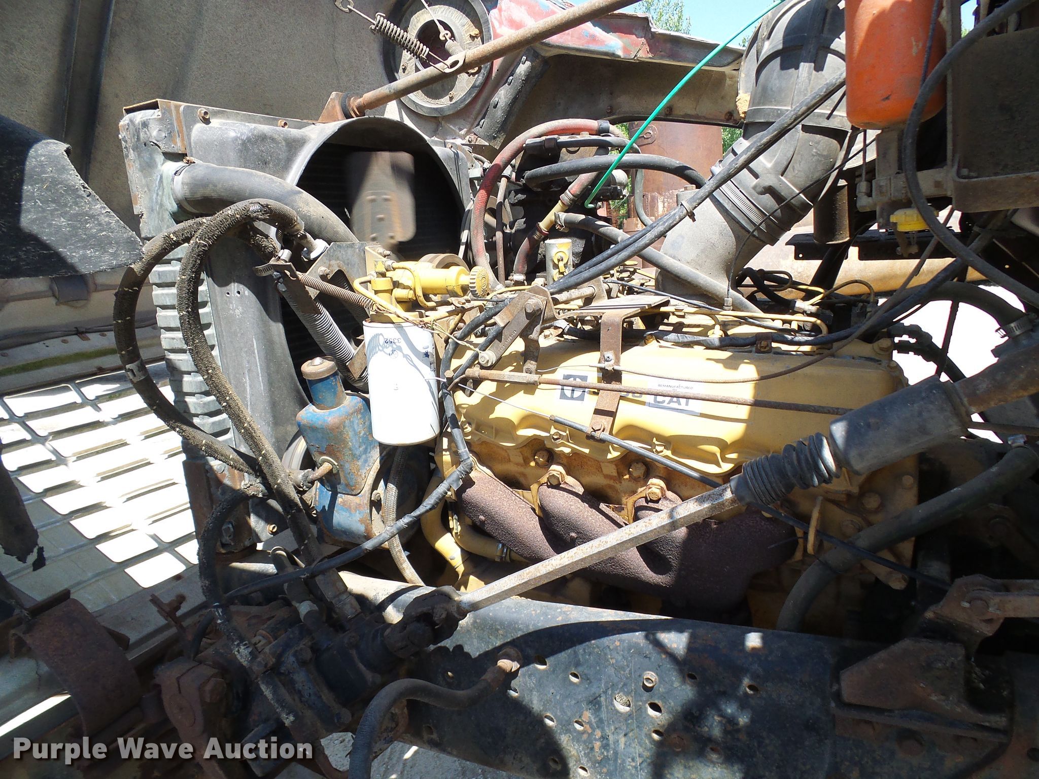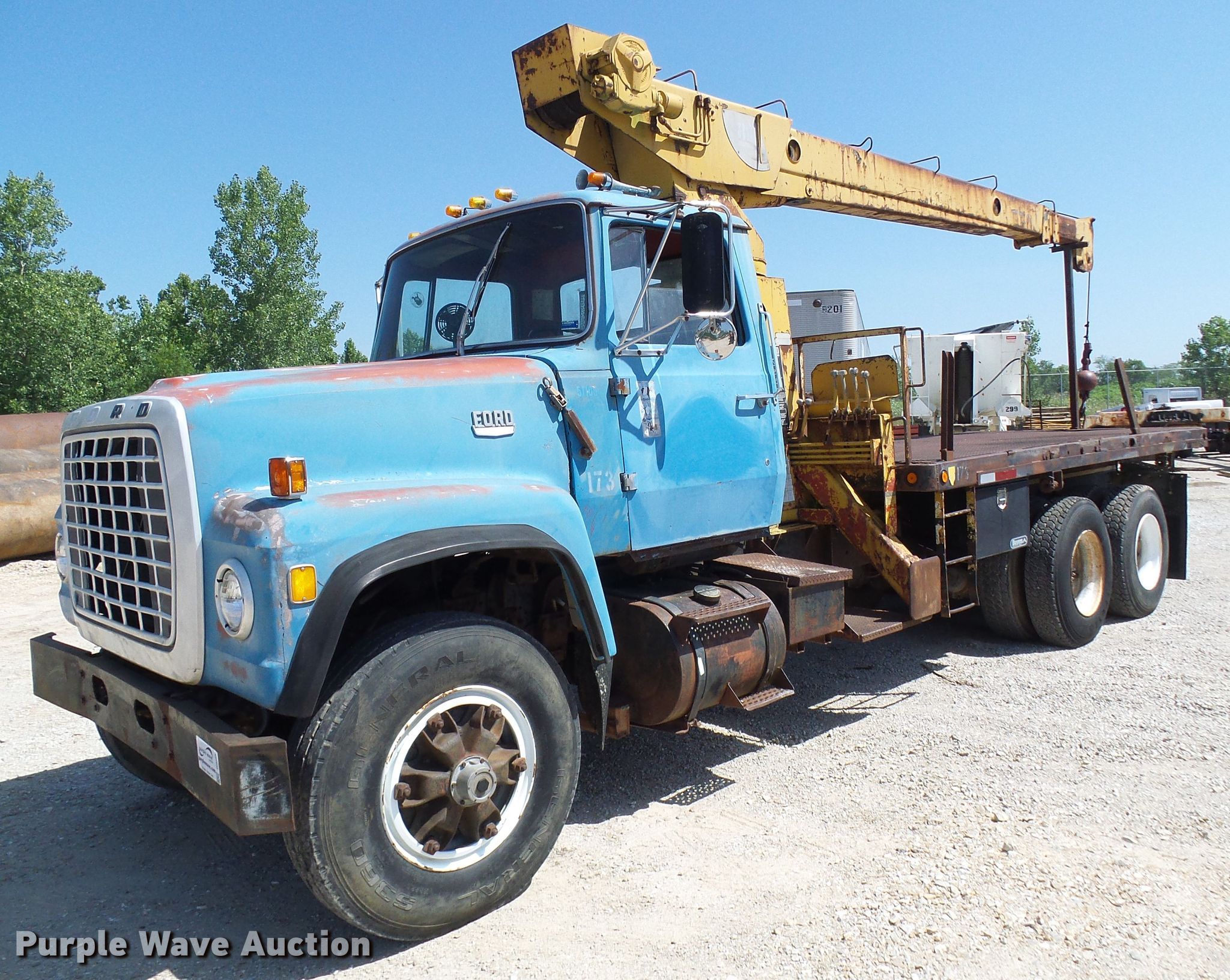 Purple Wave is selling a used Crane Truck in Missouri. This item is a 1975 Ford crane truck with the following: 68,223 miles on odometer, Caterpillar 3208 eight cylinder diesel engine, Five speed manual transmission, Tandem axle, Heat, PTO, 16'L flatbed, RO TC-50-4 crane, Telescopic boom, 12,500 lbs maximum lift capacity, 47' maximum lift height, Ground boom controls, Crane ball and hook, (2) outriggers, Spring suspension, Air brakes, 11R22.5 tires, GVWR 50,000 lbs