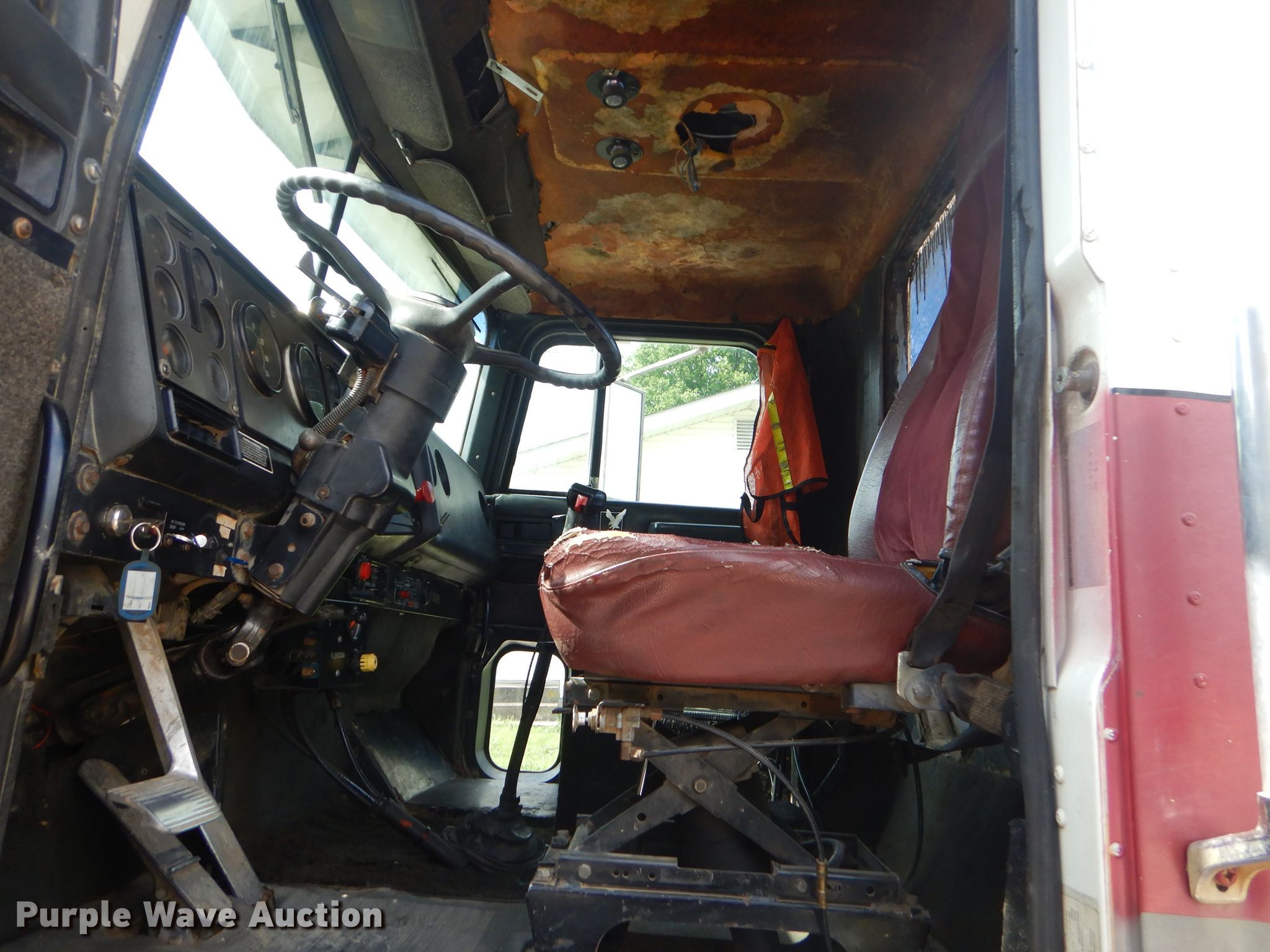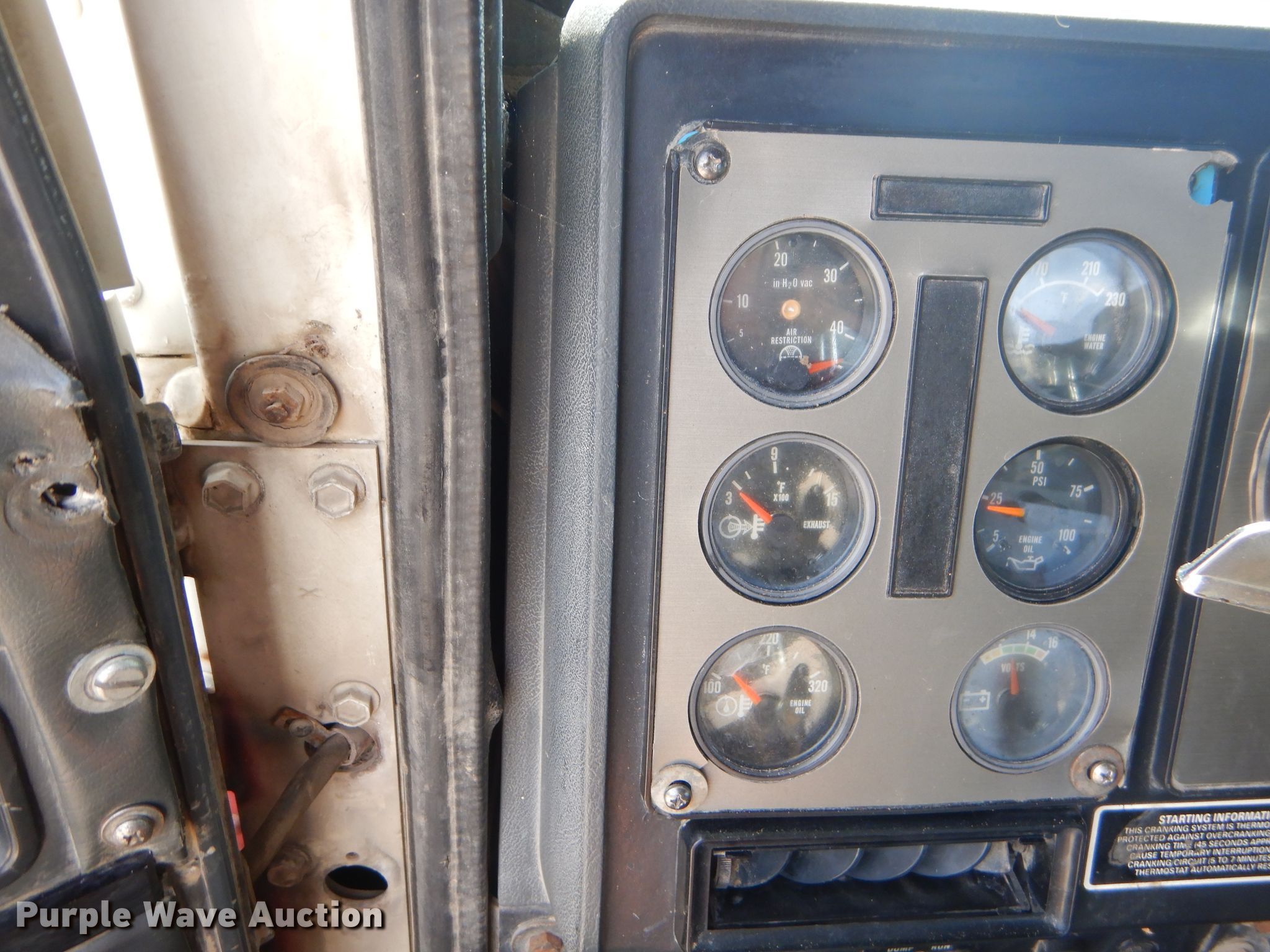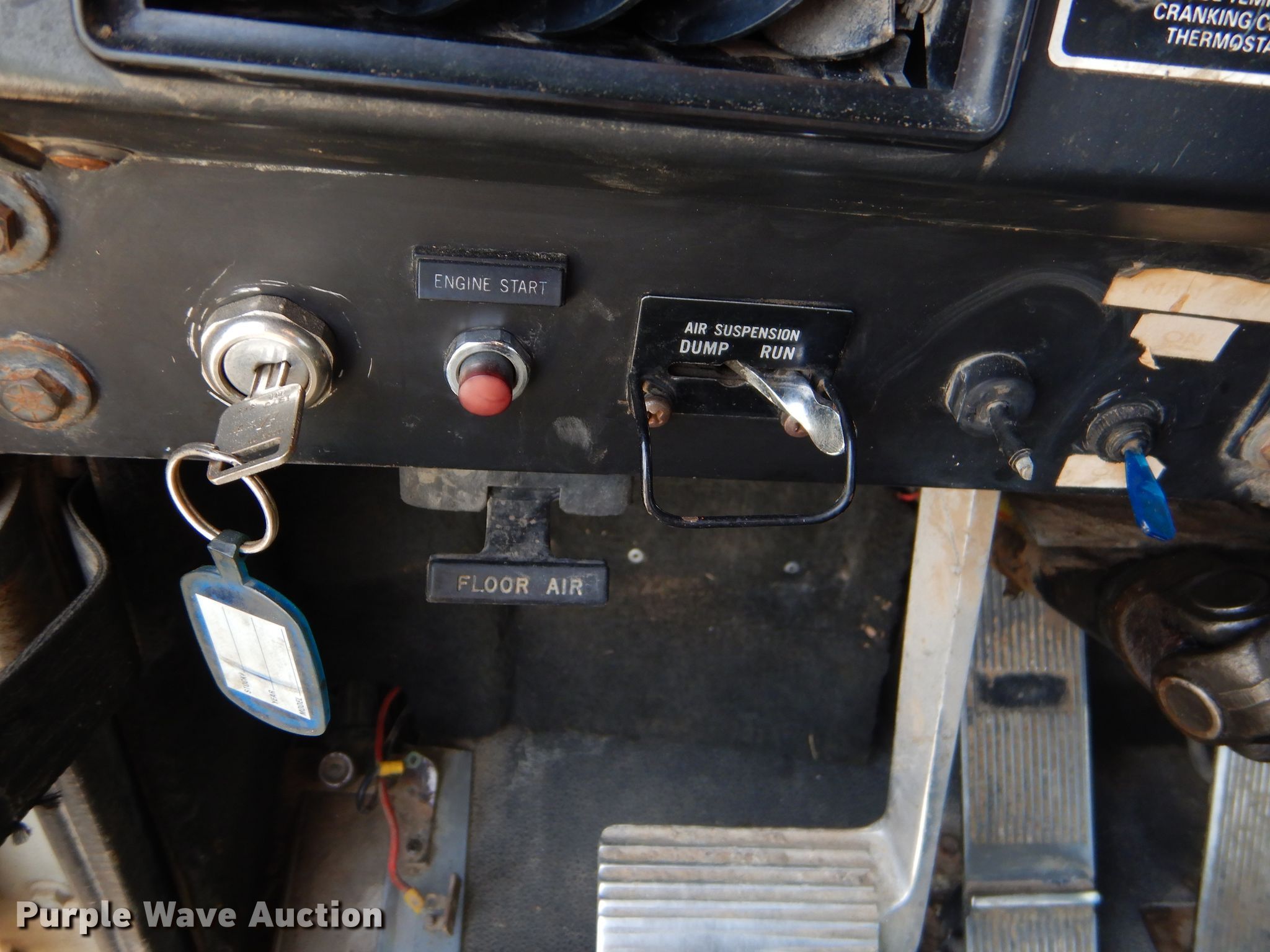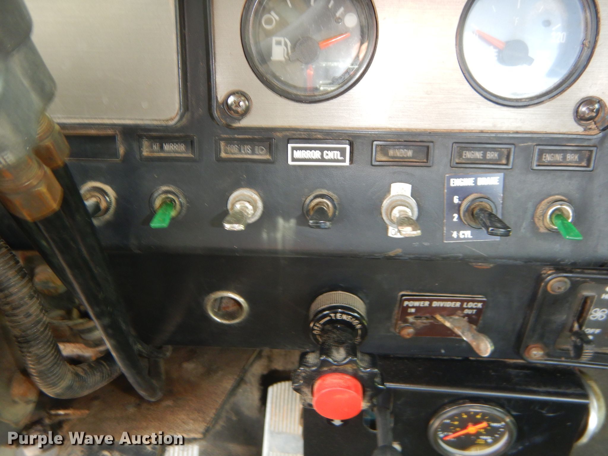 Purple Wave is selling a used Construction Dump Truck in Oklahoma. This item is a 1990 International 9400 dump truck with the following: 252,629 miles on odometer, Cummins 12.0L L6 diesel engine, 10 speed manual transmission, Tandem axle, AC and heat, Power windows, Heated mirrors, Telescoping steering wheel, PTO, 17'L x 96"W steel dump bed, 36" side height, 10" side board height, Single ram hoist, Air operated end gate, 244" wheelbase, Air brakes, 11R24.5 tires, GVWR 57,000 lbs, Windshield chipped, One fuel cell inoperable