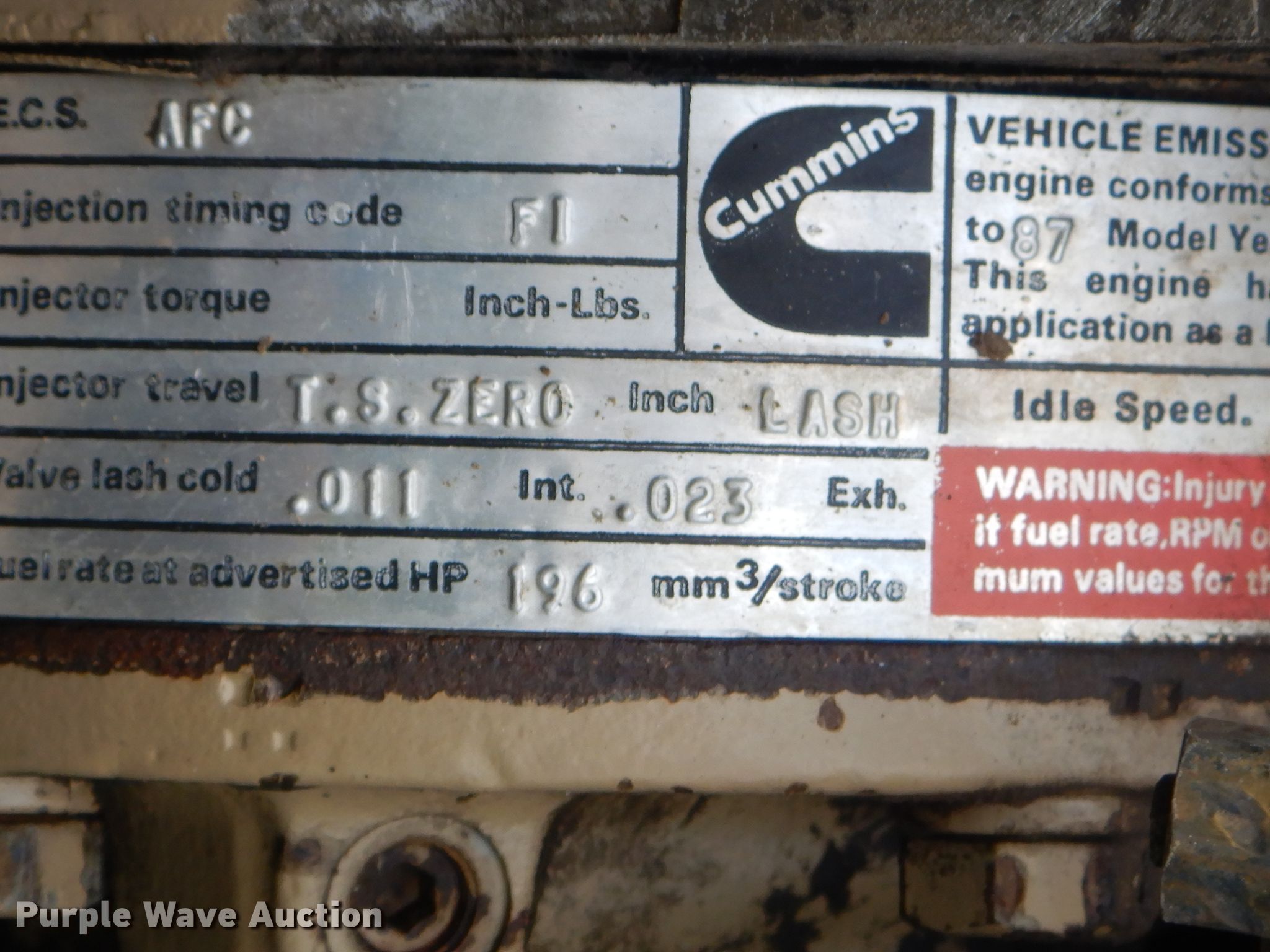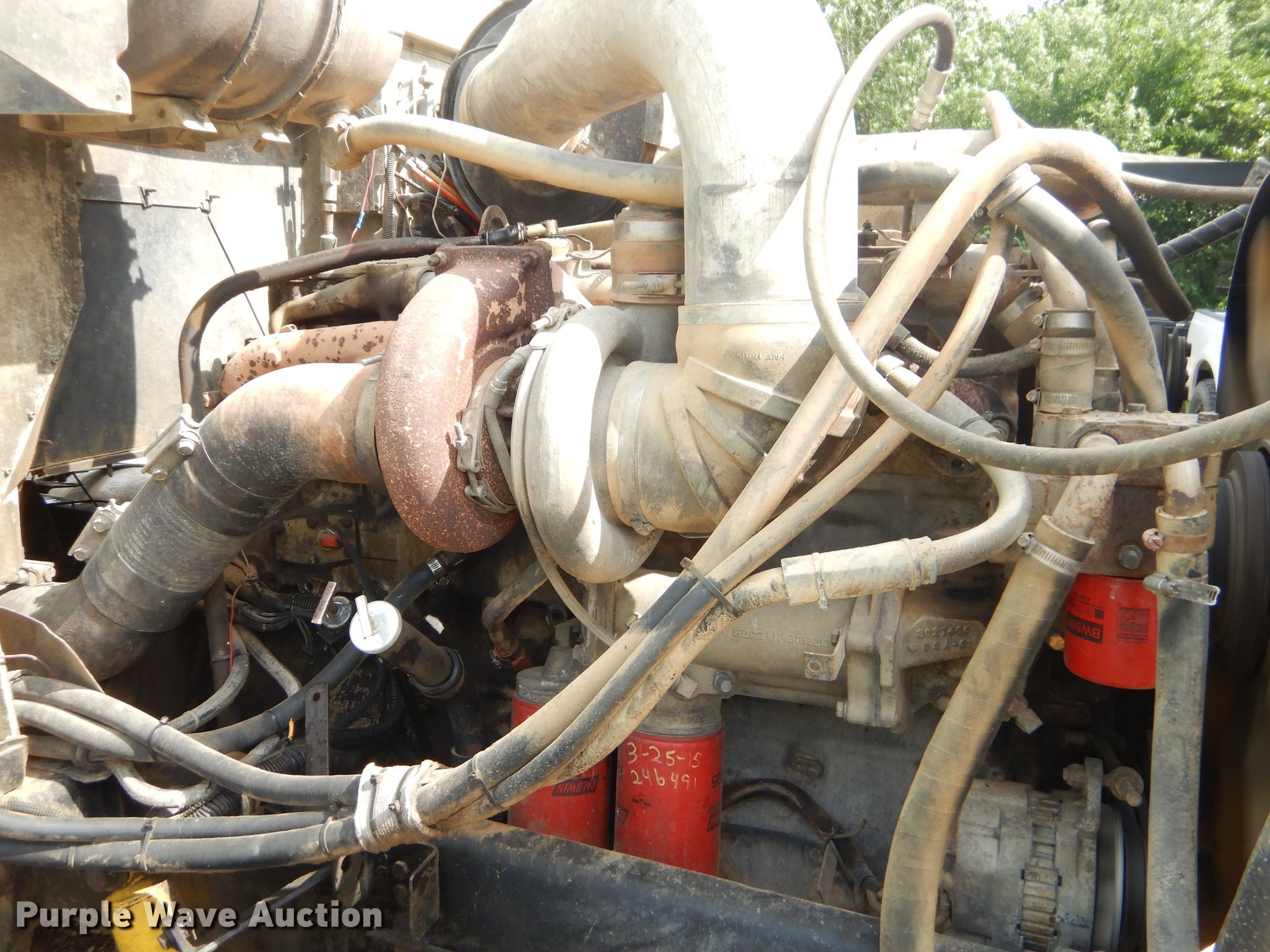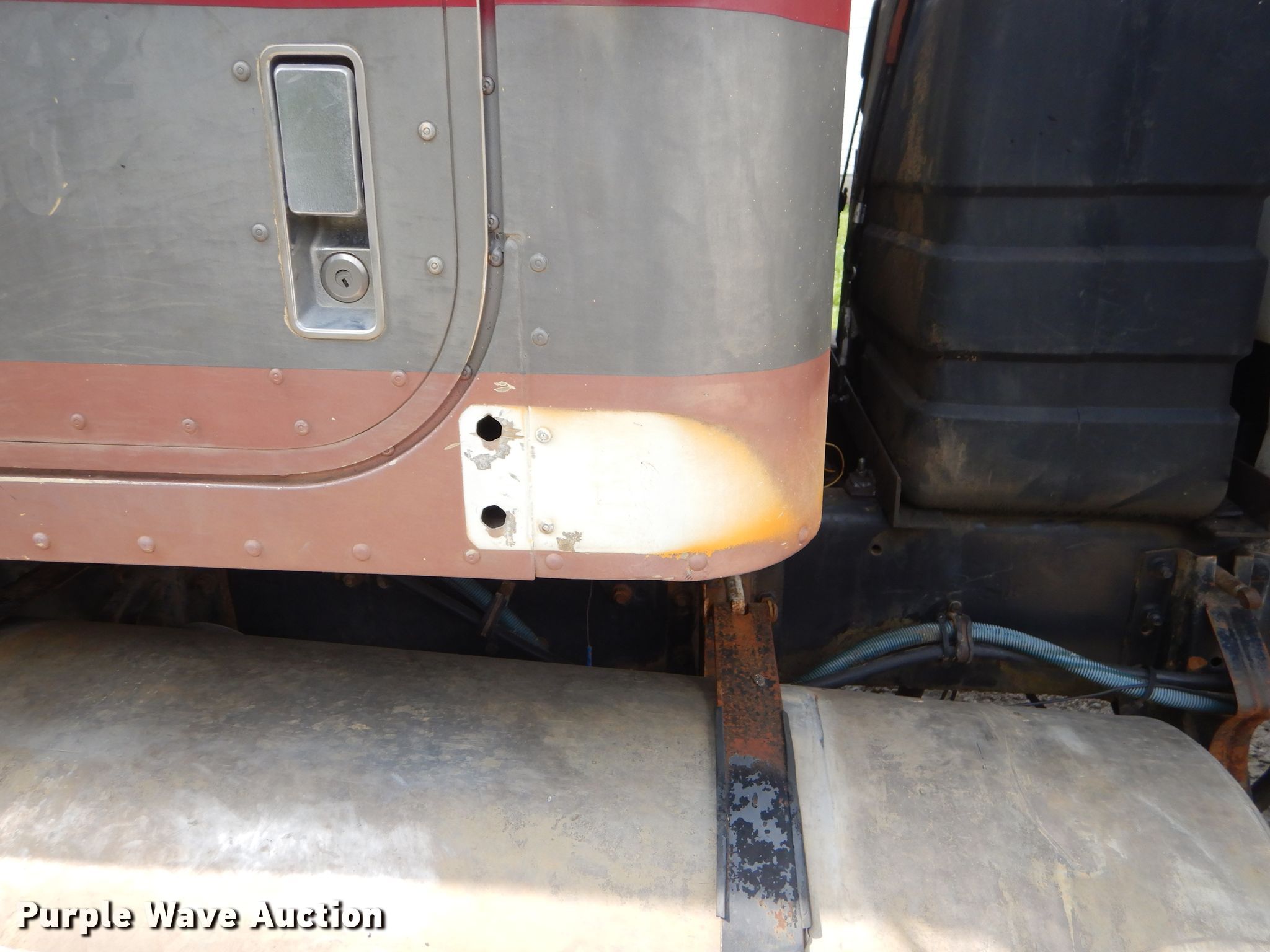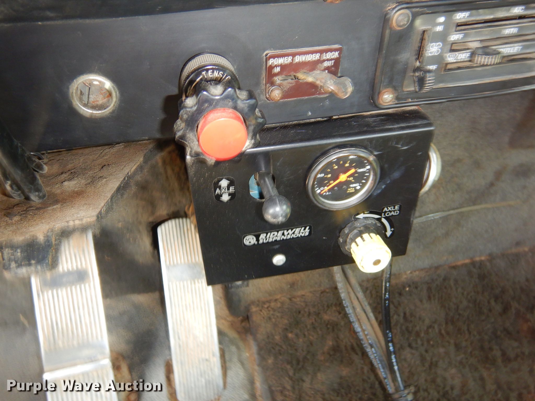 Purple Wave is selling a used Construction Dump Truck in Oklahoma. This item is a 1990 International 9400 dump truck with the following: 252,629 miles on odometer, Cummins 12.0L L6 diesel engine, 10 speed manual transmission, Tandem axle, AC and heat, Power windows, Heated mirrors, Telescoping steering wheel, PTO, 17'L x 96"W steel dump bed, 36" side height, 10" side board height, Single ram hoist, Air operated end gate, 244" wheelbase, Air brakes, 11R24.5 tires, GVWR 57,000 lbs, Windshield chipped, One fuel cell inoperable