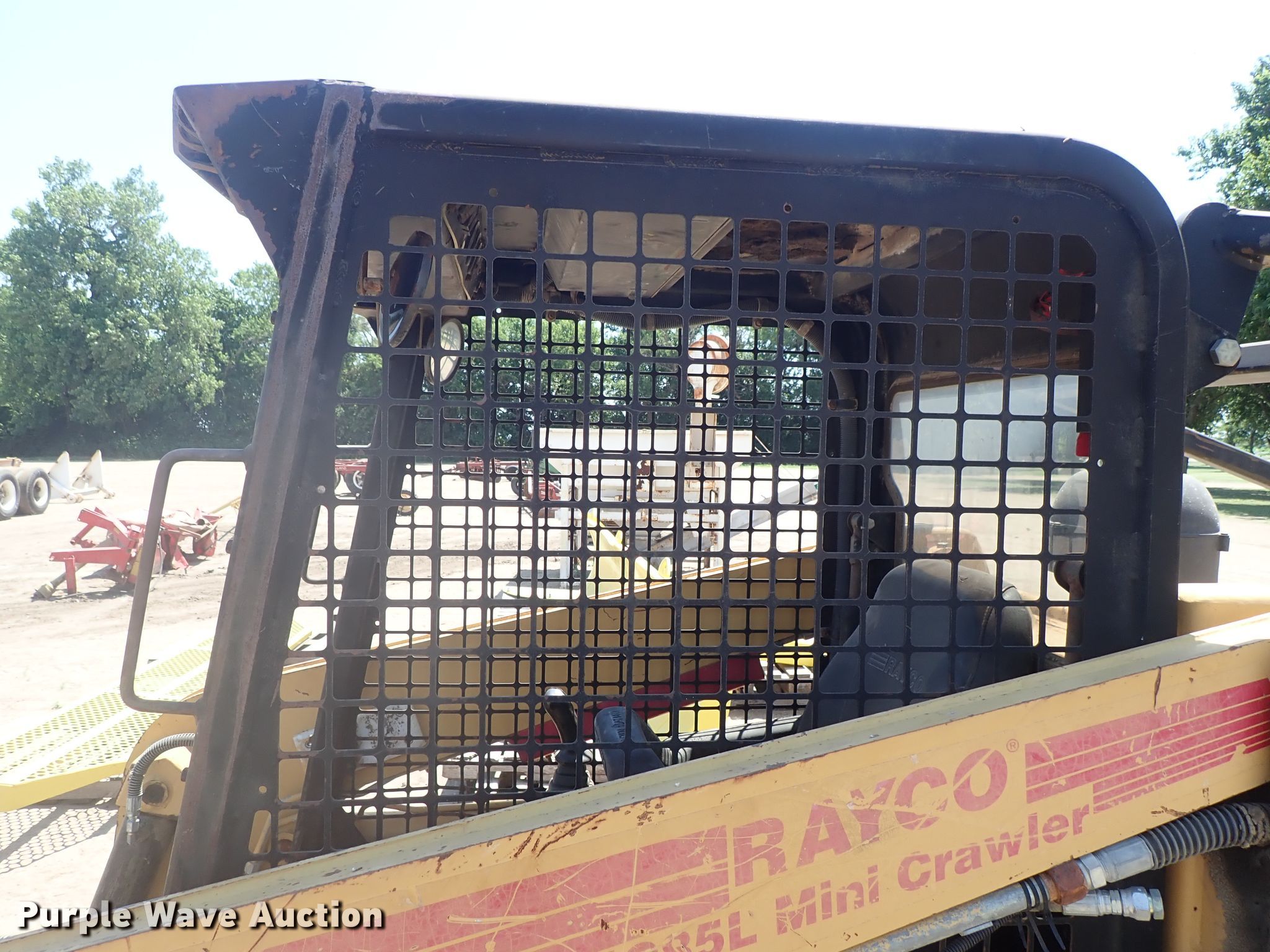 Purple Wave is selling a used Tracked Skid Steer Loader in Kansas. This item is a Rayco C85L skid steer with the following: 1,983 hours on meter, Deutz BF4M1011F four cylinder diesel engine, Hydrostatic transmission, Hand bucket controls, Manual quick coupler, Auxiliary hydraulics, 14"W tracks, Track issues, Loader issues, Unknown operating condition