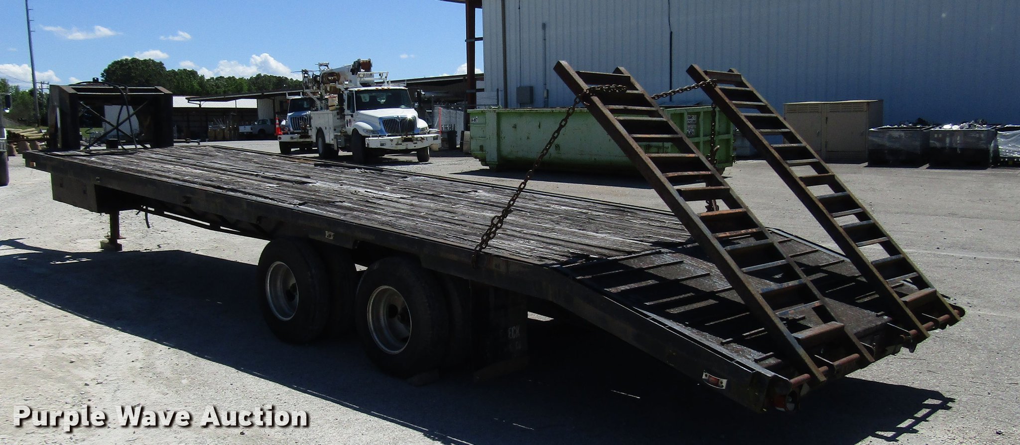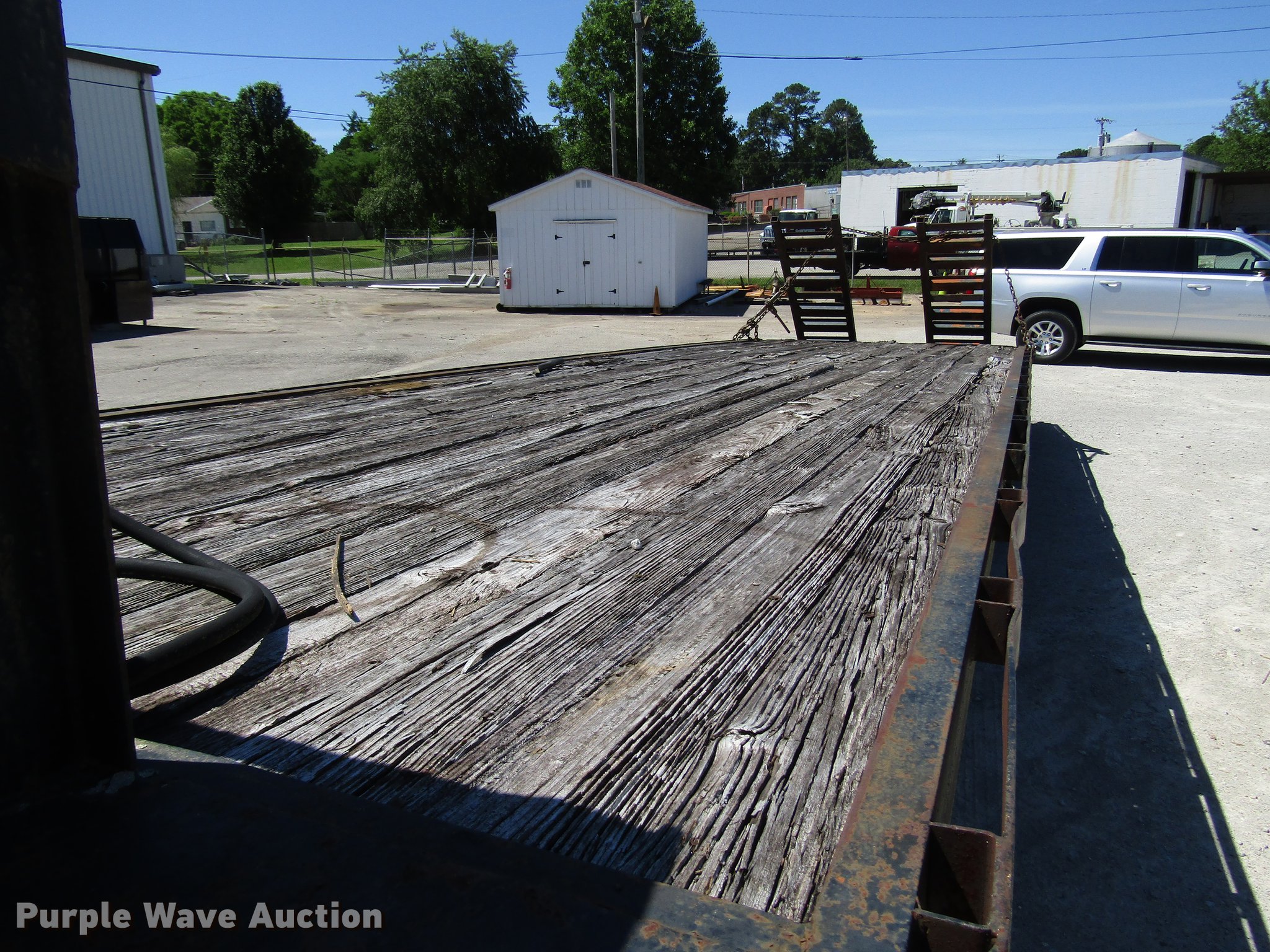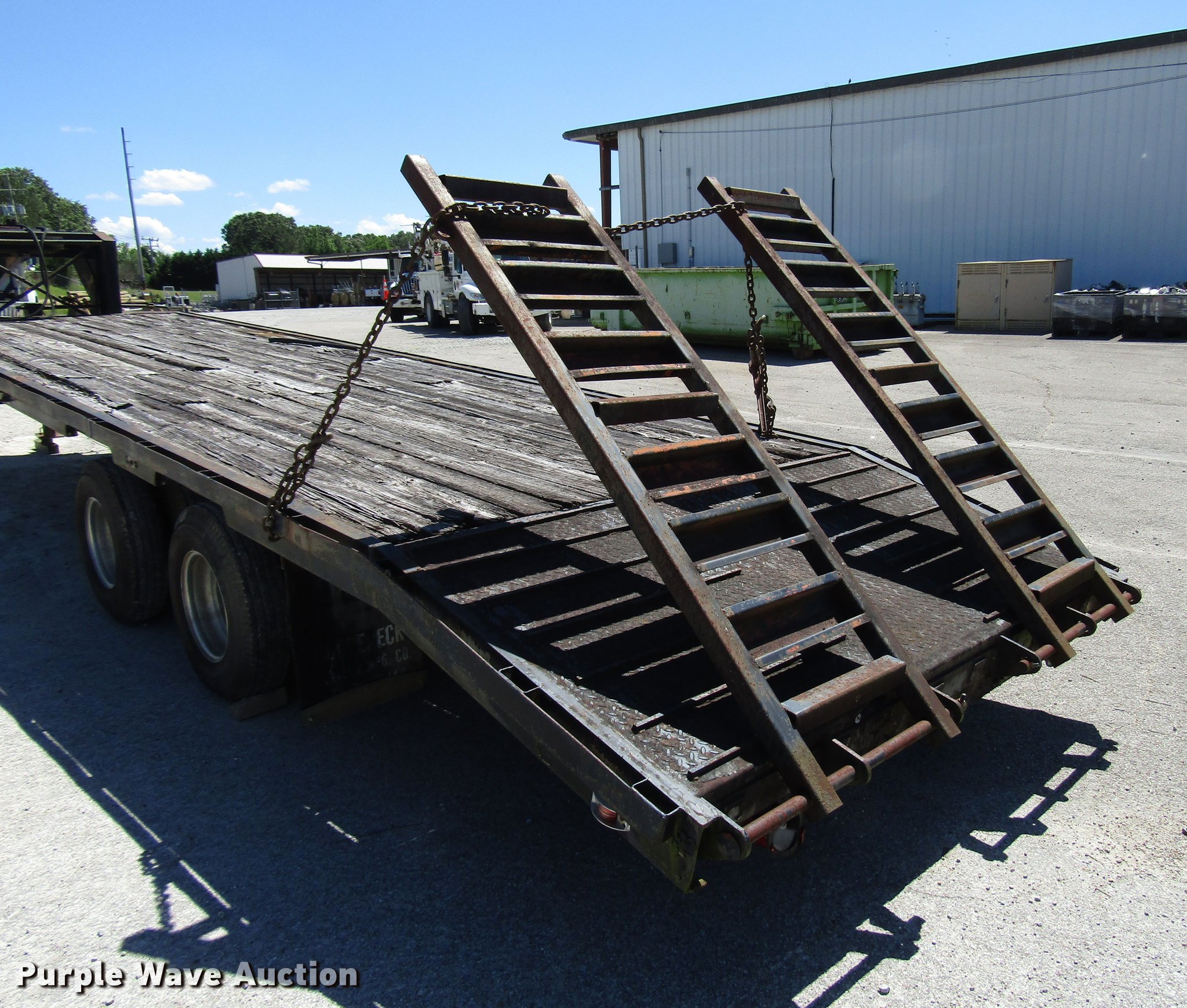 Purple Wave is selling a used Equip. Trailer in Tennessee. This item is a 1984 Gooseneck equipment trailer with the following: 38' overall length, 30'L x 96"W wood deck, 4' tail length, 7'L ramps, Single leg landing gear, Spring suspension, Hydraulic brakes, Steel wheels, 7.50-16 tires, Possible brake issues
