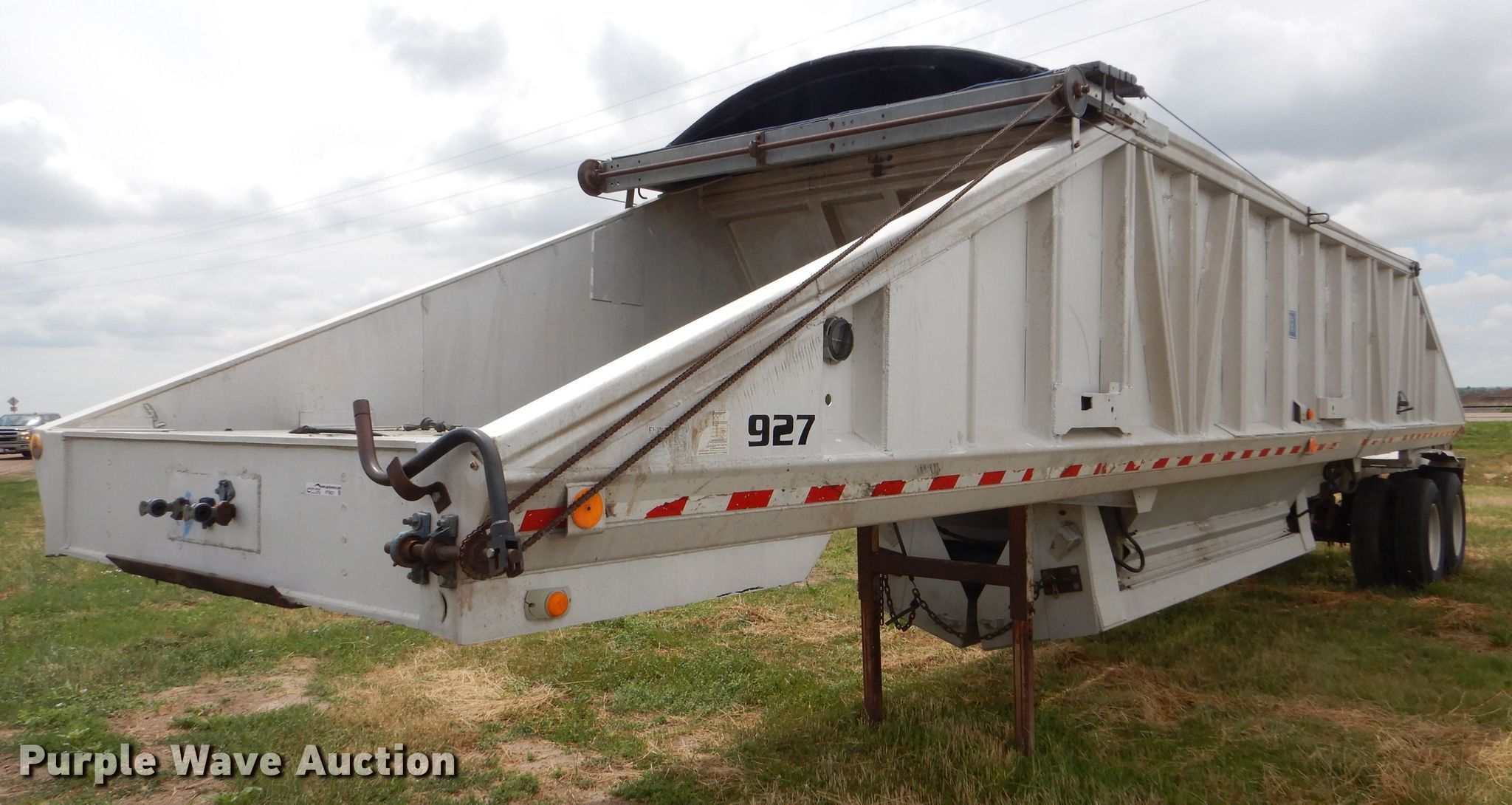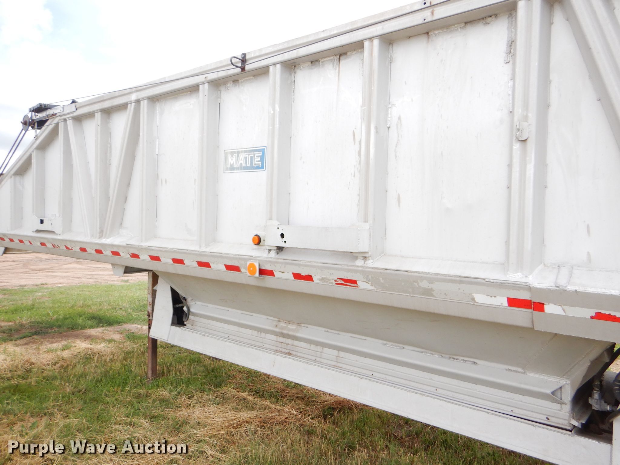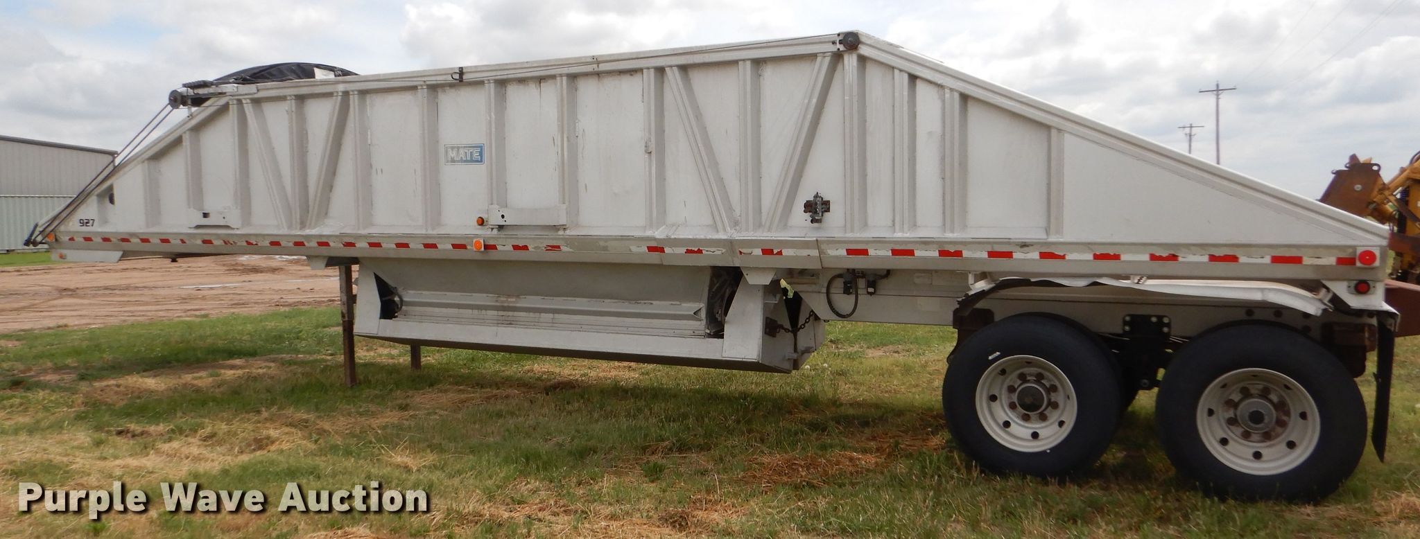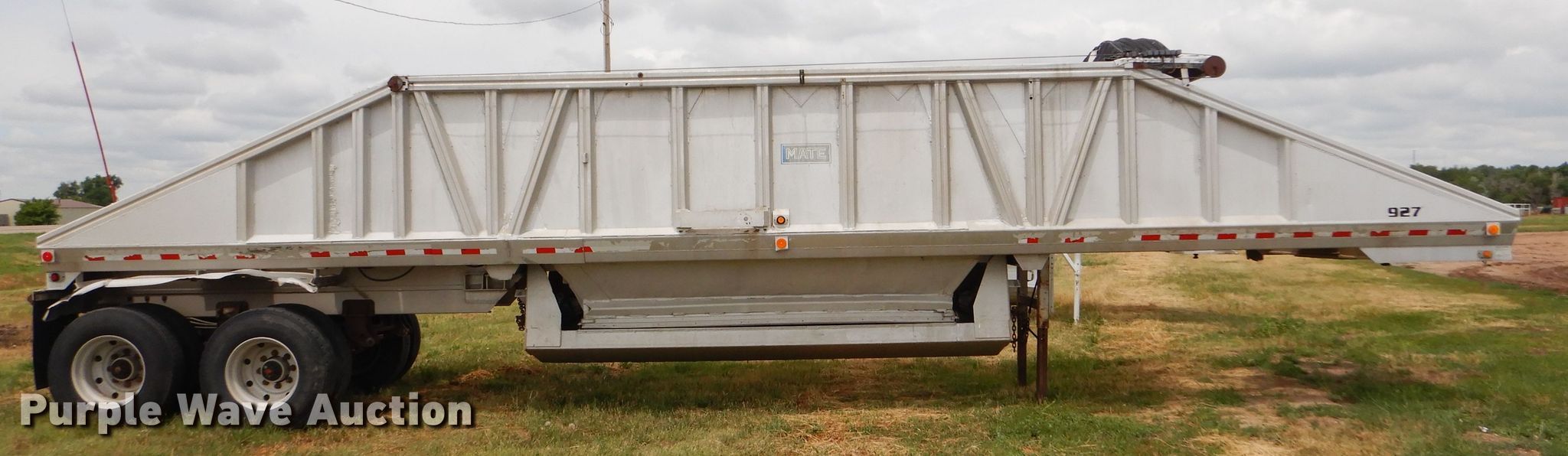 Purple Wave is selling a used Bottom Dump Trailer in Kansas. This item is a 1989 Mate bottom dump trailer with the following: 38'L x 96"W, Aluminum construction, Double hydraulic cylinders, Trailer controls, Roll tarp, Rear push block, Dual leg landing gear, Spring suspension, Air brakes, Tandem axles, Aluminum wheels, 11R22.5 tires, GVWR 34,000 lbs, Unit# 927