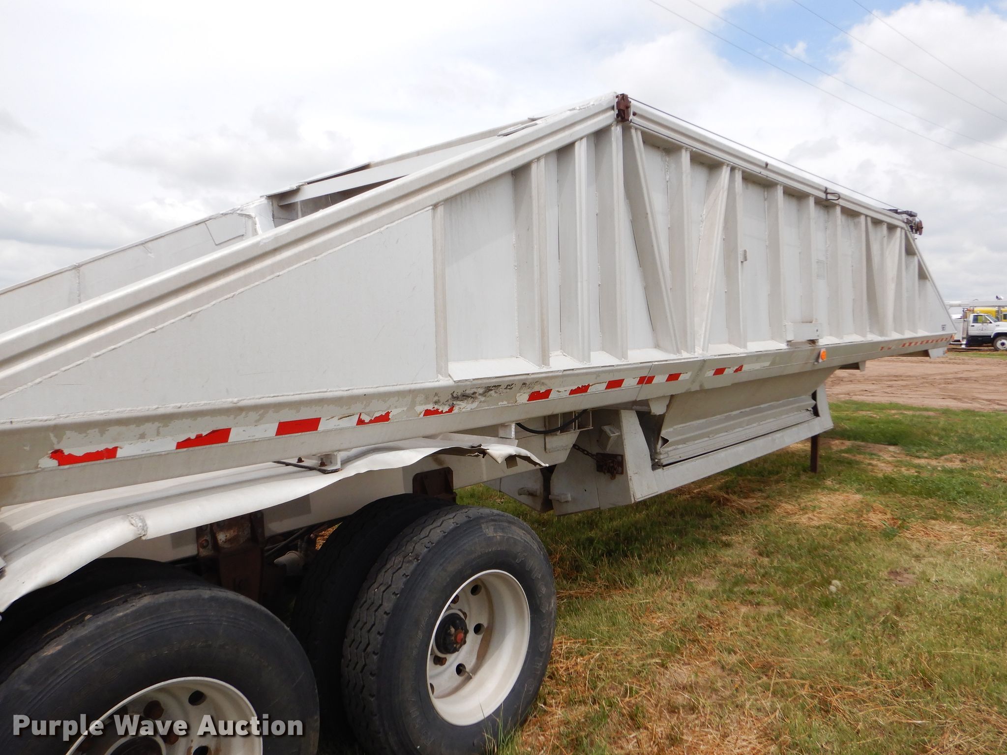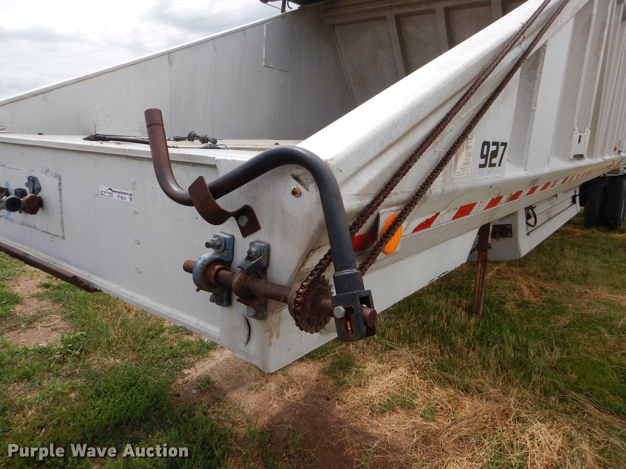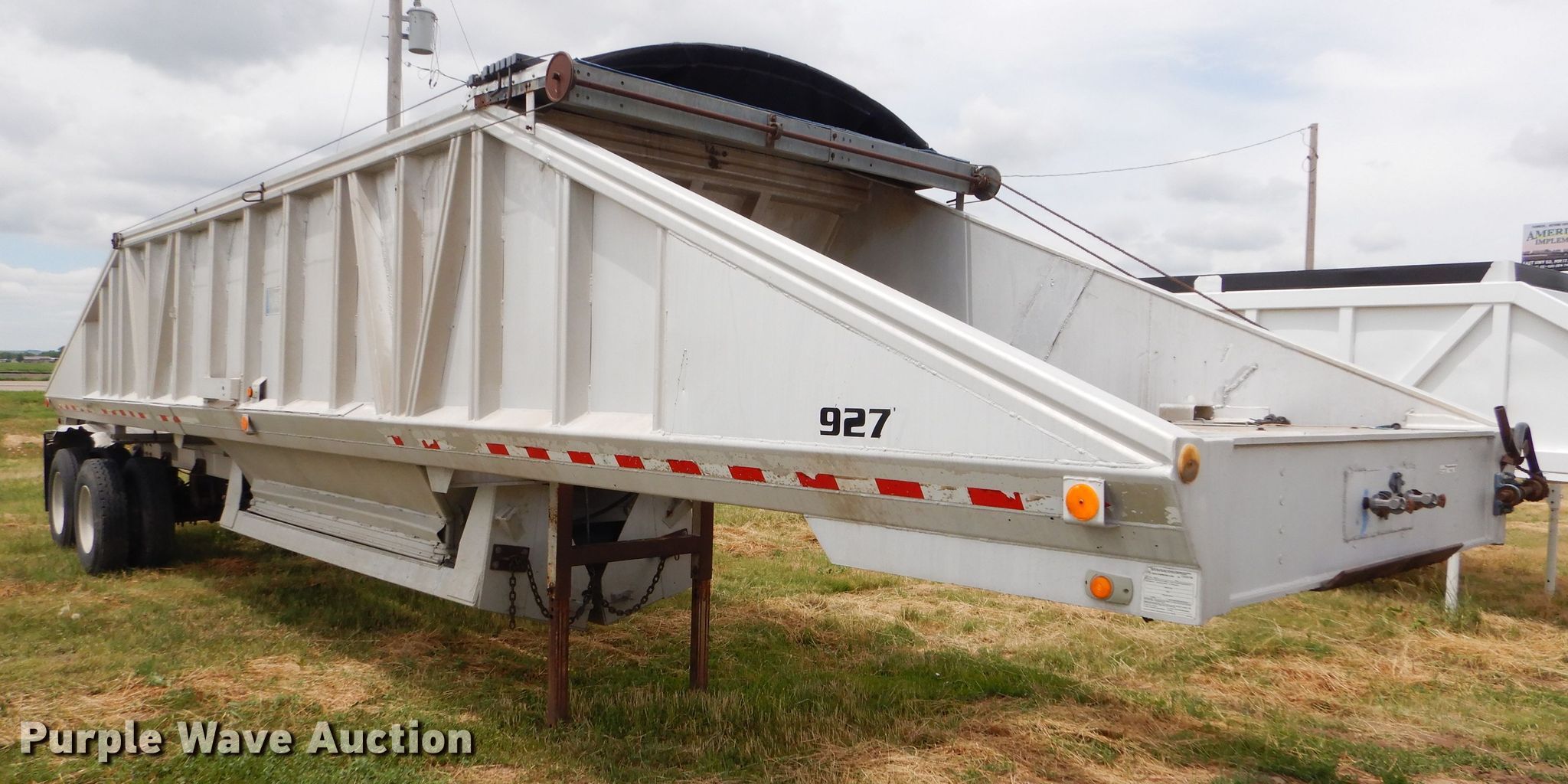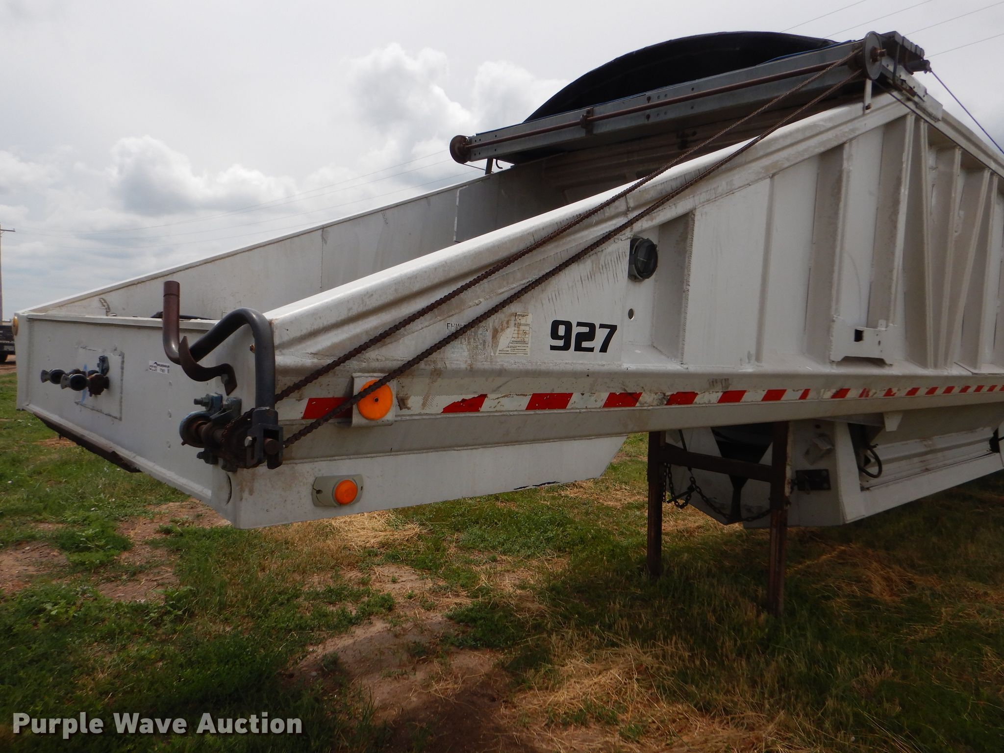Purple Wave is selling a used Bottom Dump Trailer in Kansas. This item is a 1989 Mate bottom dump trailer with the following: 38'L x 96"W, Aluminum construction, Double hydraulic cylinders, Trailer controls, Roll tarp, Rear push block, Dual leg landing gear, Spring suspension, Air brakes, Tandem axles, Aluminum wheels, 11R22.5 tires, GVWR 34,000 lbs, Unit# 927