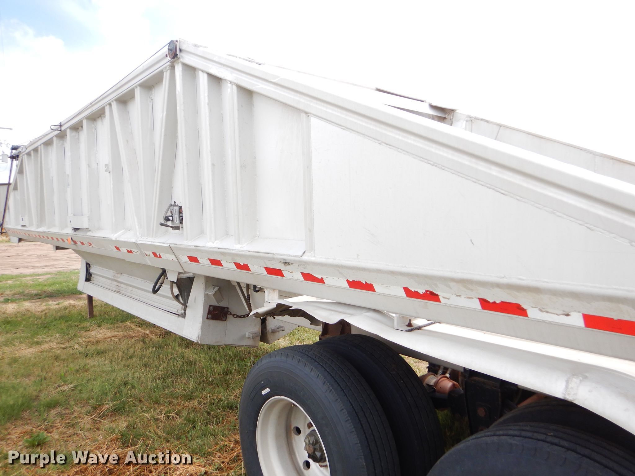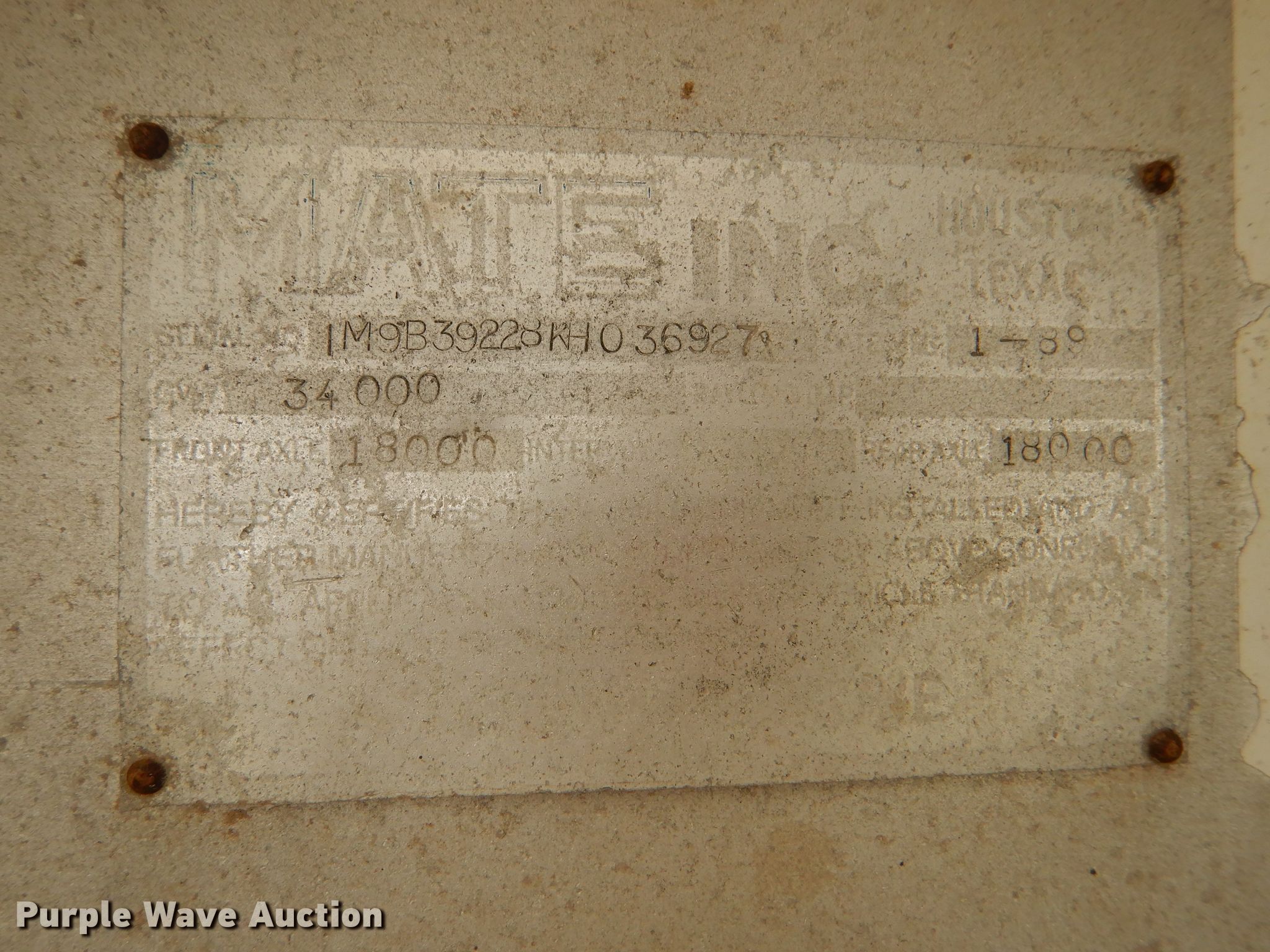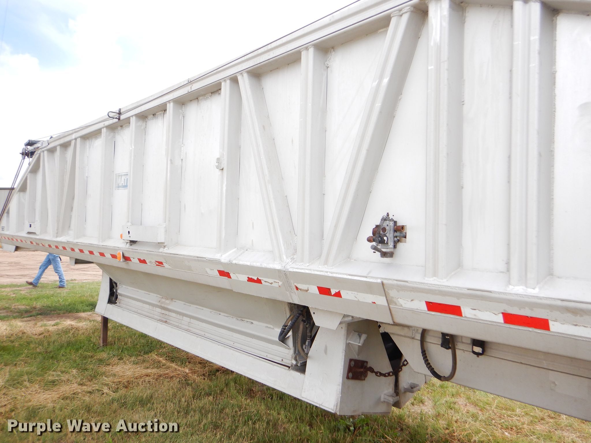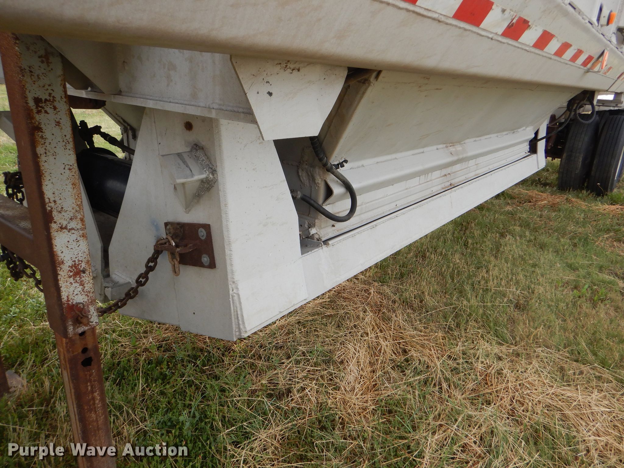 Purple Wave is selling a used Bottom Dump Trailer in Kansas. This item is a 1989 Mate bottom dump trailer with the following: 38'L x 96"W, Aluminum construction, Double hydraulic cylinders, Trailer controls, Roll tarp, Rear push block, Dual leg landing gear, Spring suspension, Air brakes, Tandem axles, Aluminum wheels, 11R22.5 tires, GVWR 34,000 lbs, Unit# 927