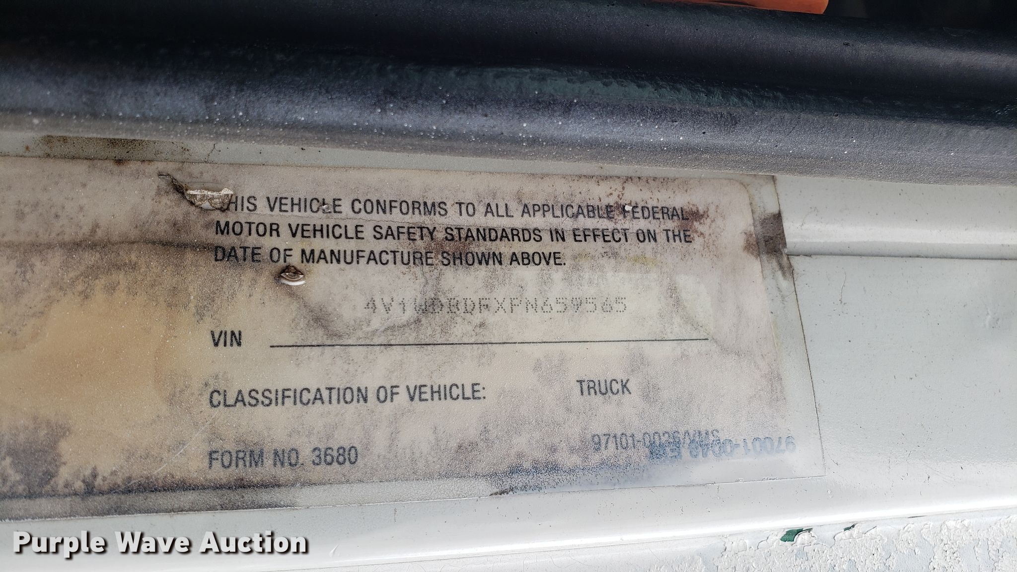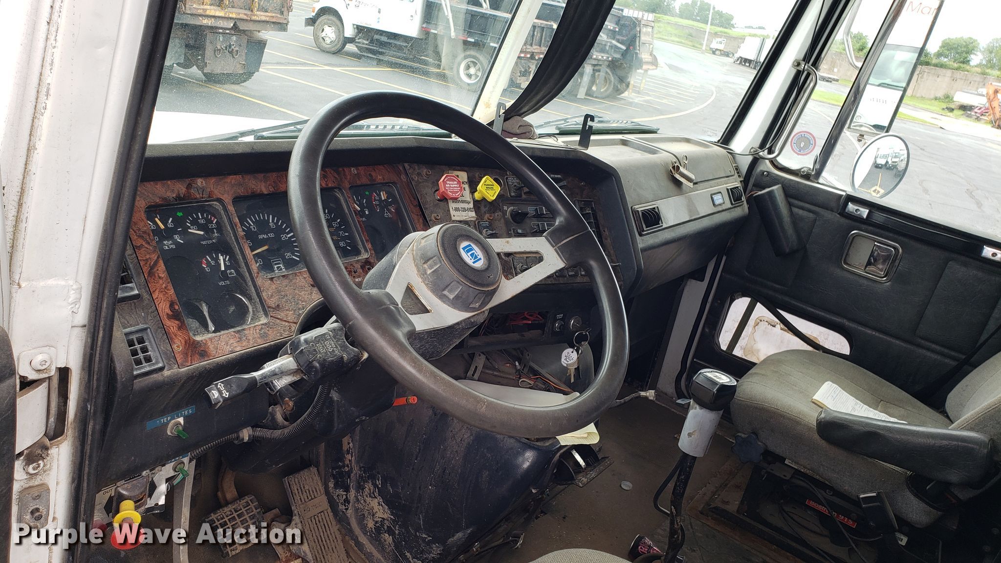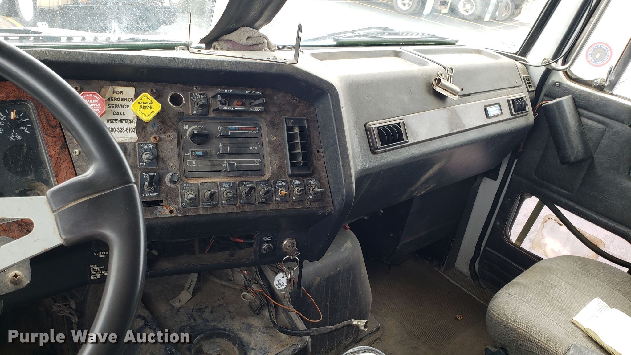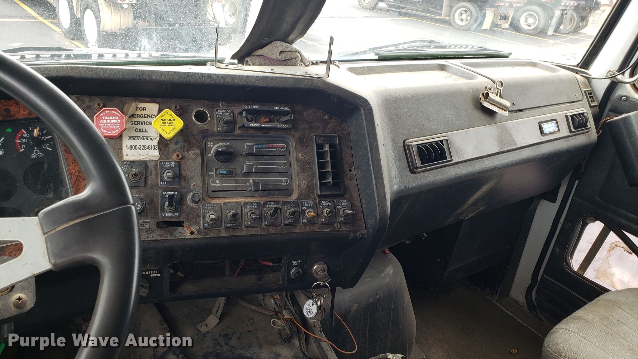 Purple Wave is selling a used Box Truck in Missouri. This item is a 1993 White GMC WCM box truck with the following: 64 miles on odometer, Actual mileage unknown, Caterpillar 3176 10.3L L6 diesel engine, Eaton Fuller manual transmission, Tandem axle, Heat, Sleeper, 32"L, 26.5'L x 100"W box bed, 97"H, Wood floor, Air brakes, Air suspension, 295/75R22.5 front tires, 275/80R22.5 rear tires, GVWR 50,000 lbs, Contents not included, Unit# 9306