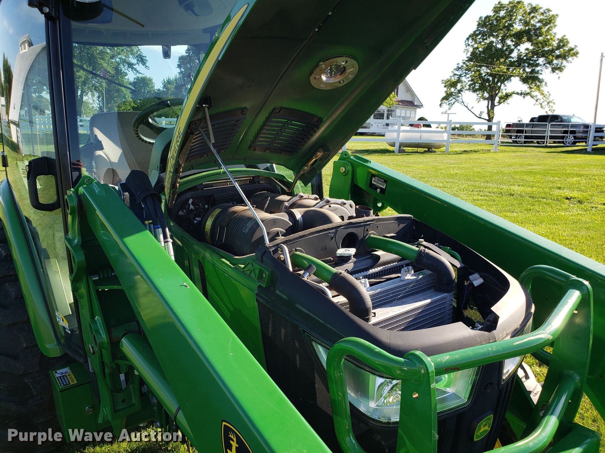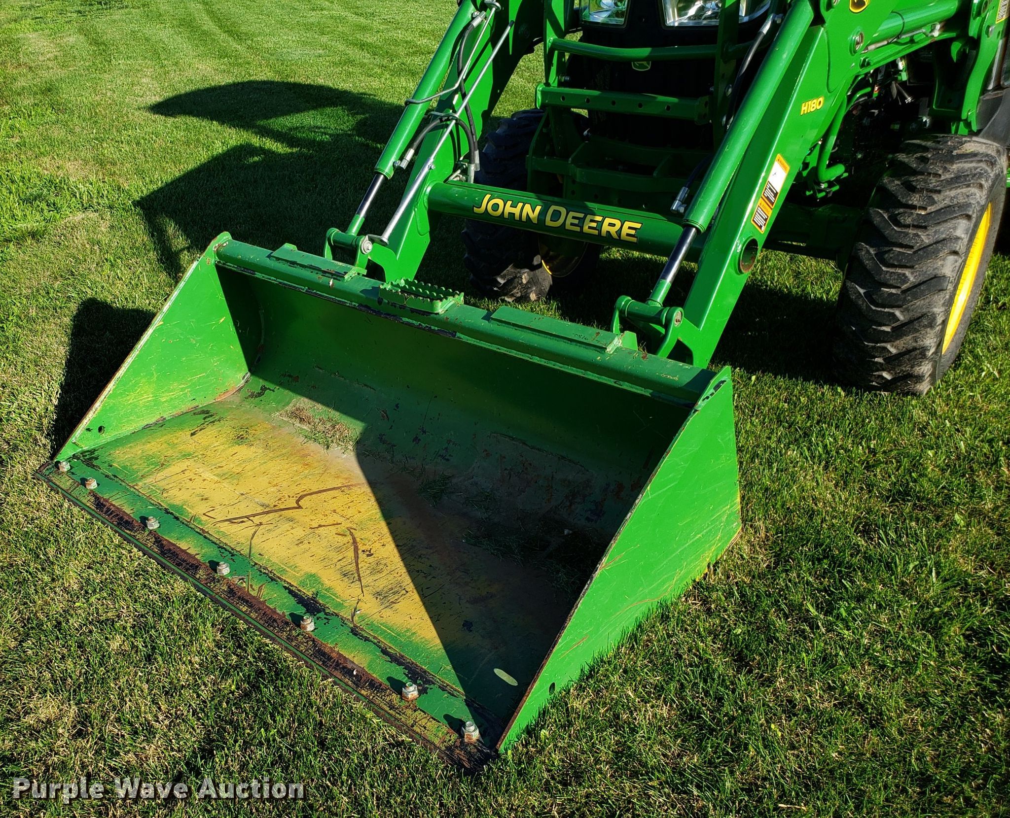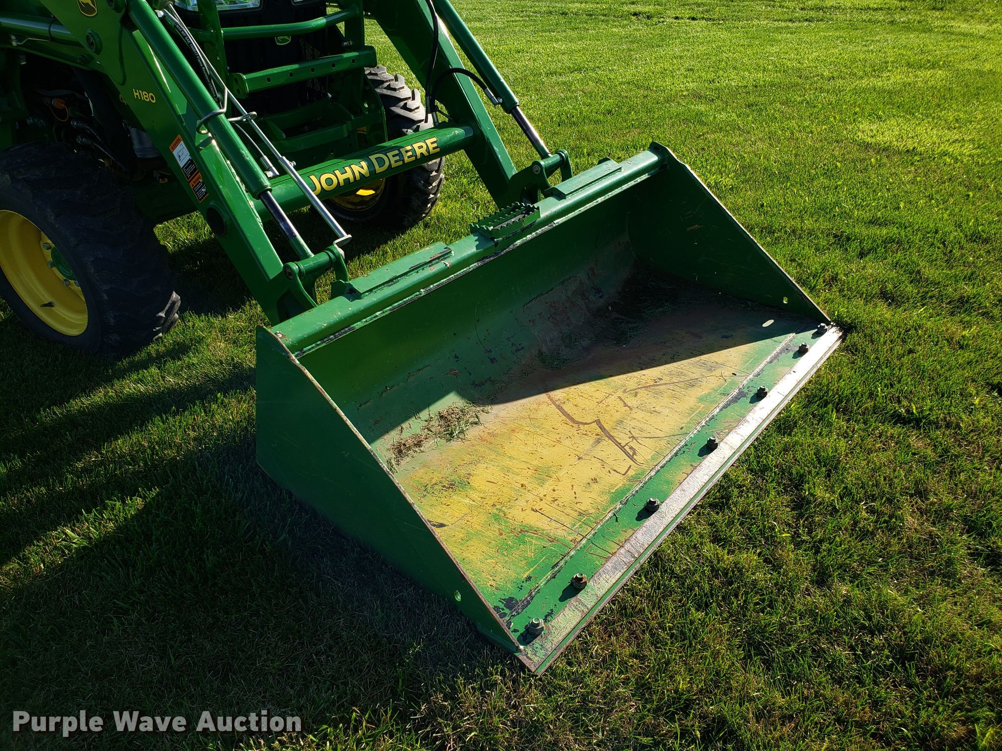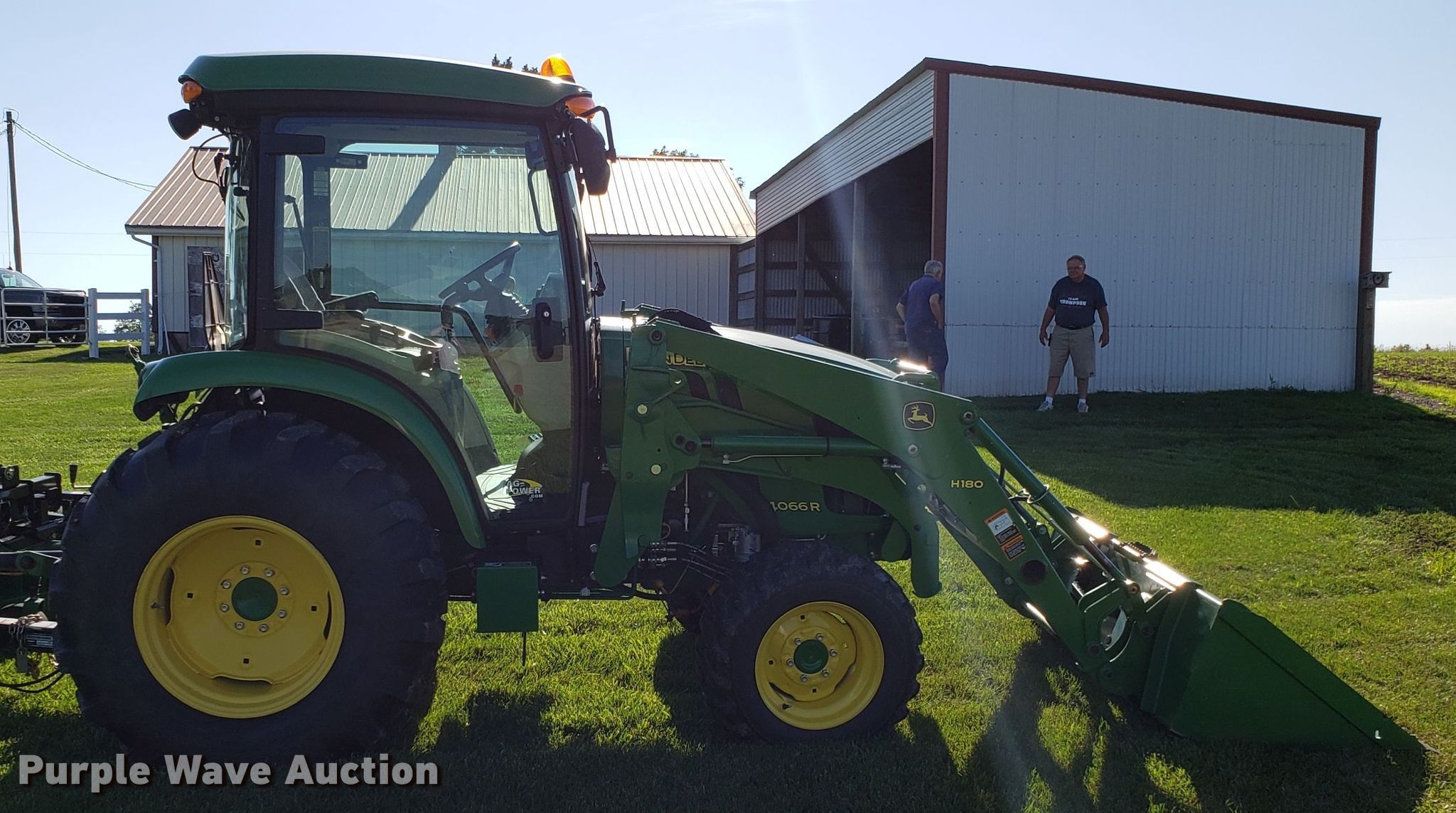 Purple Wave is selling a used Tractor in Missouri. This item is a 2015 John Deere 4066R MFWD tractor with the following: 547 hours on meter, John Deere three cylinder diesel engine, Hydrostatic transmission, Differential lock, AC and heat, AM/FM, John Deere H180 loader, 66"W bucket, Quick attach, Skid steer quick attach, Joystick controls, Serial 1P0H180XEED002038, Three point, Top link, 540 PTO, (3) front hydraulic remote sets, Rear hydraulic remote set, Hitch assist, Auxiliary hitch control, 10x16.5 front tires, 16.9x24 rear tires, Tires have liquid ballast weight, Serial 1LV4066RAEH140003