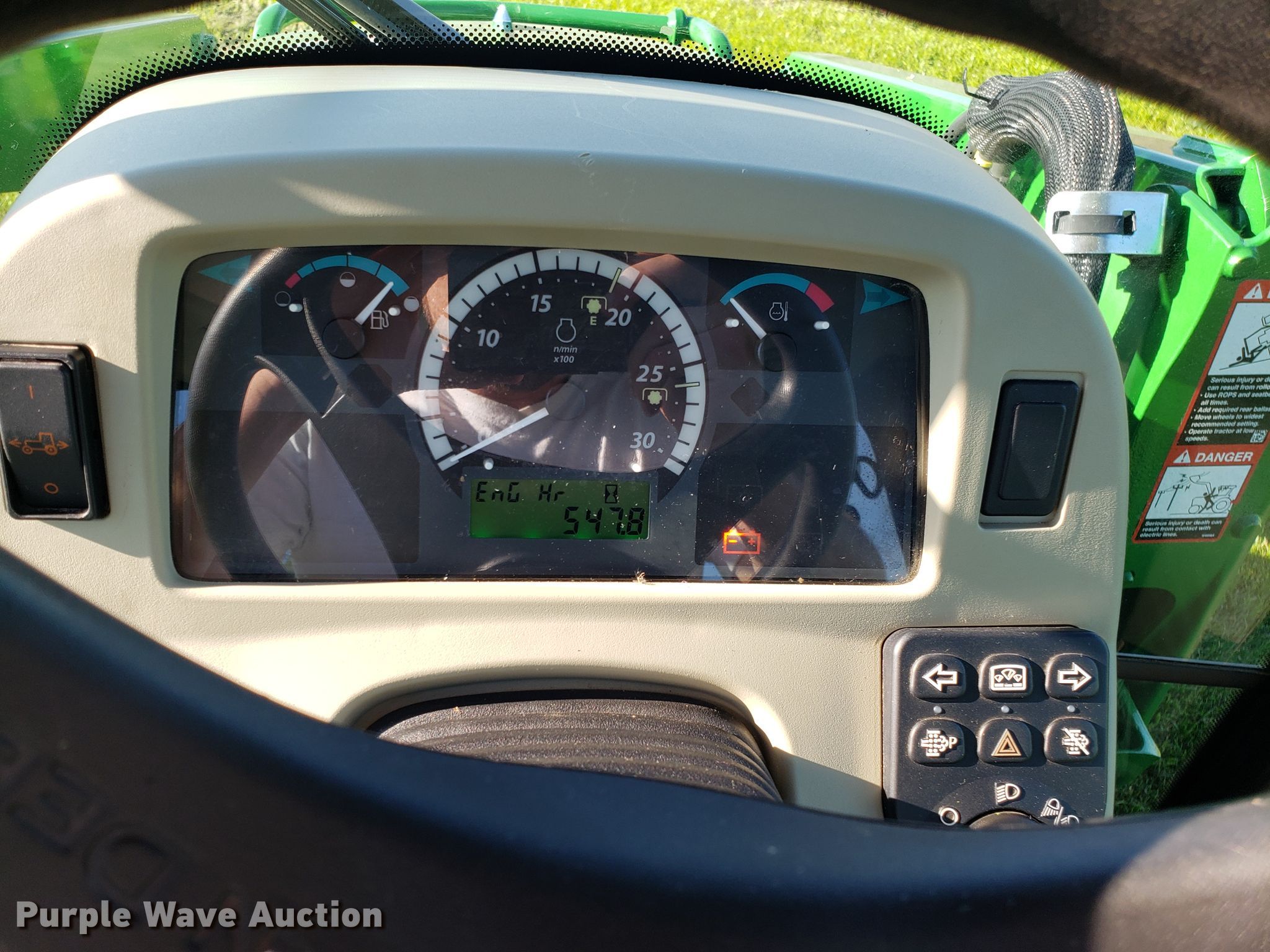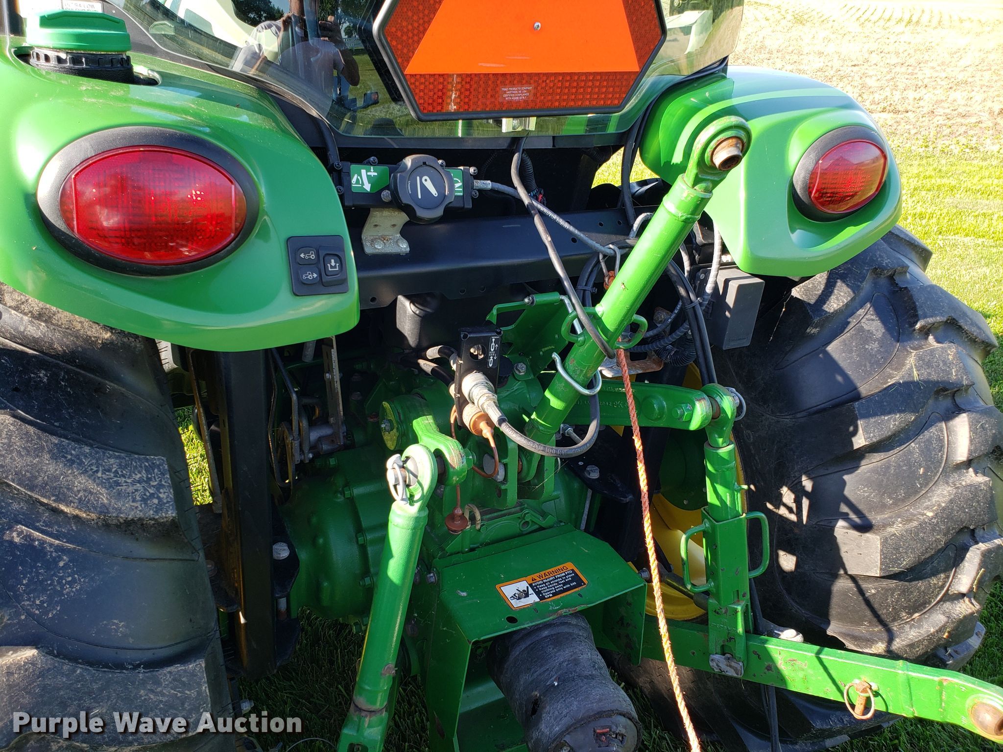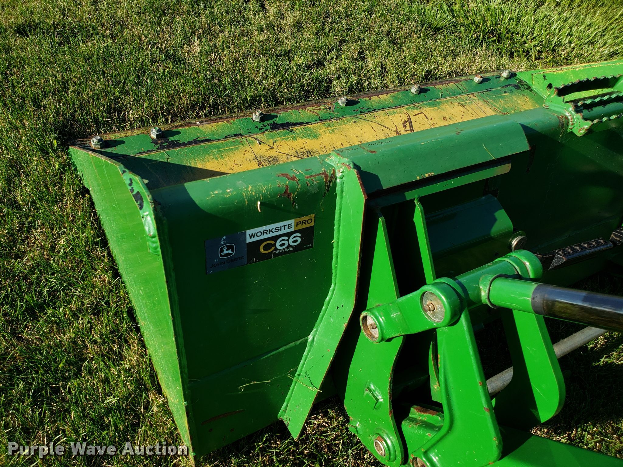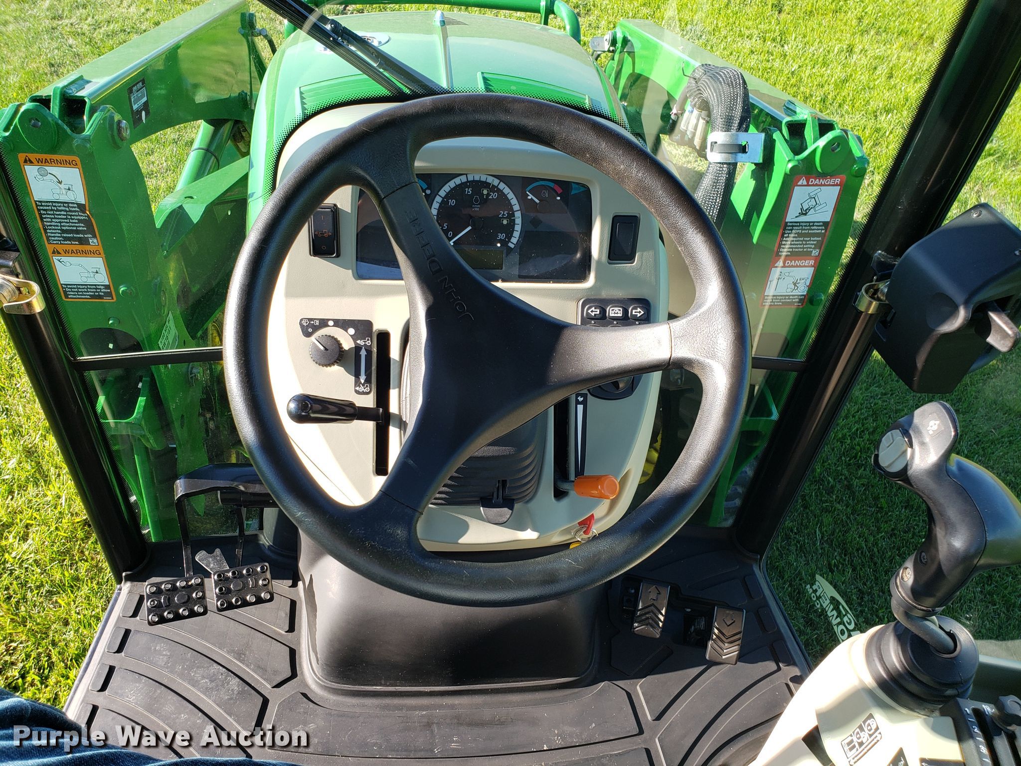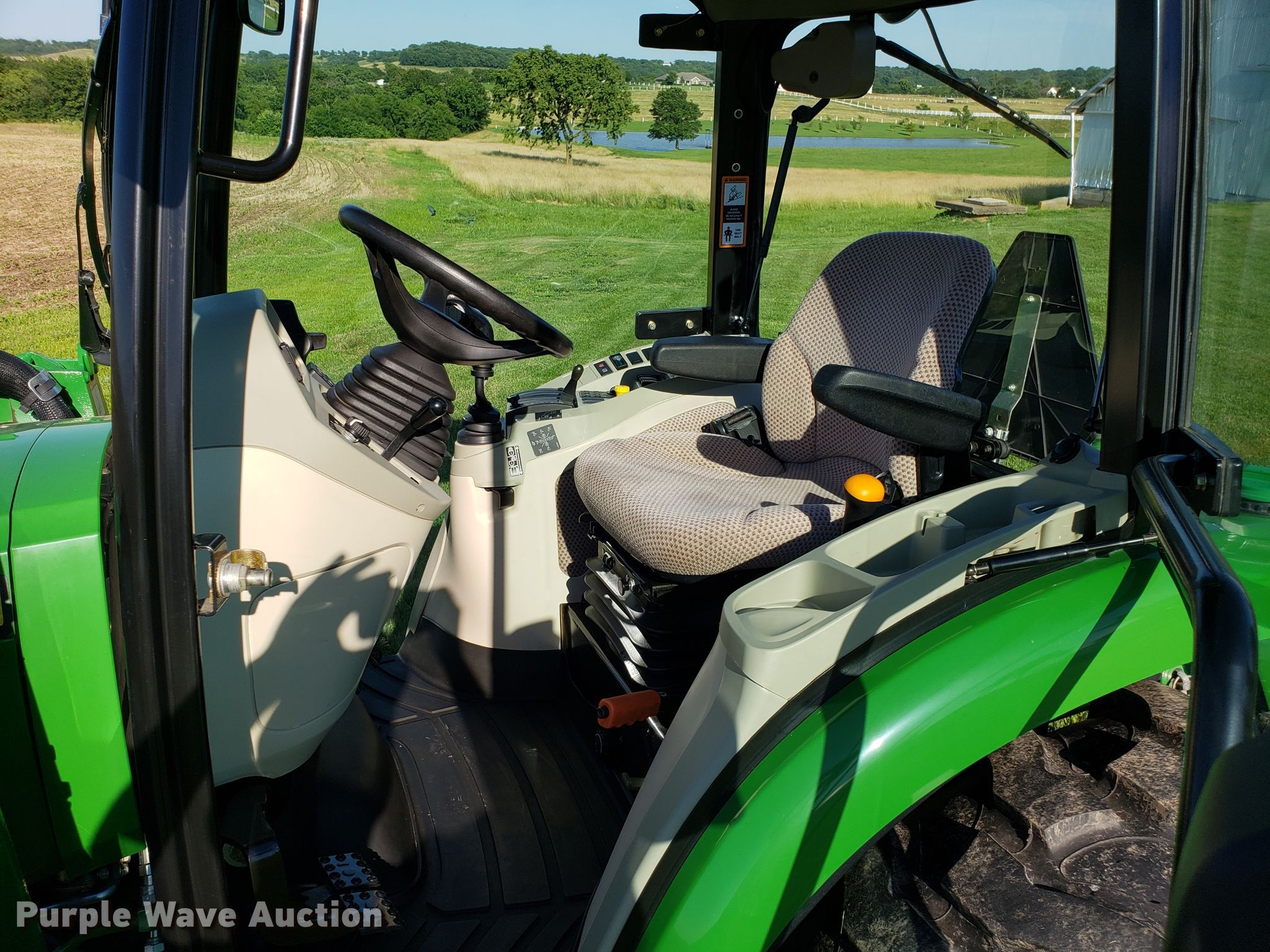 Purple Wave is selling a used Tractor in Missouri. This item is a 2015 John Deere 4066R MFWD tractor with the following: 547 hours on meter, John Deere three cylinder diesel engine, Hydrostatic transmission, Differential lock, AC and heat, AM/FM, John Deere H180 loader, 66"W bucket, Quick attach, Skid steer quick attach, Joystick controls, Serial 1P0H180XEED002038, Three point, Top link, 540 PTO, (3) front hydraulic remote sets, Rear hydraulic remote set, Hitch assist, Auxiliary hitch control, 10x16.5 front tires, 16.9x24 rear tires, Tires have liquid ballast weight, Serial 1LV4066RAEH140003