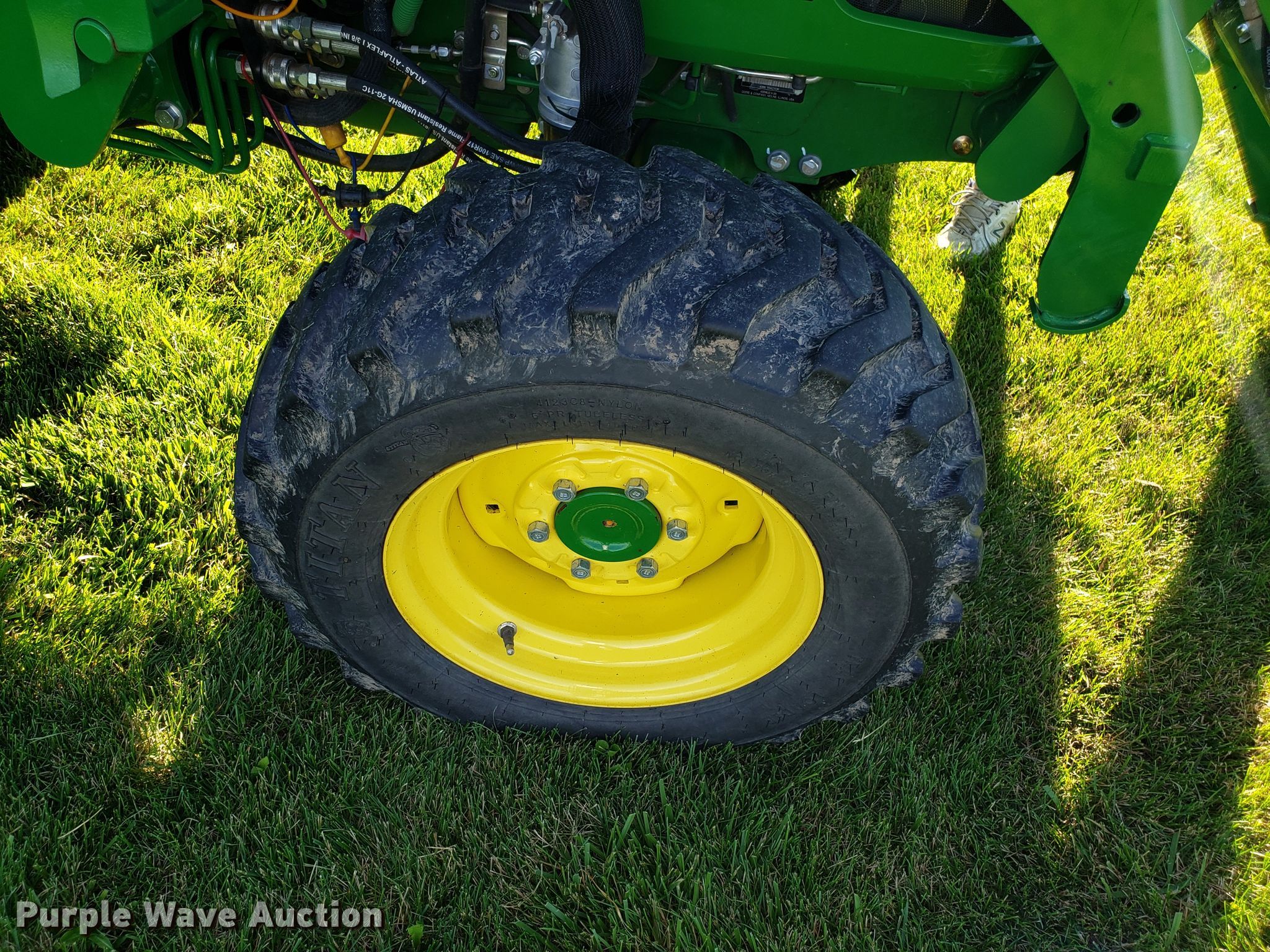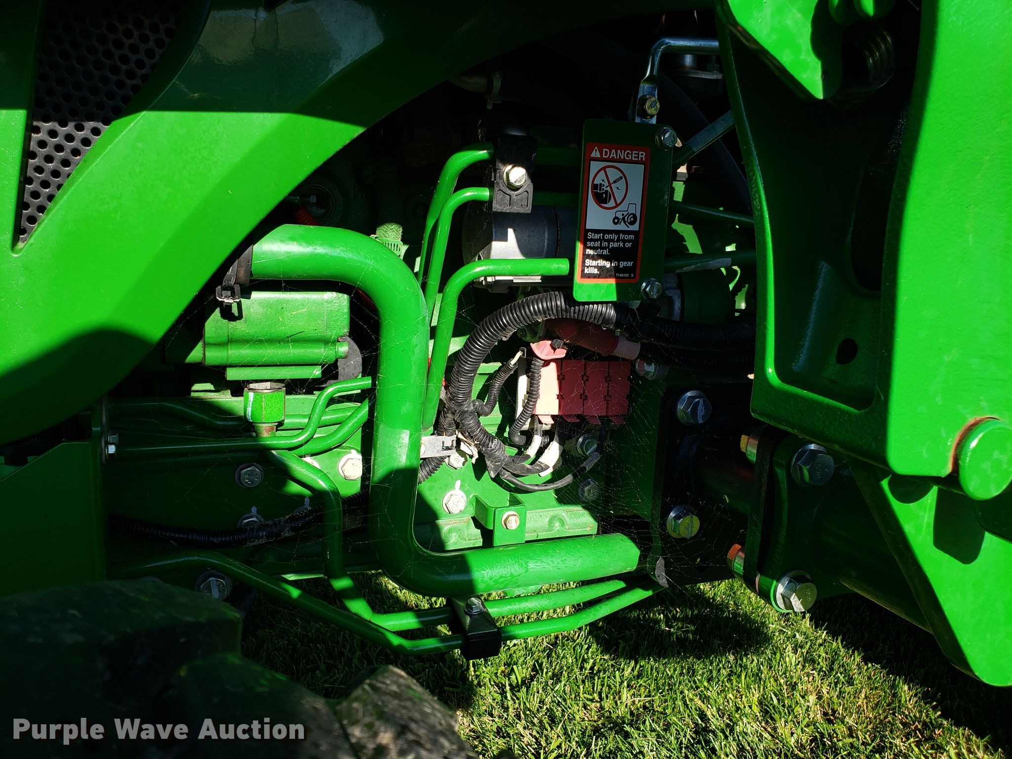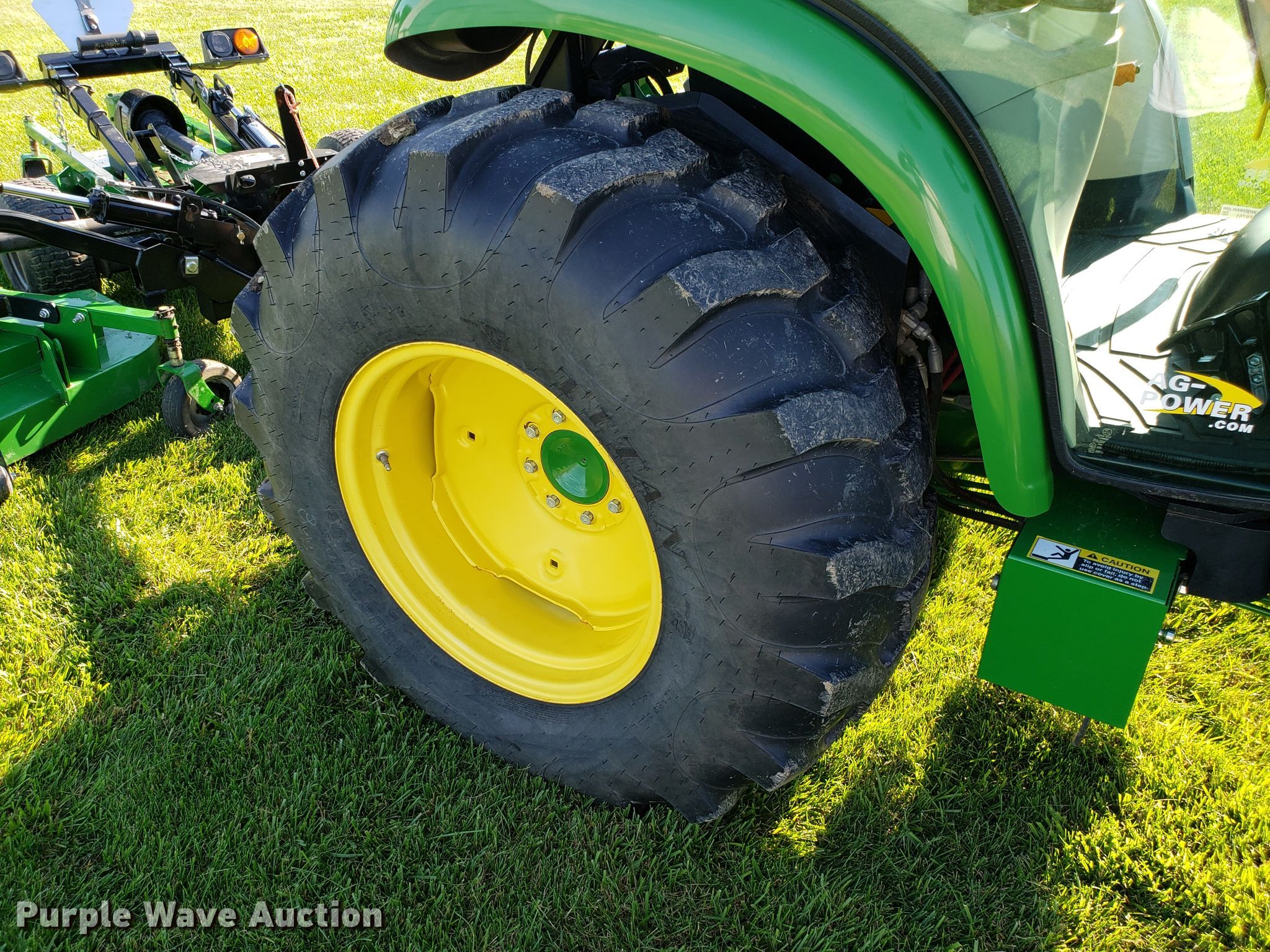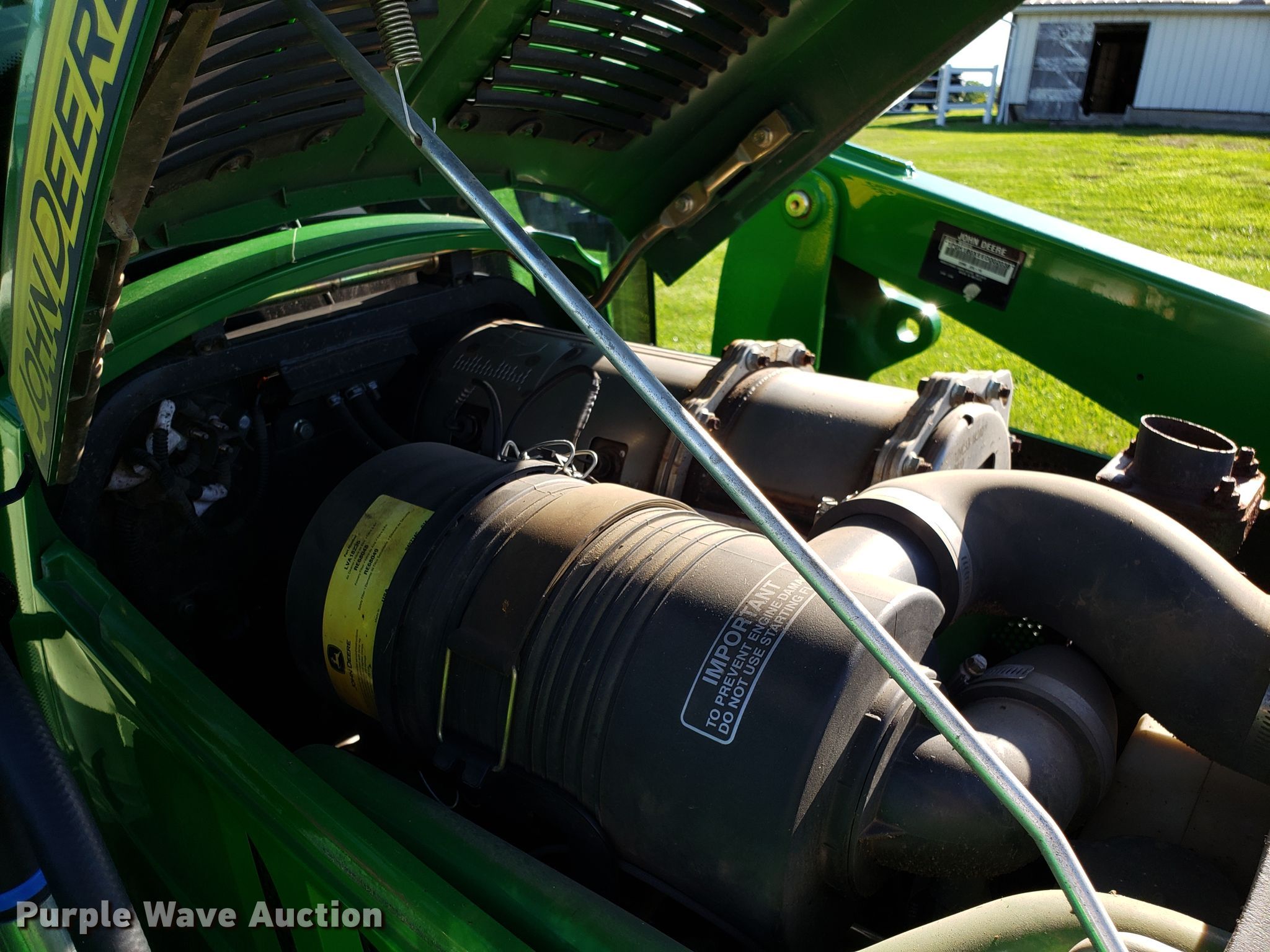 Purple Wave is selling a used Tractor in Missouri. This item is a 2015 John Deere 4066R MFWD tractor with the following: 547 hours on meter, John Deere three cylinder diesel engine, Hydrostatic transmission, Differential lock, AC and heat, AM/FM, John Deere H180 loader, 66"W bucket, Quick attach, Skid steer quick attach, Joystick controls, Serial 1P0H180XEED002038, Three point, Top link, 540 PTO, (3) front hydraulic remote sets, Rear hydraulic remote set, Hitch assist, Auxiliary hitch control, 10x16.5 front tires, 16.9x24 rear tires, Tires have liquid ballast weight, Serial 1LV4066RAEH140003