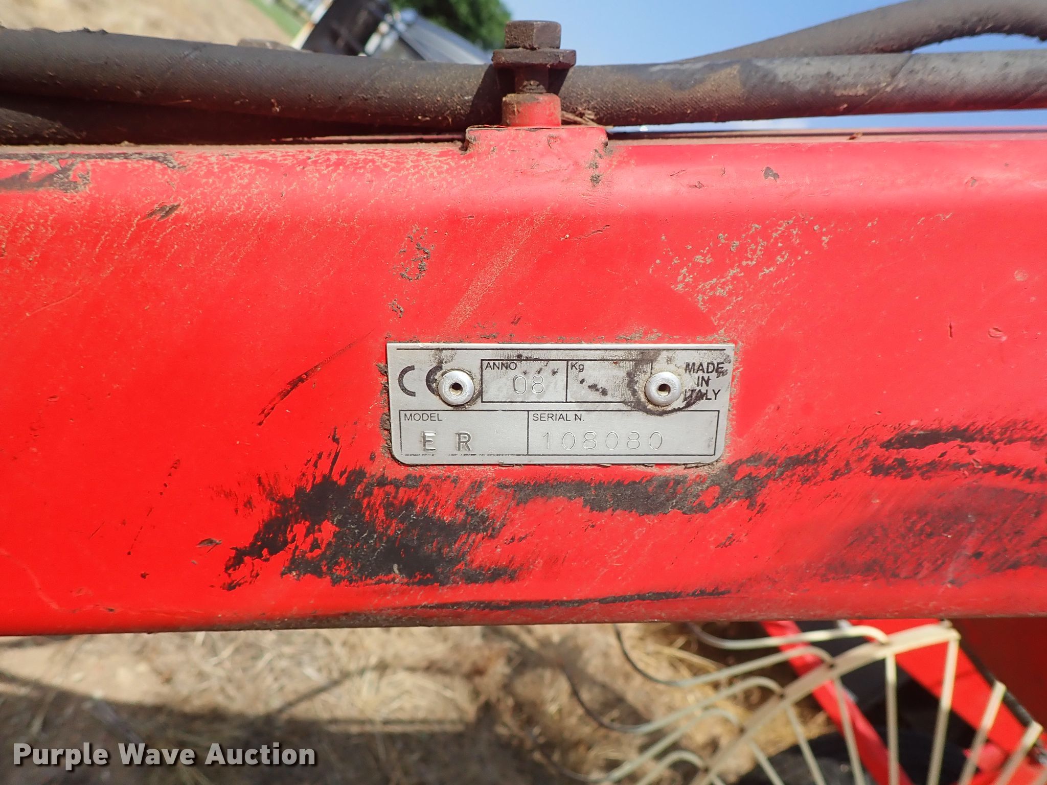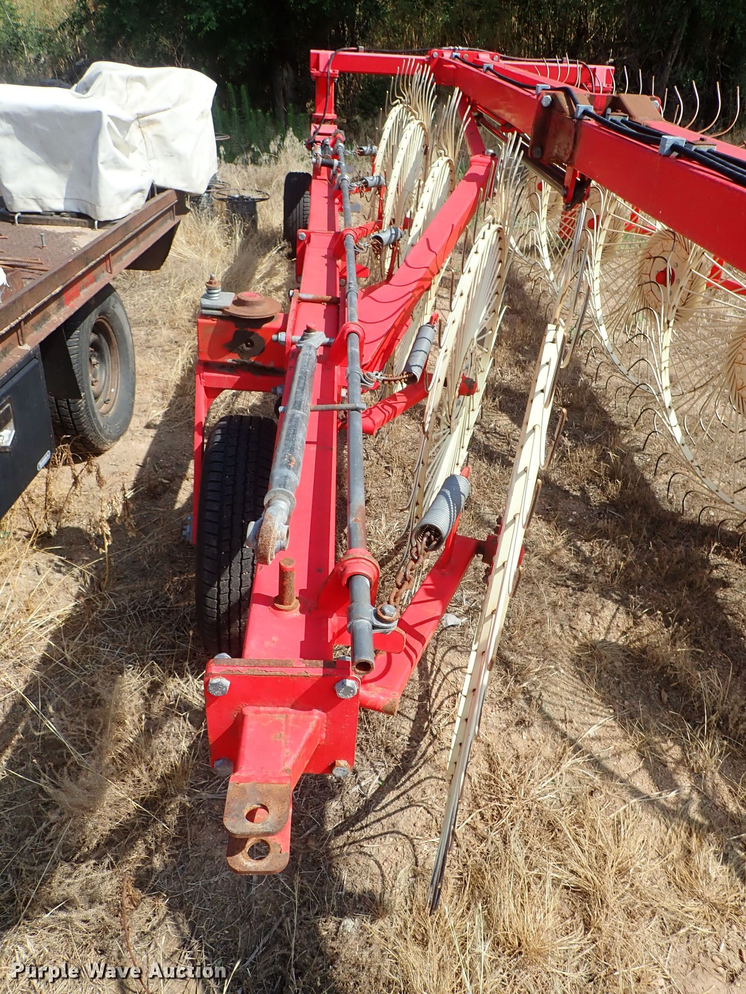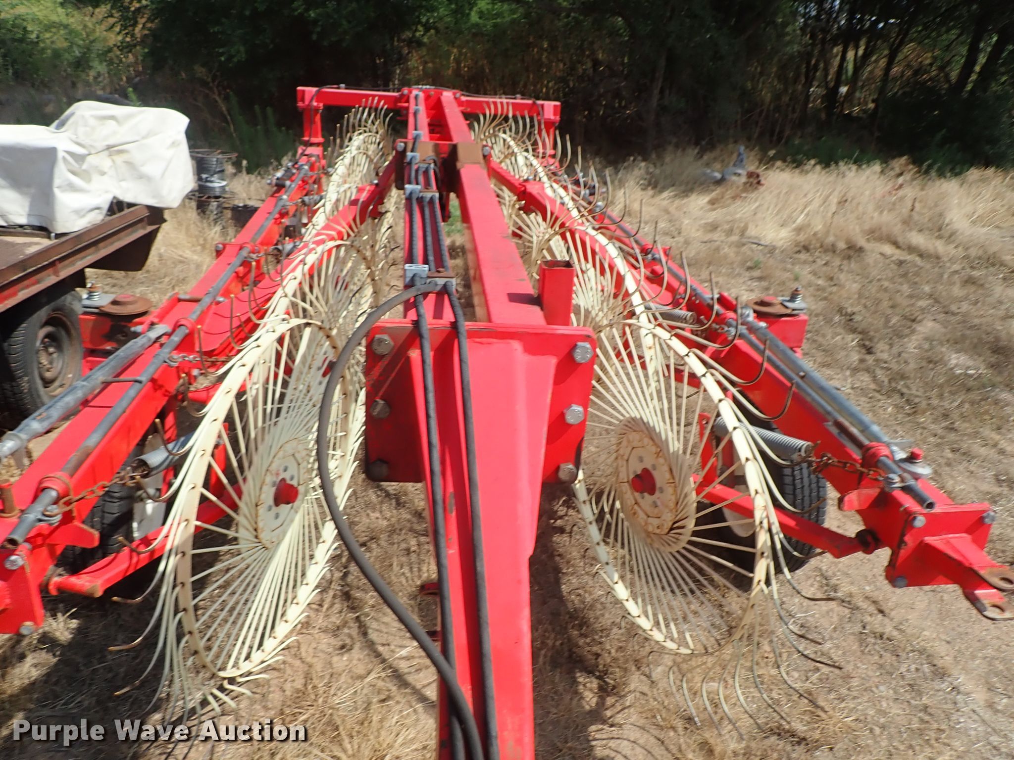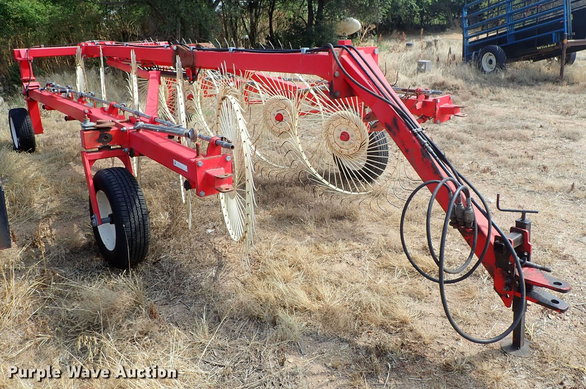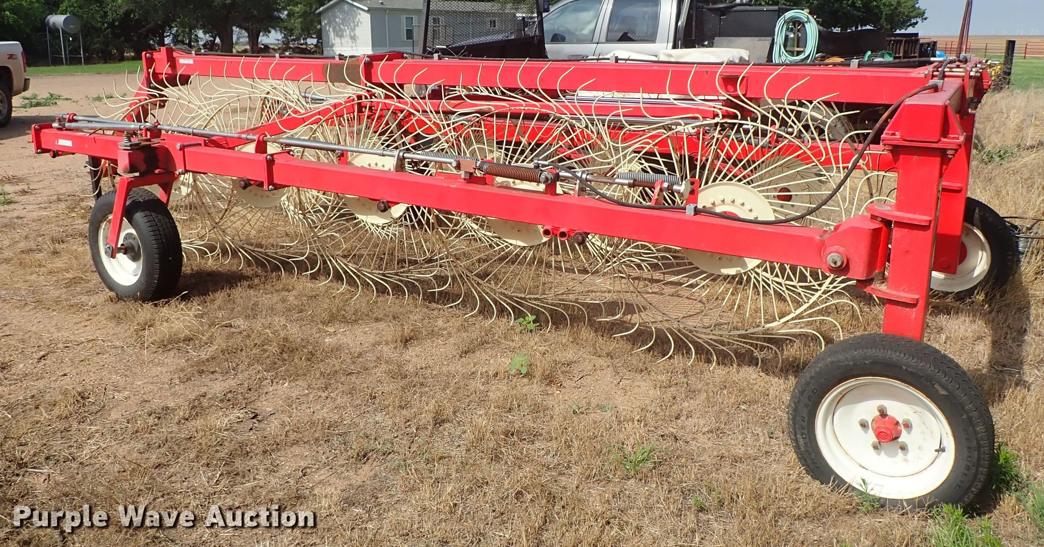 Purple Wave is selling a used Hay Rake in Kansas. This item is a Sitrex ER hay rake with the following: (10) wheels, Hydraulic lift and fold, Pin hitch, 195/65R15 tires, Serial 108080
