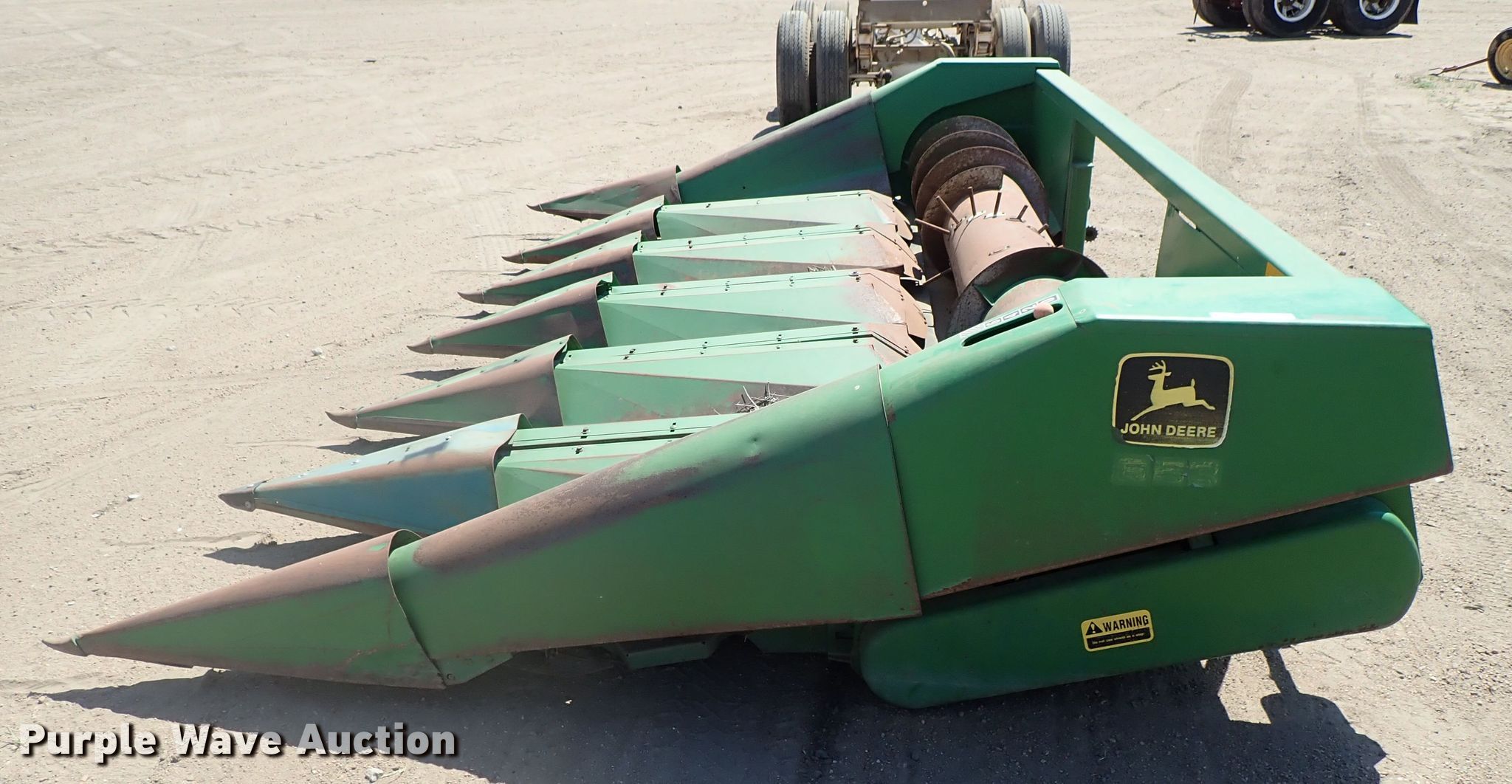 Purple Wave is selling a used Corn or Row Head in Kansas. This item is a John Deere 653 all-crop head with the following: Approx. 15'W, Six rows