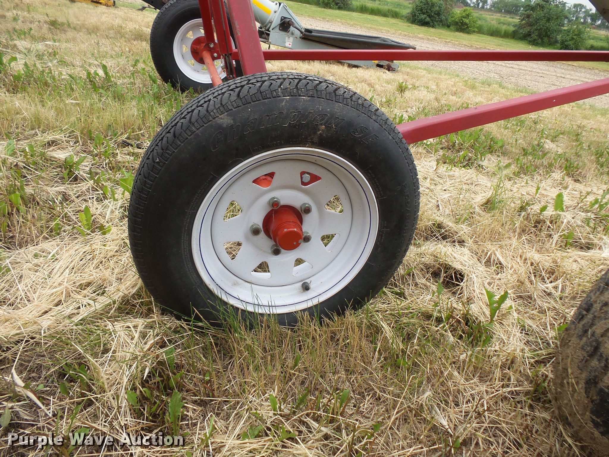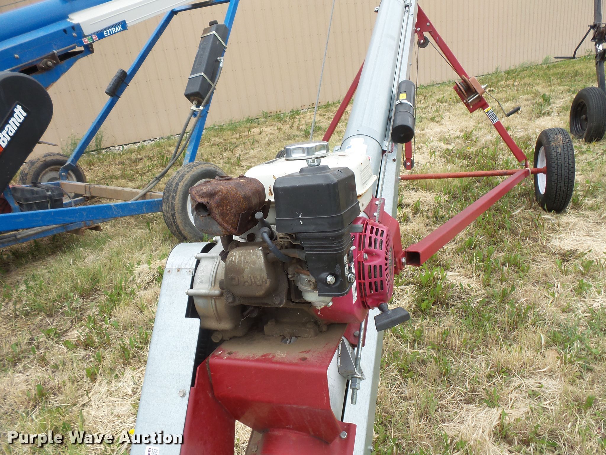 KSI 080632 conveyor. 32'L , 24" hopper, Honda 6.5 single cylinder gas engine, 185/80R13 tires. Plainview Hutterian Colony. 12465 359th Ave. Leola, SD 57456