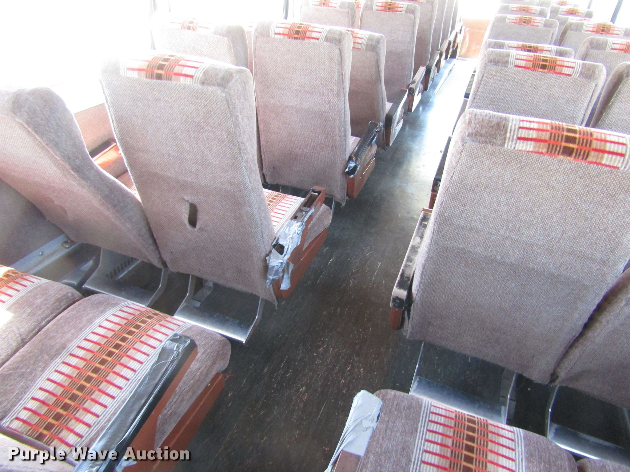 Purple Wave is selling a used Bus in Kansas. This item is a 1981 TMC Crusader II coach bus with the following: 195,413 miles on odometer, Detroit Diesel 9.0L V6 diesel engine, Automatic transmission, Single axle, Tag lift axle, AC and heat, 49 passenger capacity, Air suspension, Air brakes, 12R22.5 tires, GVWR 36,500 lbs, AC needs charged, Cracked side glass, Decals will be painted over prior to auction