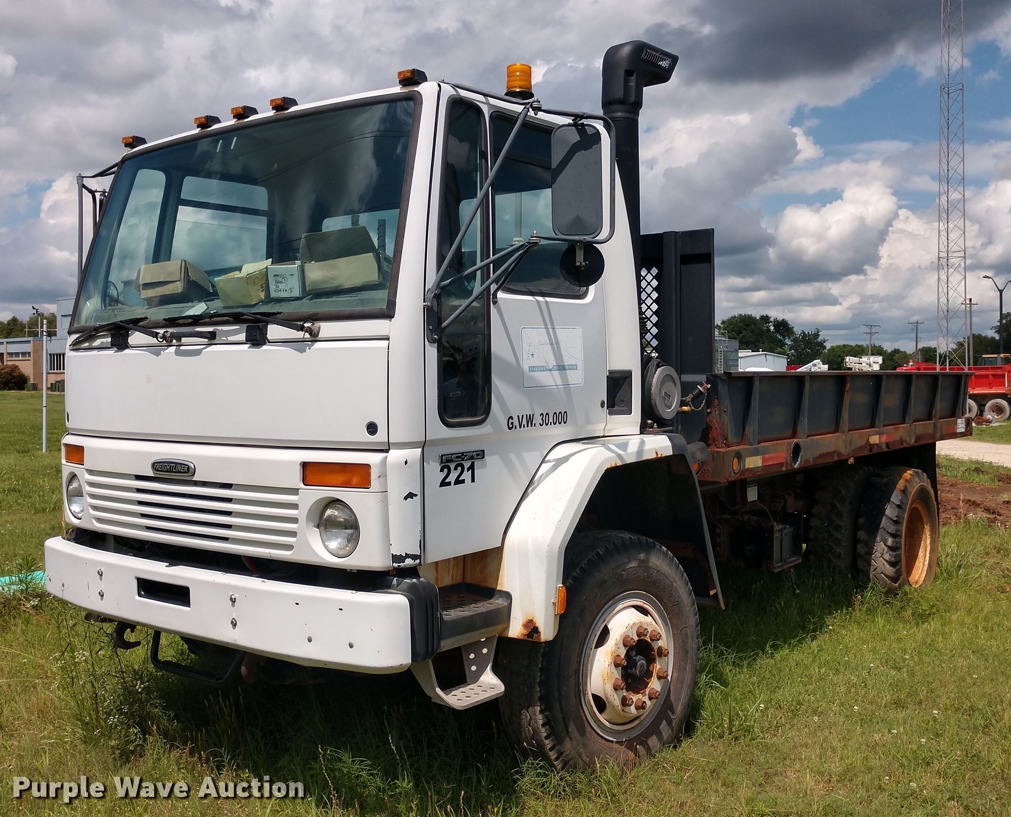 Purple Wave is selling a used Flat Bed Truck in Kansas. This item is a 2000 Freightliner FC70 flatbed truck with the following: 36,407 miles on odometer, Cummins ISB 5.9L L6 diesel engine, Automatic transmission, Heat, 171"L x 94.5"W flatbed, 10.00R20 tires, Non-operational unit