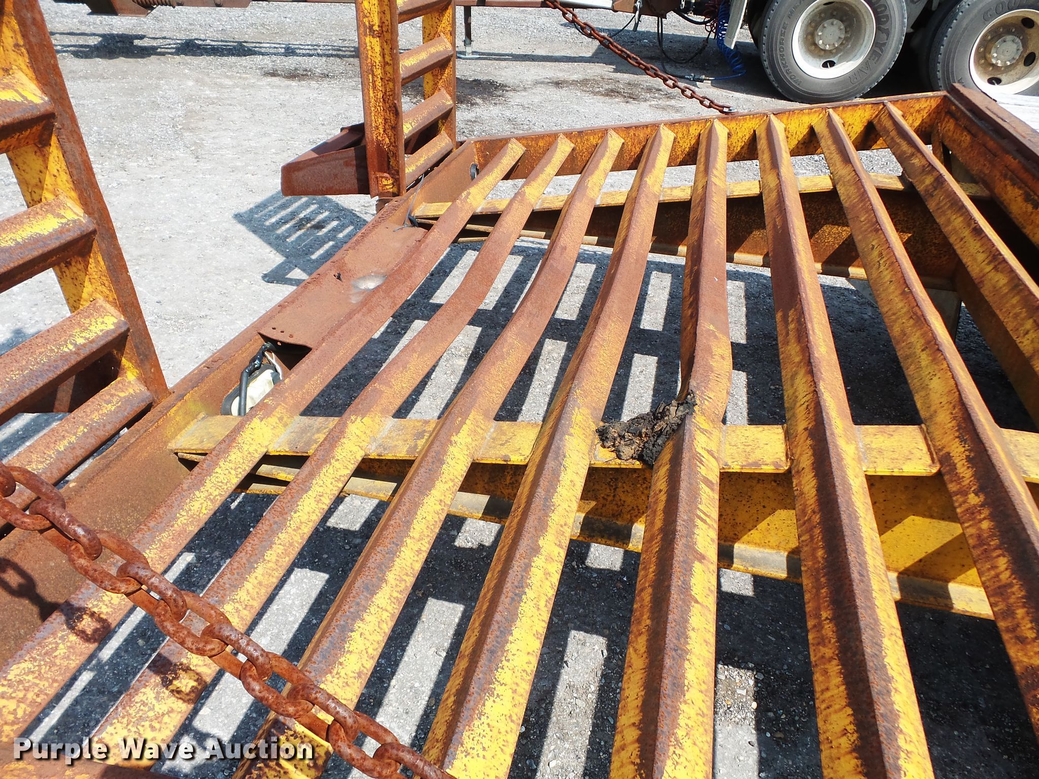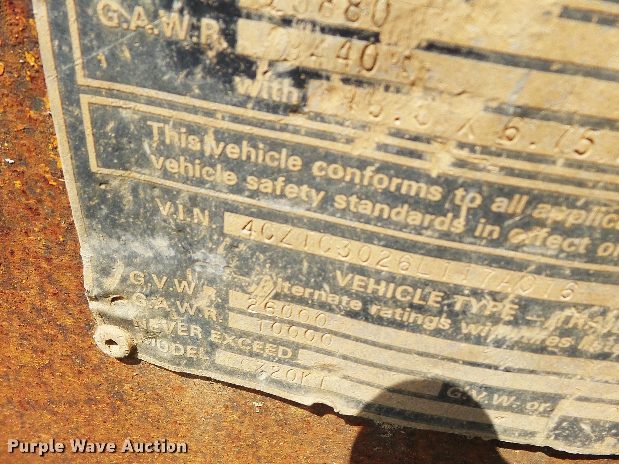 Purple Wave is selling a used Equip. Trailer in Missouri. This item is a 1990 CZ Engineering CZ720KT equipment trailer with the following: 30' overall length, 20'L x 96"W wood deck, 5' tail length, 5'L ramps, Single leg landing gear, Spring suspension, Electric brakes, Tandem axle, Steel wheels, Firestone 8.75R16.5 tires, GVWR 26,000 lbs, GAWR 10,000 lbs, Unit# 46A