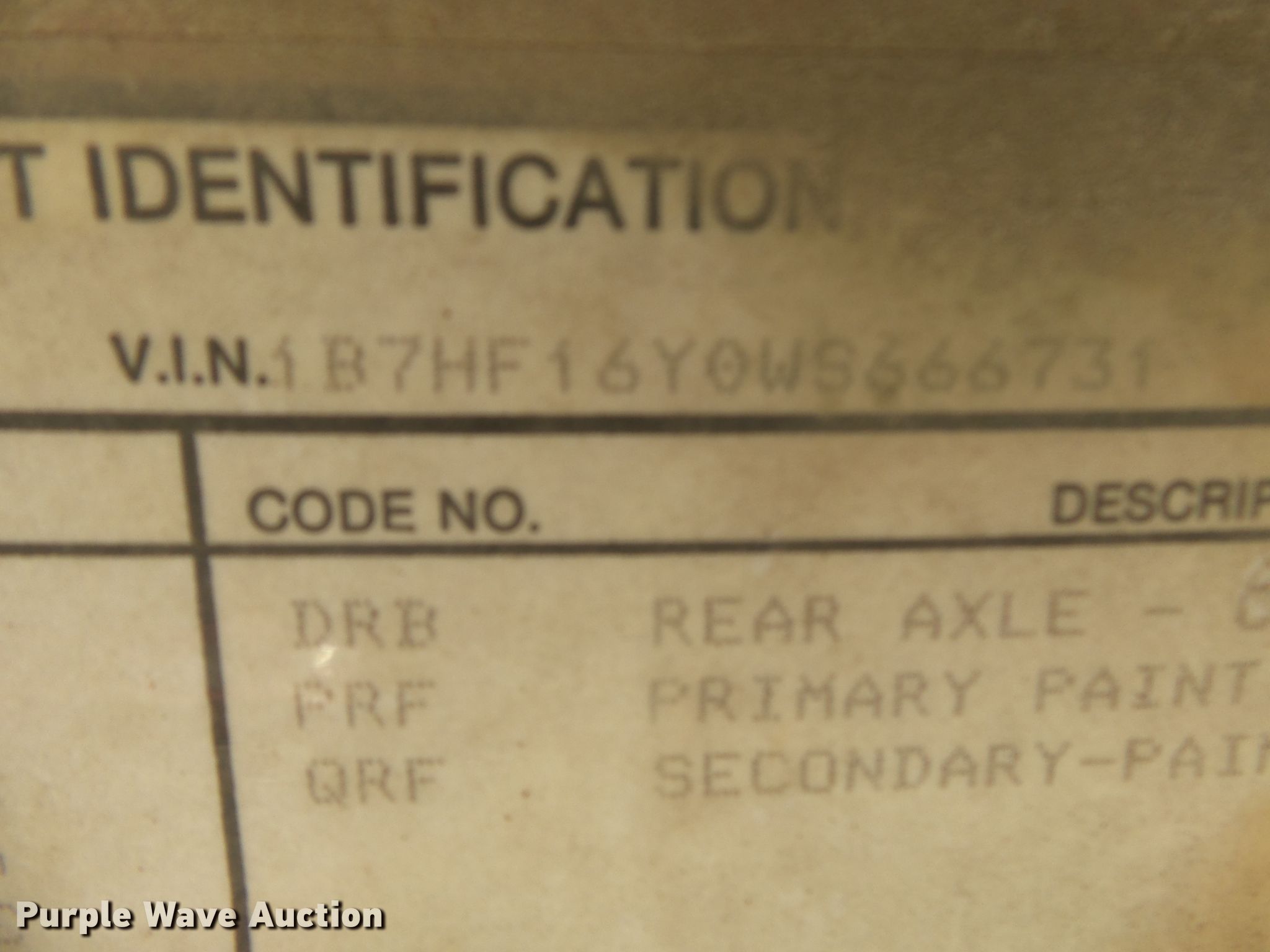Purple Wave is selling a used 1/2 Ton Pickup or Van in Missouri. This item is a 1998 Dodge Ram 1500 pickup truck with the following: 174,379 miles on odometer, 5.2L V8 OHV 16V gas engine, Automatic transmission, Four wheel drive, AC and heat, LT265/75R16 tires, Two way radio not included, Unit# 116