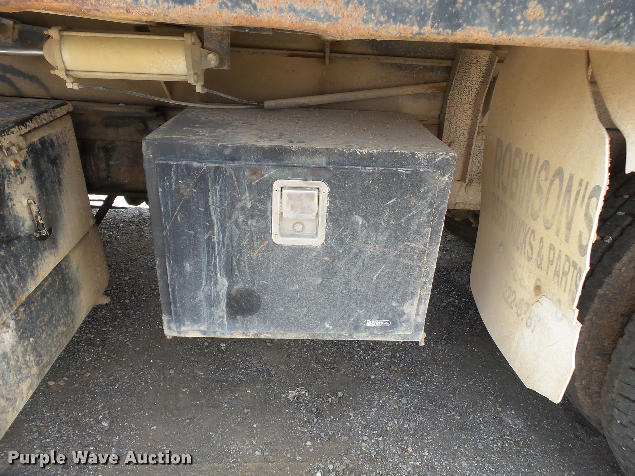 1994 Ford Aeromax L9000 dump truck. 372,022 miles on odometer, Cummins N14 14.0L L6 diesel engine, Manual transmission, Tandem axle, Inter-axle differential lock, Cruise, Heated mirrors, PTO, 15'L x 95"W steel dump bed 42" side height, Single ram hoist, Air operated end gate, 151" wheelbase, Air suspension, Air brakes, 11R22.5 tires, GVWR 48,000 lbs, FAWR 12,000 lbs, IAWR 18,000 lbs, RAWR 18,000 lbs, Unit# 4. Missouri title. 1FDYY95R2RVA32676. Butler County. 31 Butler County Road. Poplar Bluff, MO 63901