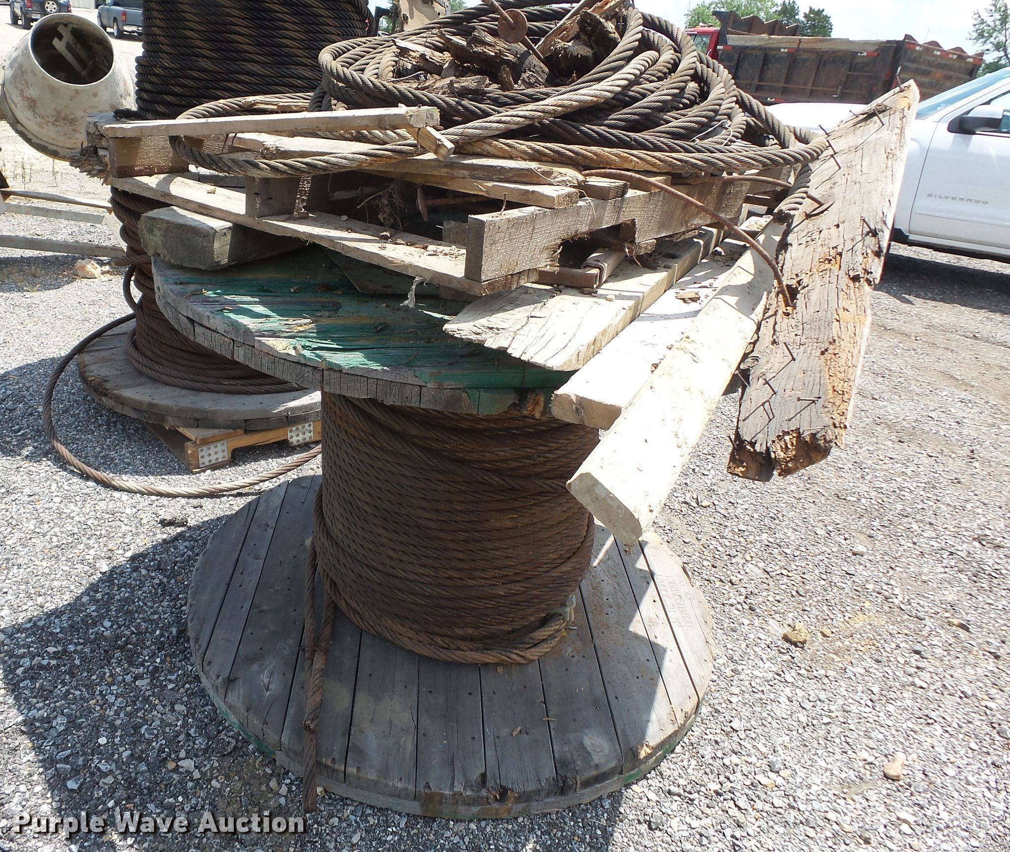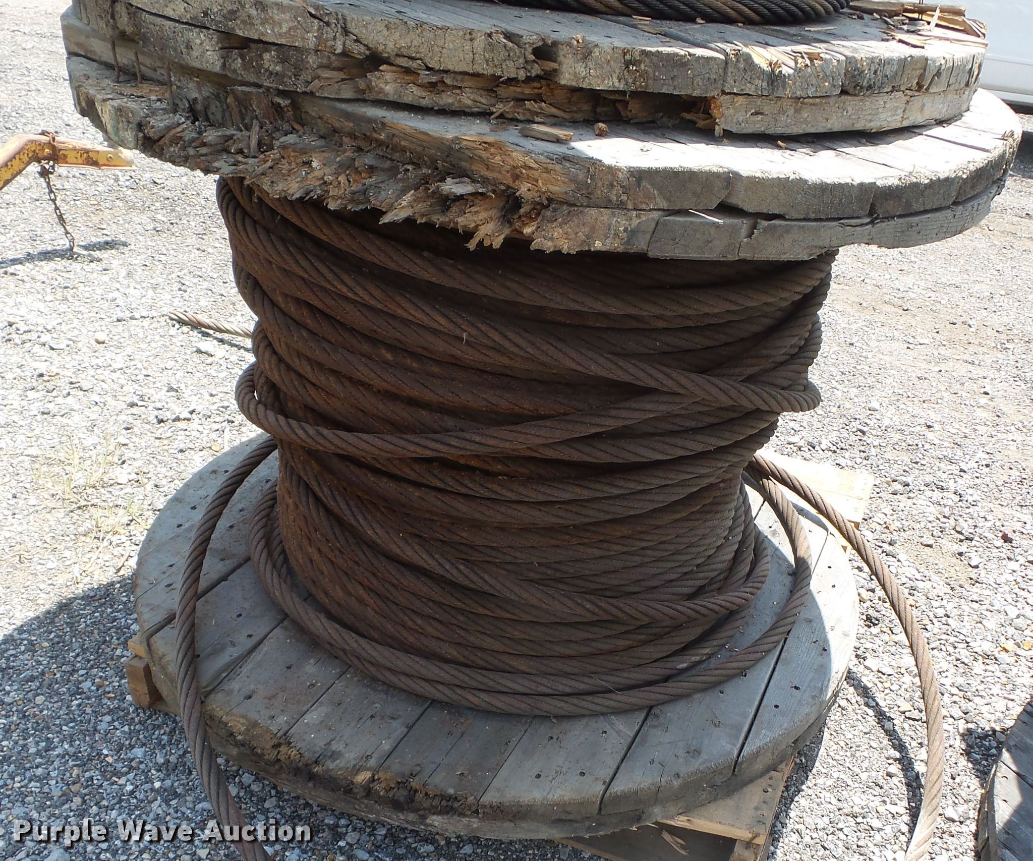 Purple Wave is selling a used Lifting and Rigging in Missouri. This item is a (4) partial rolls steel cable with the following: 1" diameter
