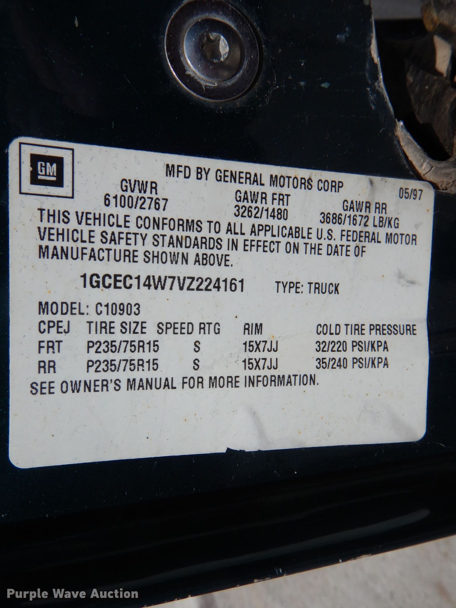 Purple Wave is selling a used 1/2 Ton Pickup or Van in Missouri. This item is a 1997 Chevrolet C1500 pickup truck with the following: 118,183 miles on odometer, 4.3L V6 OHV 12V gas engine, Automatic transmission, AC and heat, Cruise, 235/75R15 tires