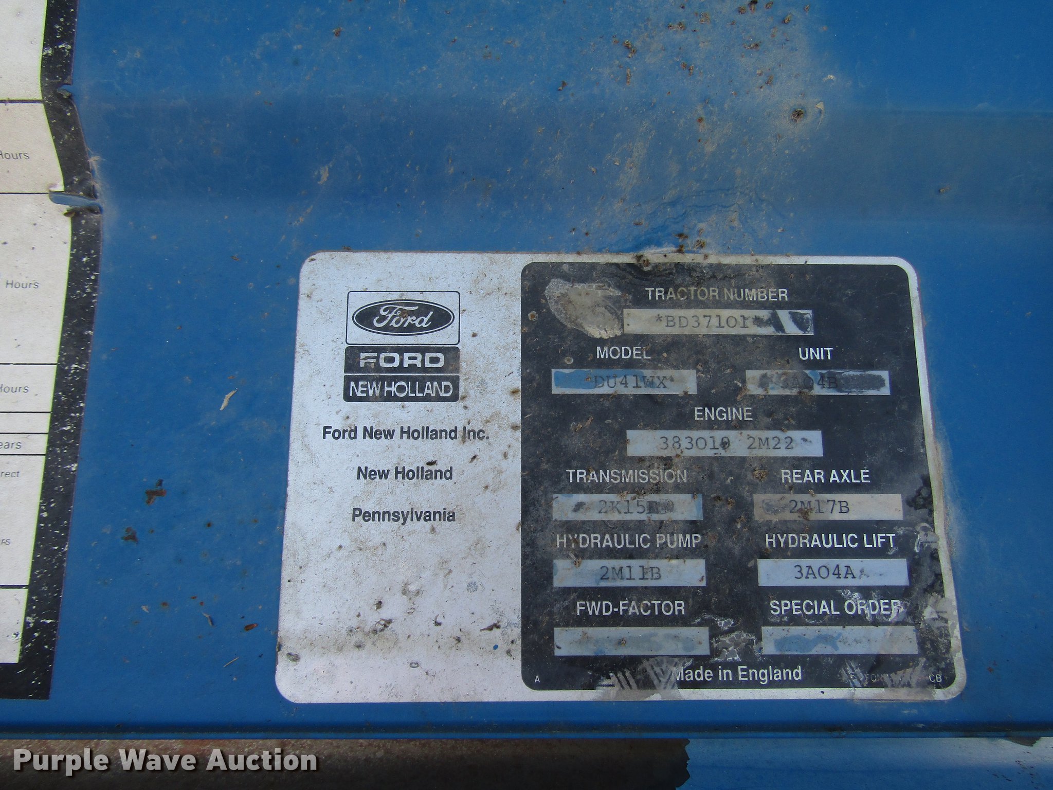 Purple Wave is selling a used Tractor in Kansas. This item is a Ford 5030 tractor with the following: Four cylinder diesel engine, Manual transmission, 8F-8R gears, Three point, Top link, 540 PTO, (2) rear hydraulic remote sets, (6) suitcase weights, 92" wheelbase, 11L-15 front tires, 16.9-24 rear tires, Serial BD37101