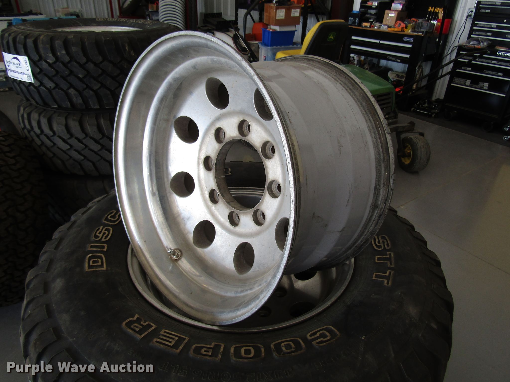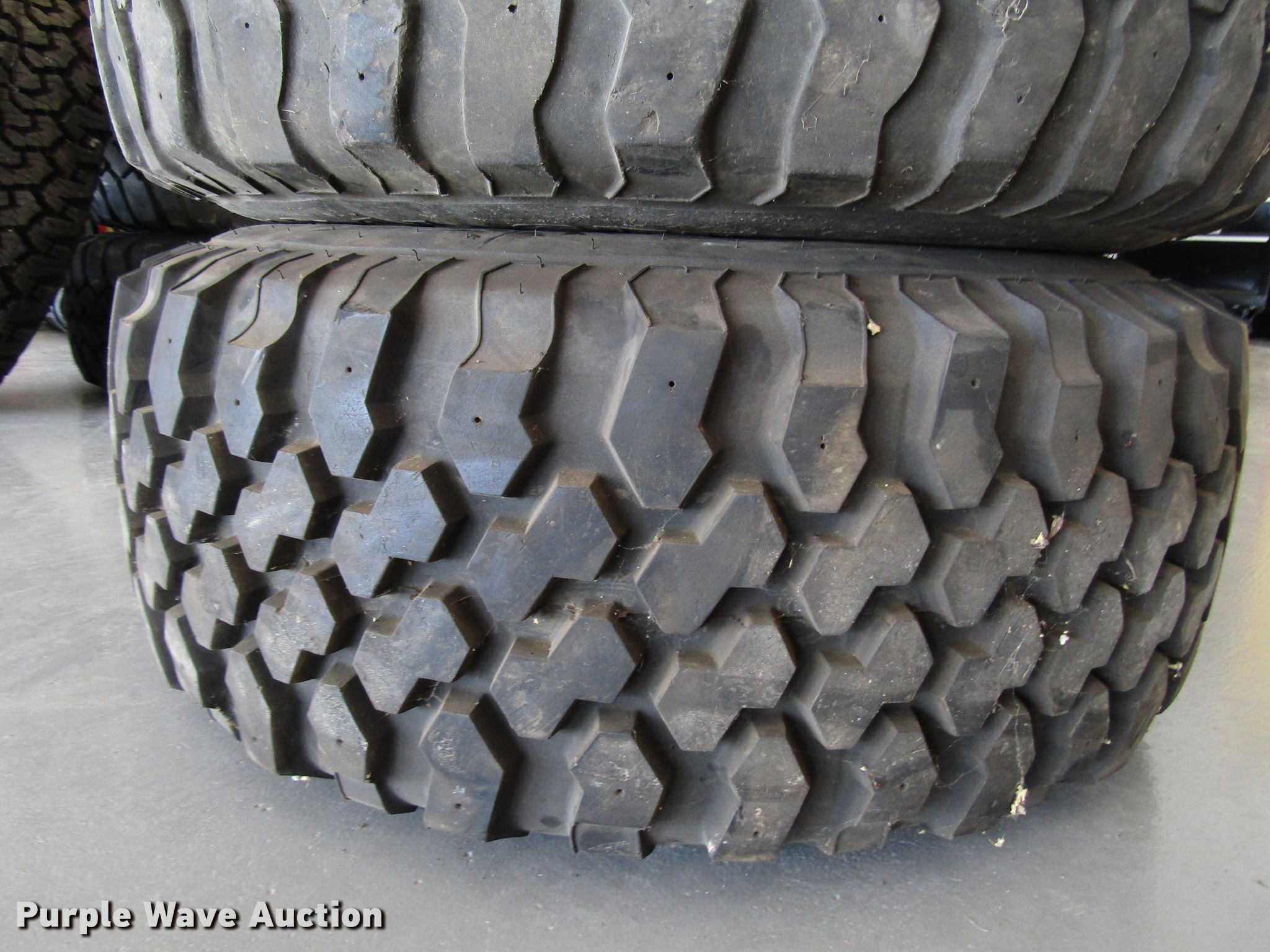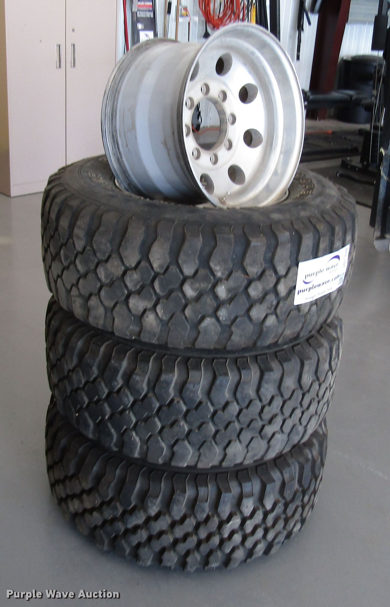 Purple Wave is selling a used Fleet Tires in Kansas. This item is a 33x12.50x16.5 tires and wheels with the following: Ford eight lug wheels