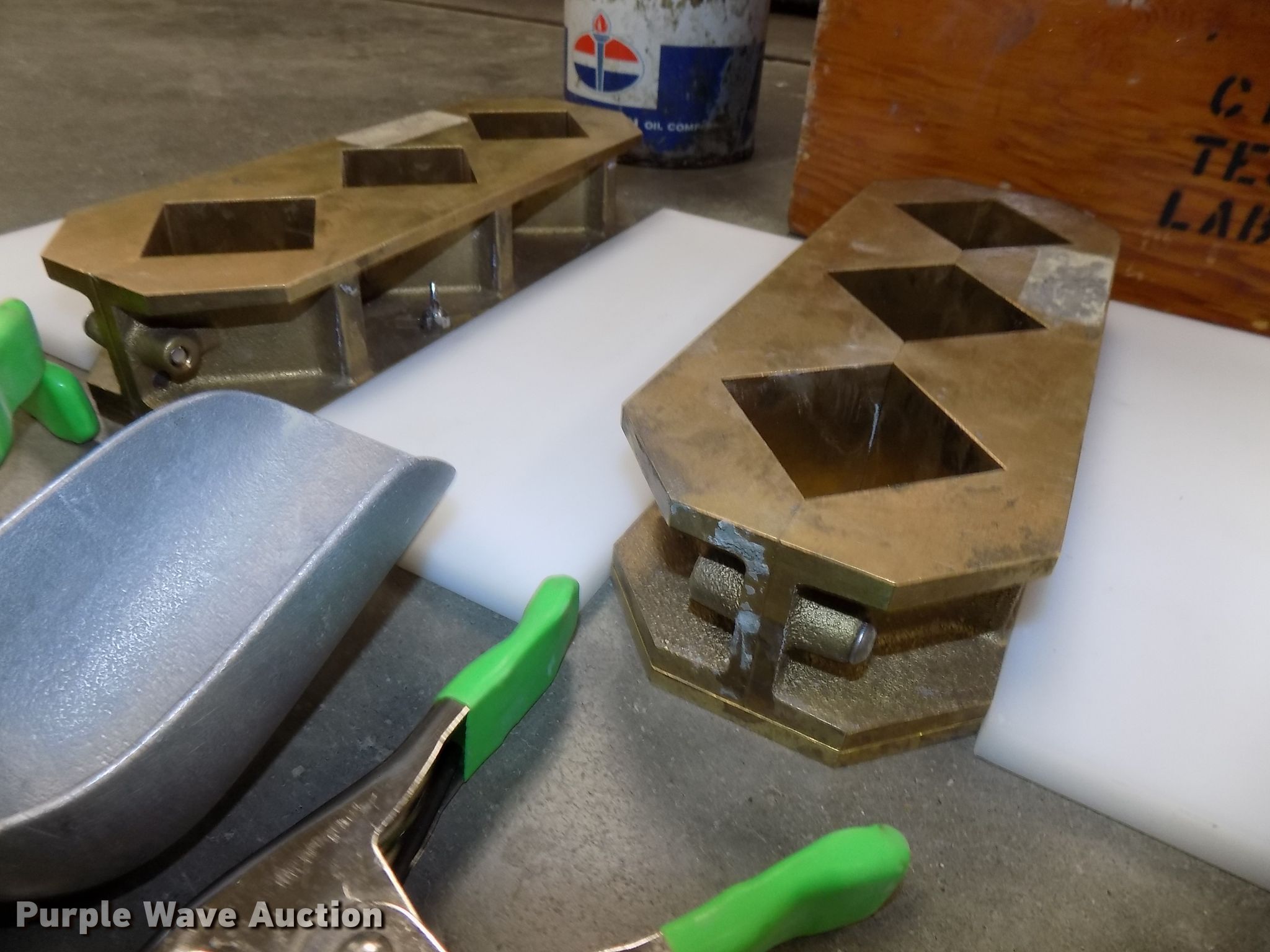 Cube mold casting set. (4) Gilson HM294 bronze cube molds, Clamps, Trowels, Lubricant, Case. City of Lincoln Engineering Services Materials Lab. 949 W Bond St, Suite 200. Lincoln, NE 68521