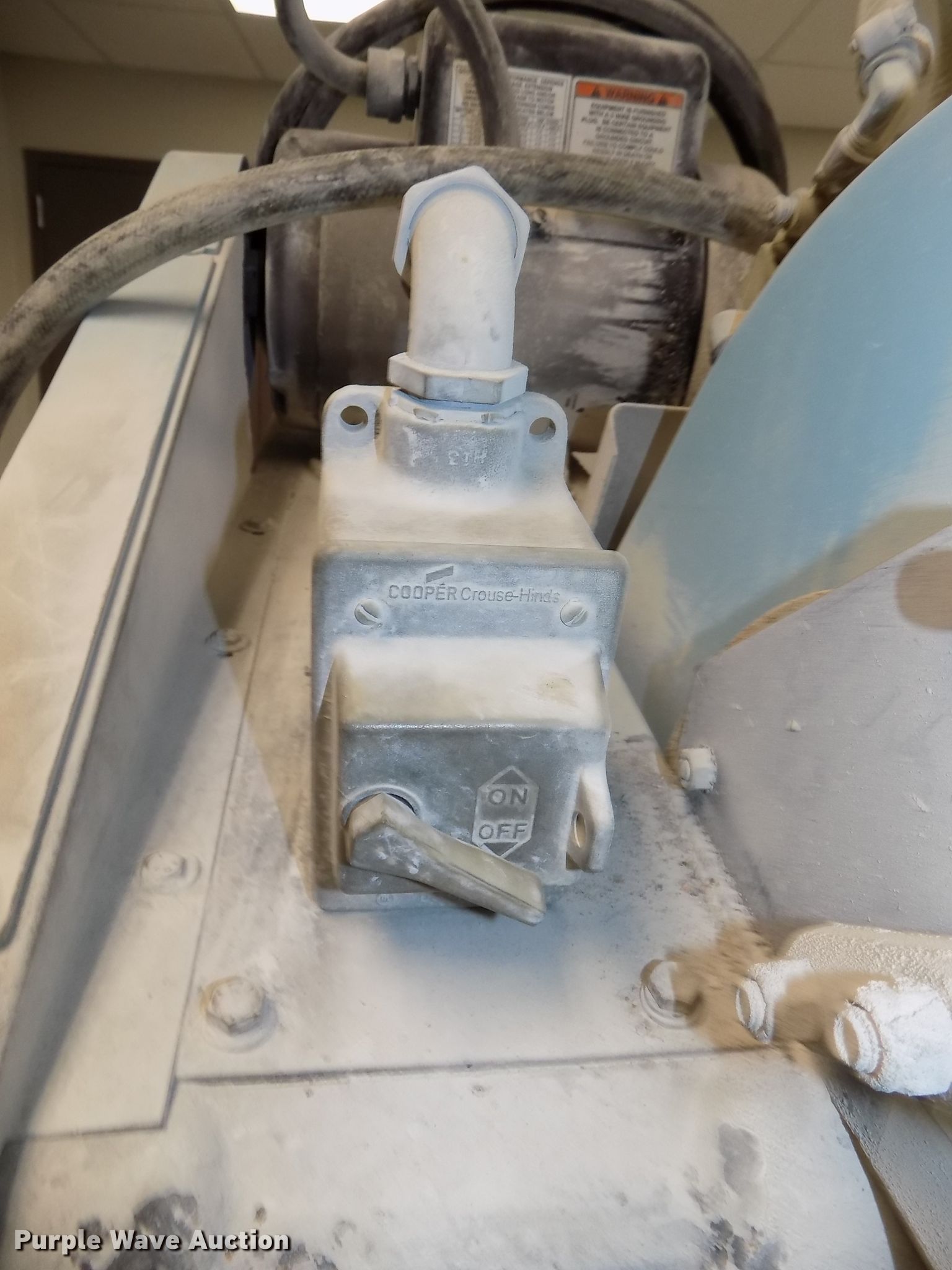 Purple Wave is selling a used Tools in Nebraska. This item is a Target G/M5HP-1PHWET20G masonry saw with the following: Baldor single phase electric motor, 208-230V, Water application, Husqvarna BHT3 Turbo 20" blade, Husqvarna 20" brick blade, Unused, Core clamps, Beckett recirculating pump with hose, Blade wrench, Accessories, Serial 000228121002