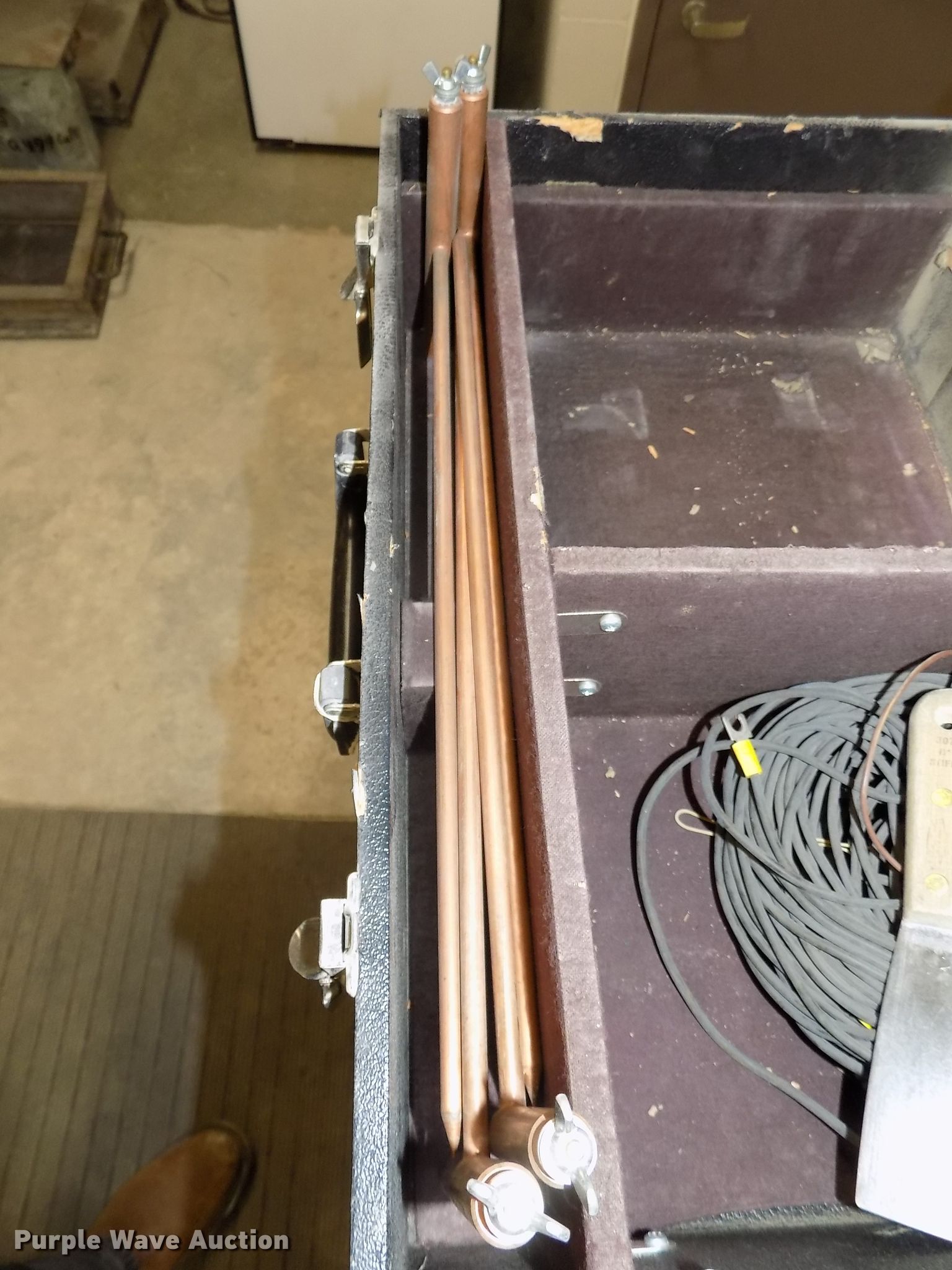 Purple Wave is selling a used Tools in Nebraska. This item is a Soil resistivity and PH test kits with the following: Vibro Ground 293 resistivity measuring test kit, Case, Manual, Serial 1922, Unit# 1881, Beckman Chem-Mate PH meter soil testing kit, Liquids, Tools, Accessories, (4) electrodes, Cord, Manual, Case