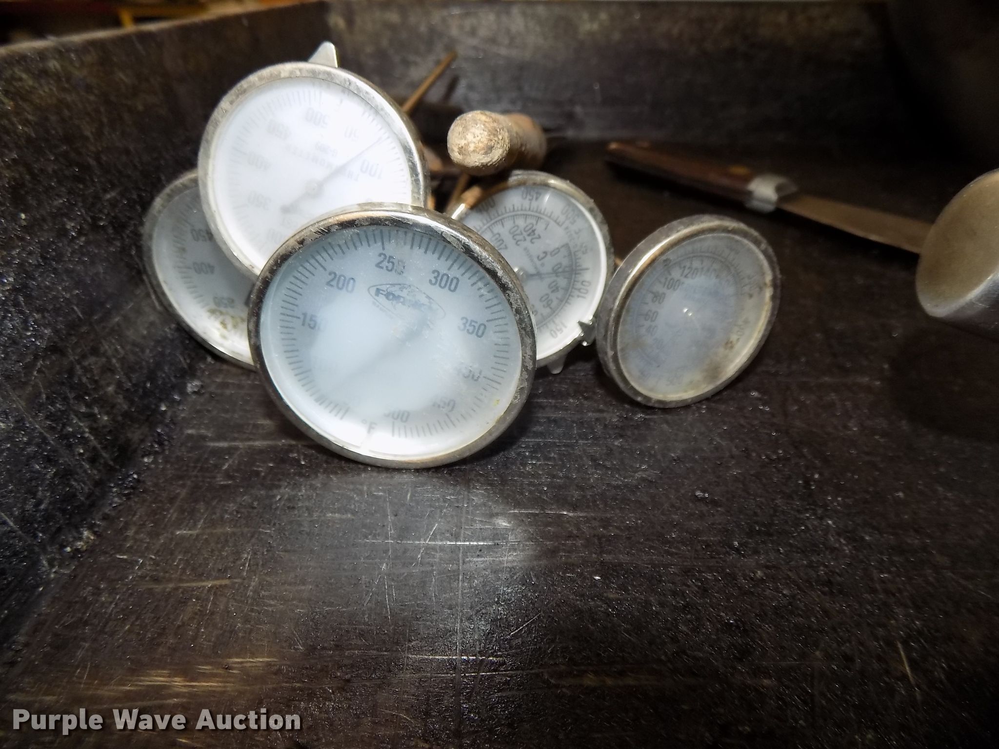 Purple Wave is selling a used Tools in Nebraska. This item is a Ohaus Explorer digital scale with the following: 32,000 gram capacity, 0.1 gram readability, Internal calibration, Assorted asphalt thermometers, Assorted trays and tools, Lab apron, Fluke 8" digital thermometers, 50 to 550 degrees, Manual